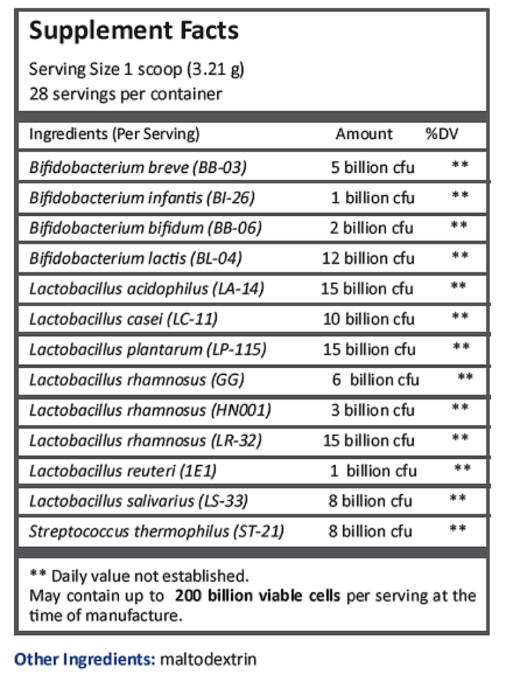 Ultra-PB100 DF是一种不含乳制品的益生菌配方,包含13种固定人肠的益生菌,可确保在其每个特定细分市场中成功建立。