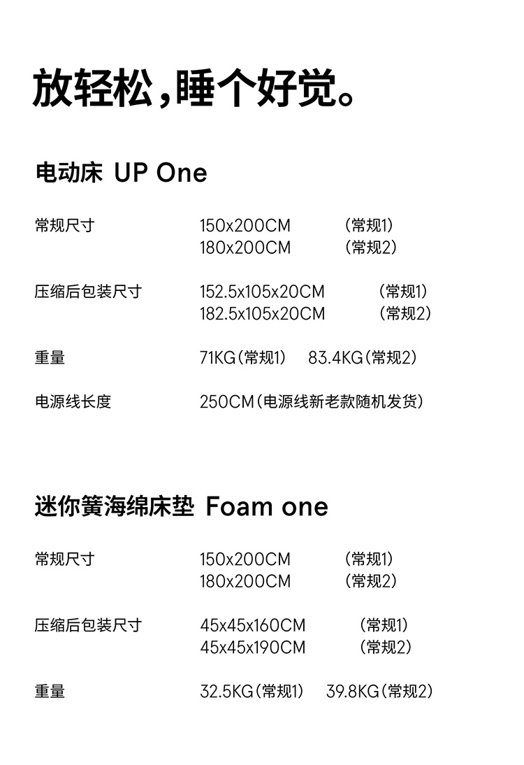 【电动床】蓝盒子UP One床架+FoamOne床垫组合