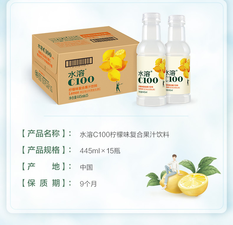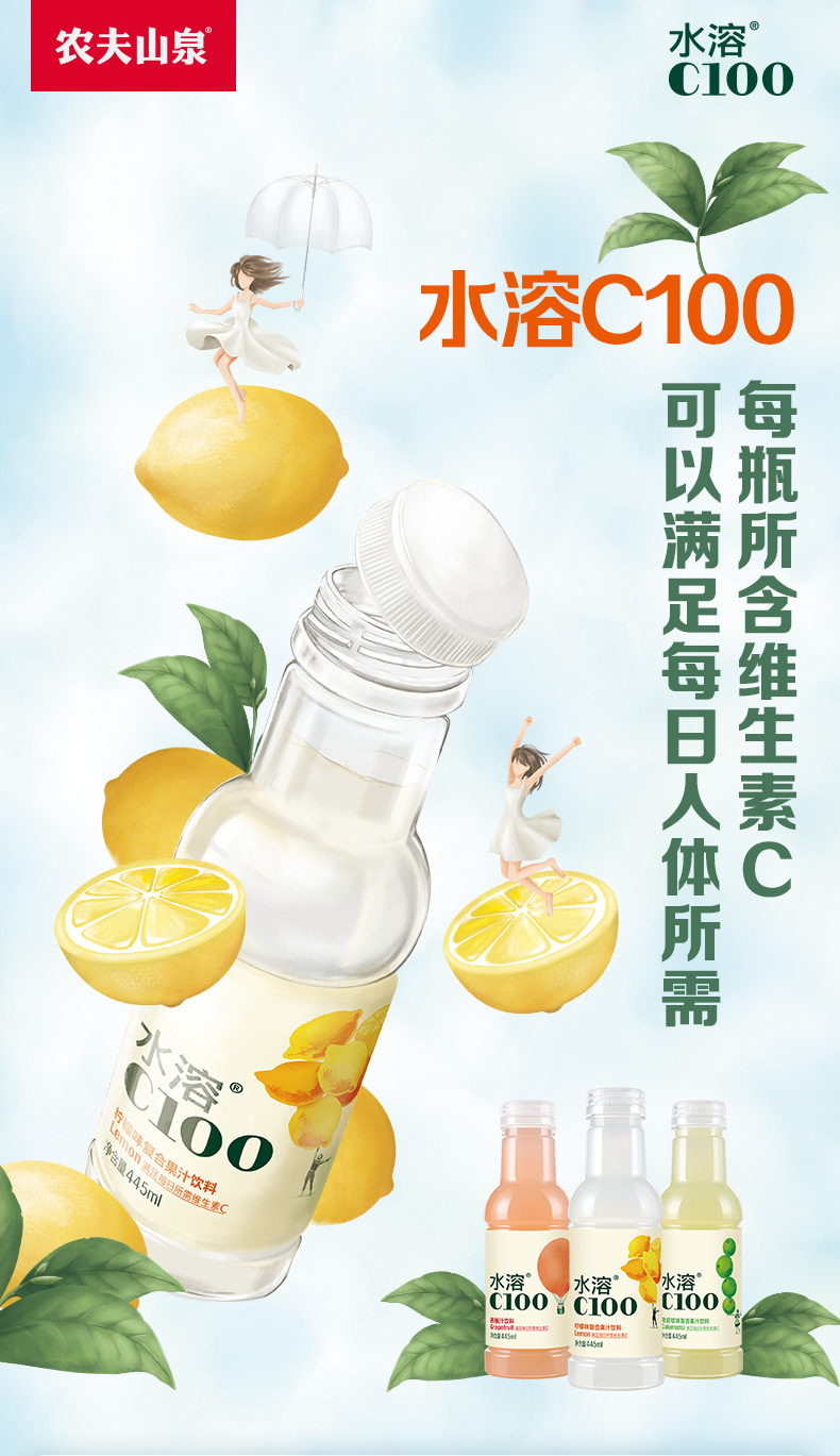 农夫山泉水溶C柠檬汁维生素风味饮料445ml