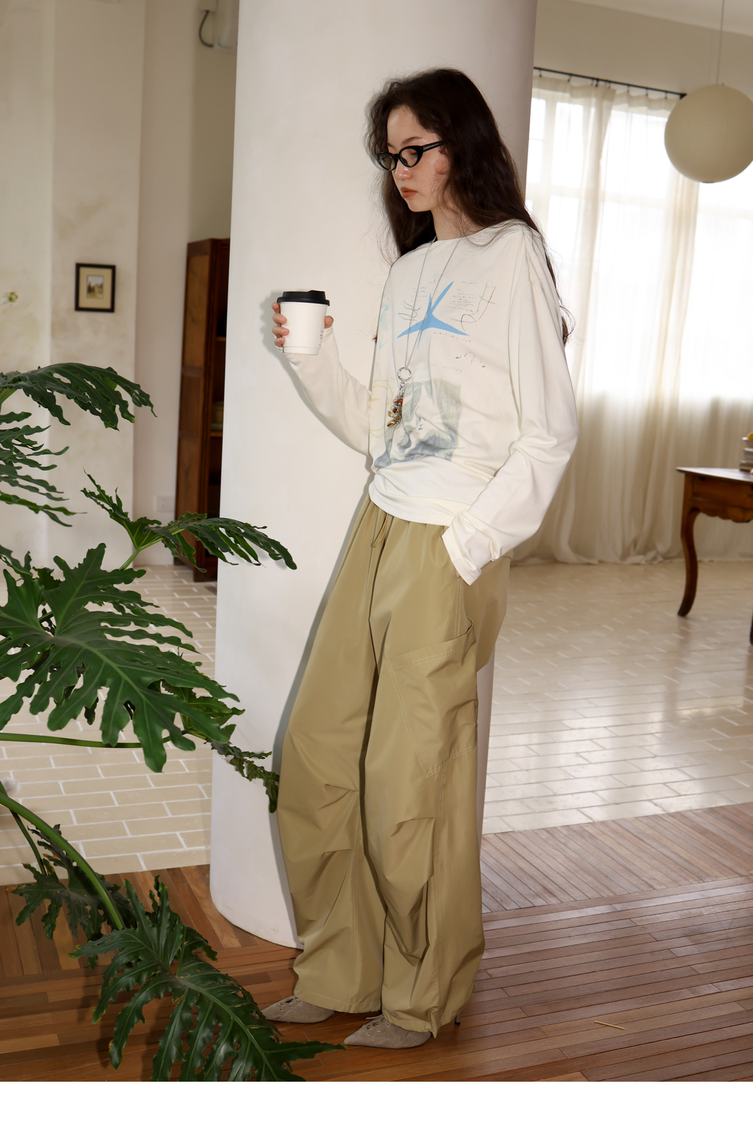 素舶 新疆长绒棉索罗娜抽绳工装口袋阔腿裤