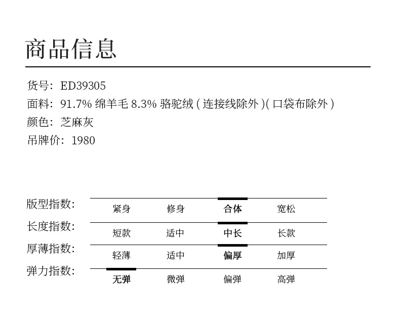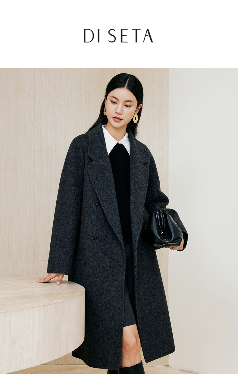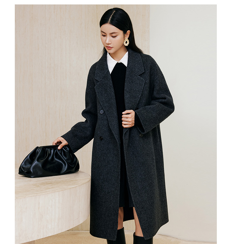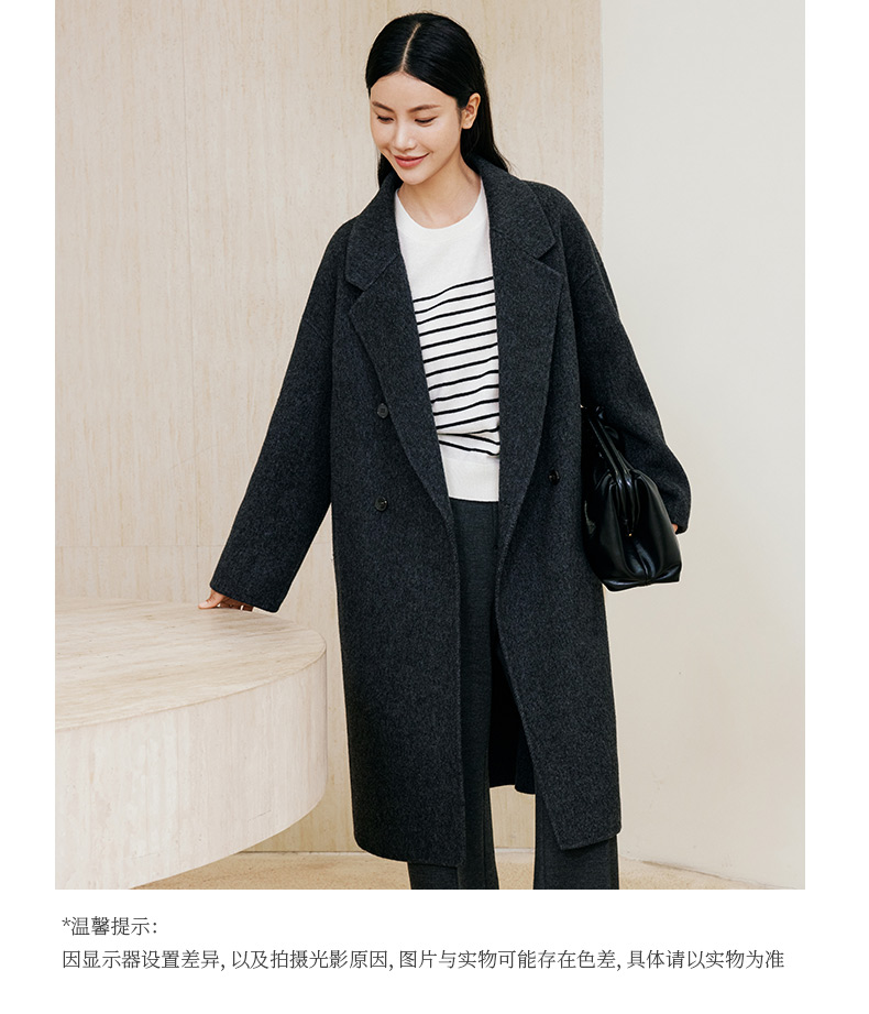 玳莎羊毛驼绒混纺双面呢大衣女24年冬季新款气质毛呢中长款外套 ED39305