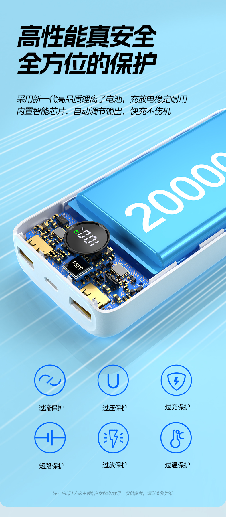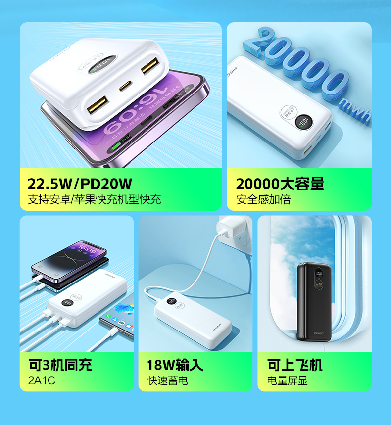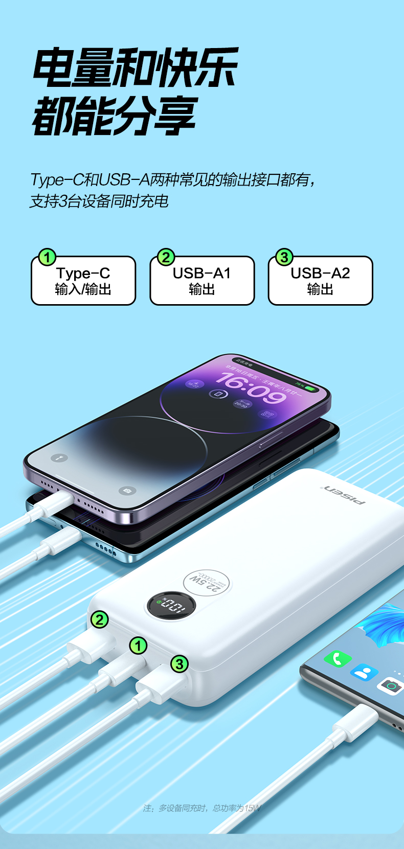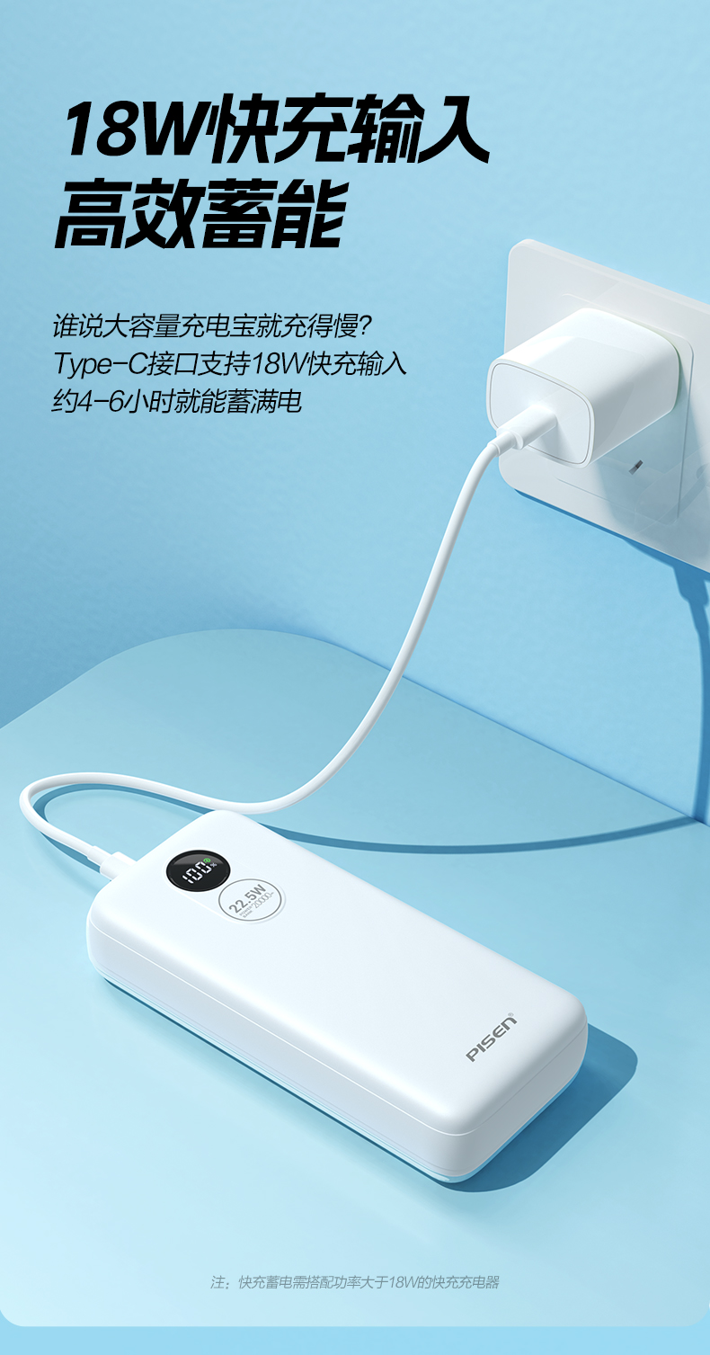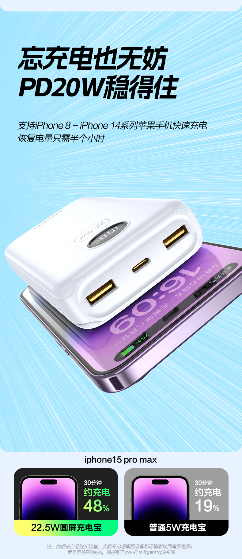 品胜 22.5W圆屏数显充电宝20000毫安移动电源 支持苹果/华为/小米/荣耀等设备