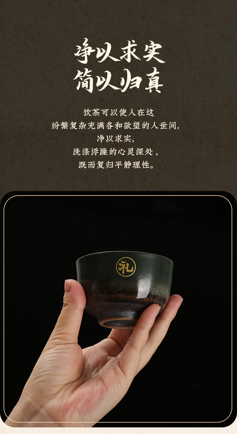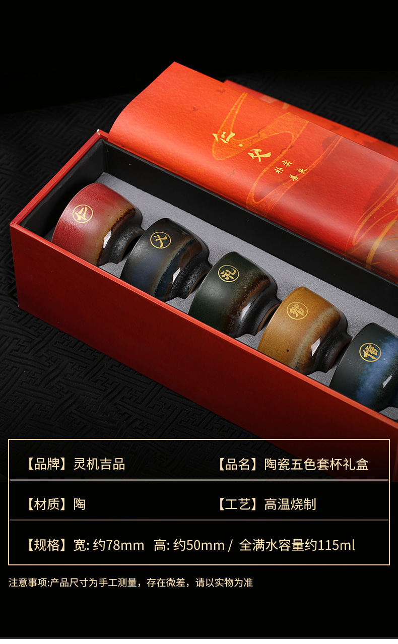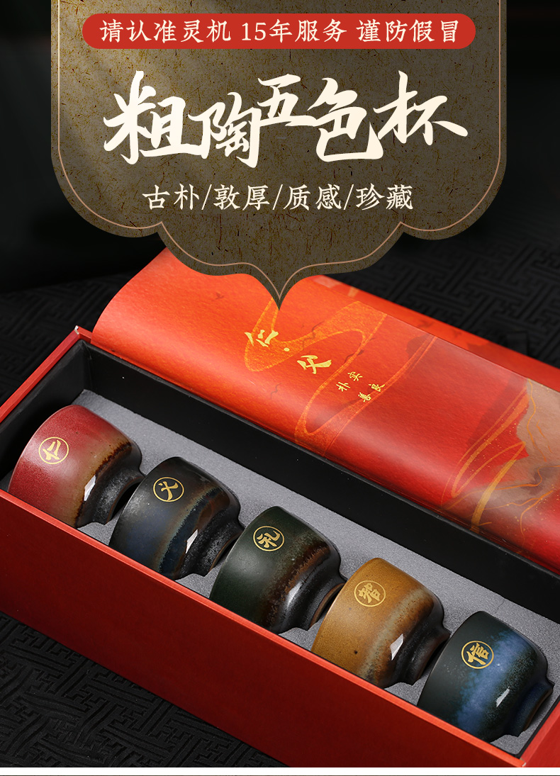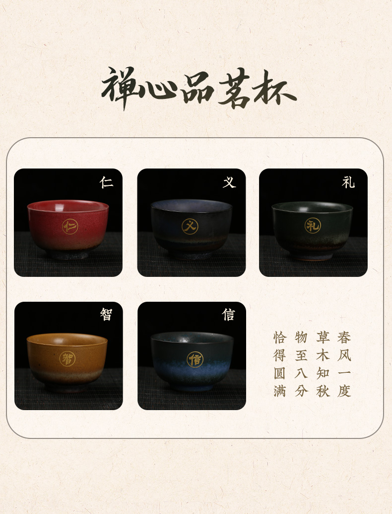 粗陶人生五色杯,仁义礼智信,禅心品茗