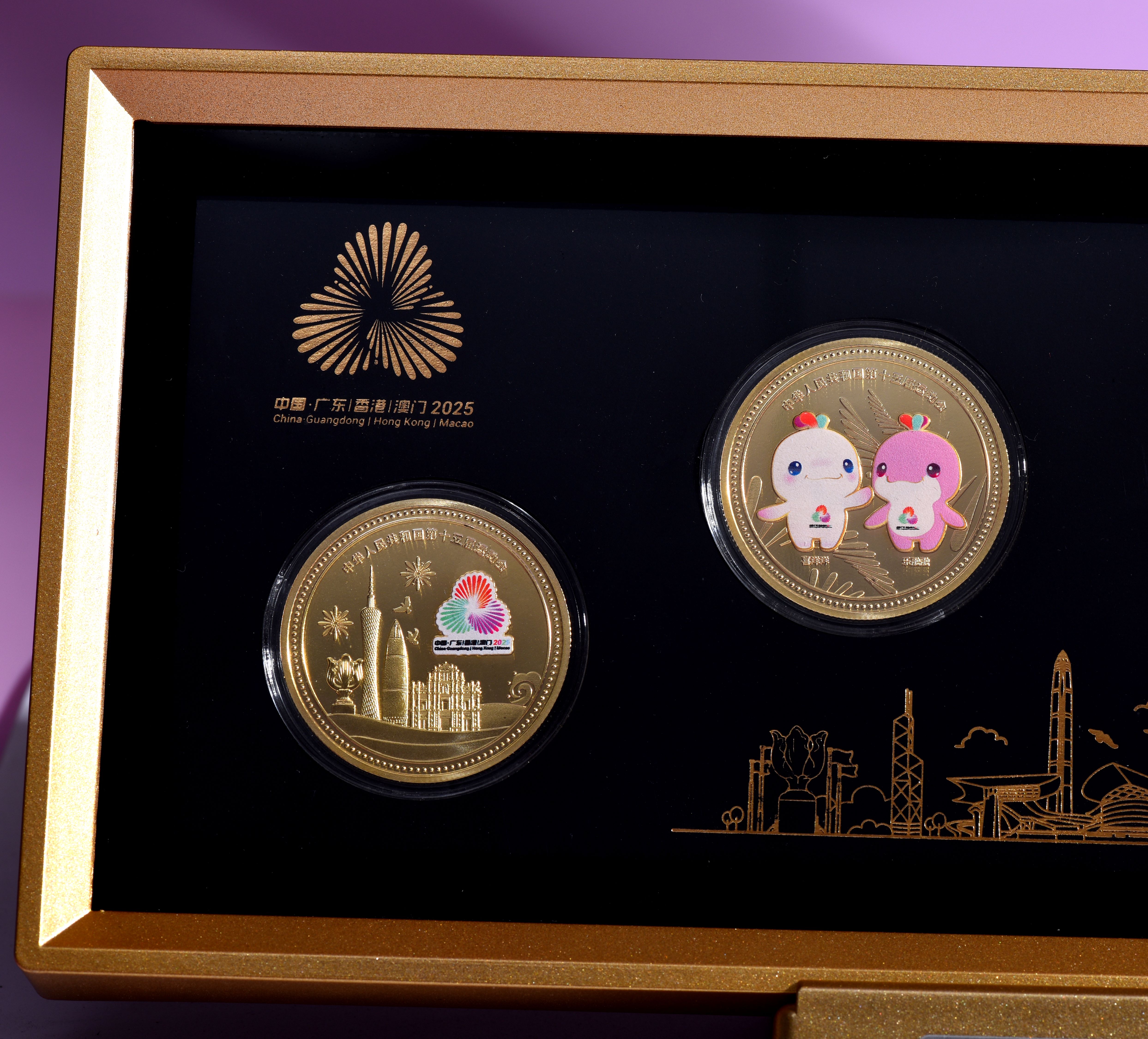 十五运会双枚纪念章摆件套装