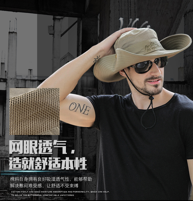 帽子男夏天遮阳帽迷彩渔夫帽太阳帽男士沙滩防晒钓鱼帽男草帽夏季,