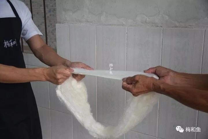 每个剥茧人采用不同的扩绵方式,但是效果却相同,再将6、7张绵片套于竹制弓器上,用力伸张,即成绵兜。