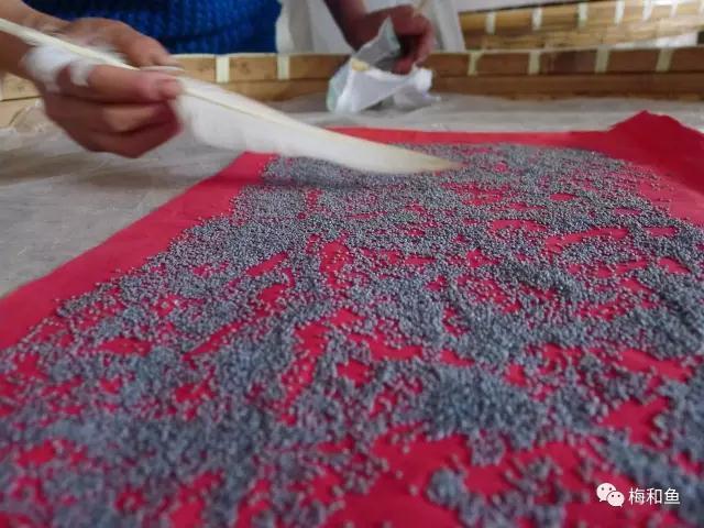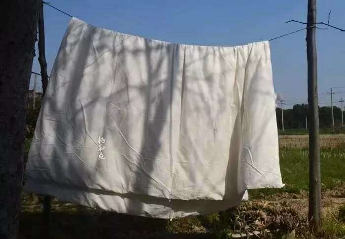 放在太阳底下慢慢晾晒,干后储存。晒干的手工丝绵保持本白,并留有少许蛹屑。