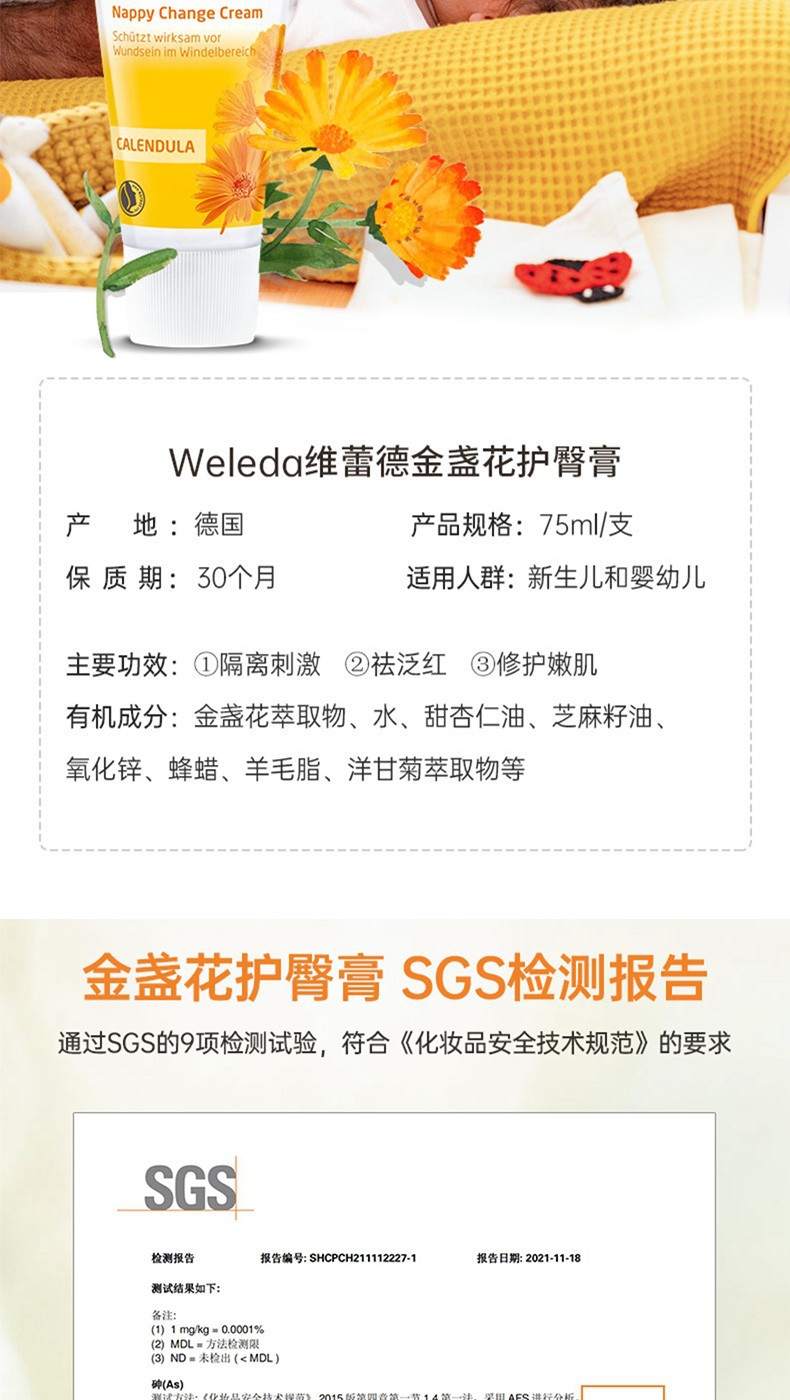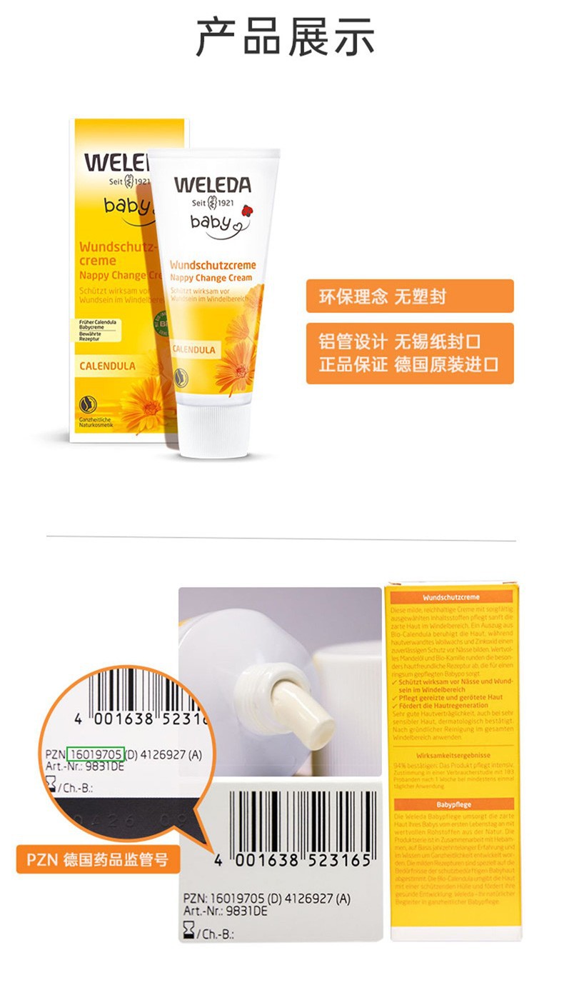 【香港直邮】德国进口维蕾德Weleda金盏花护臀膏婴儿护臀霜75ml