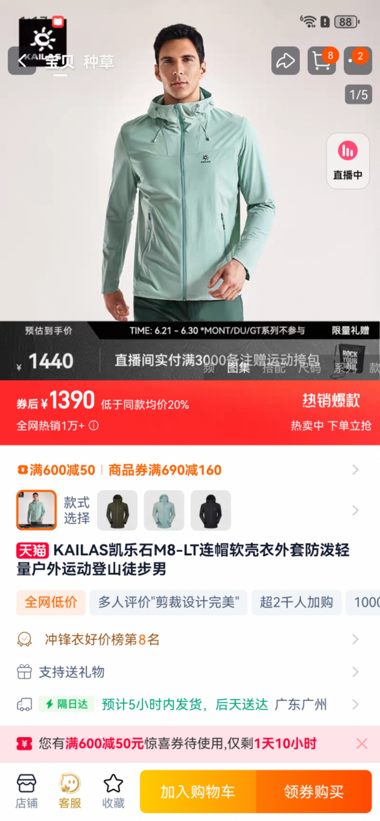 25版! 两色,加绒款,货号KG2519102 KAILAS凯乐石M8 IC-MAX连帽软壳衣外套GTX防风防泼保暖户外登山