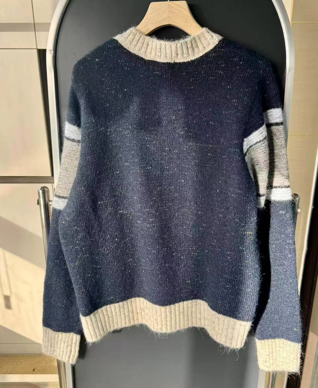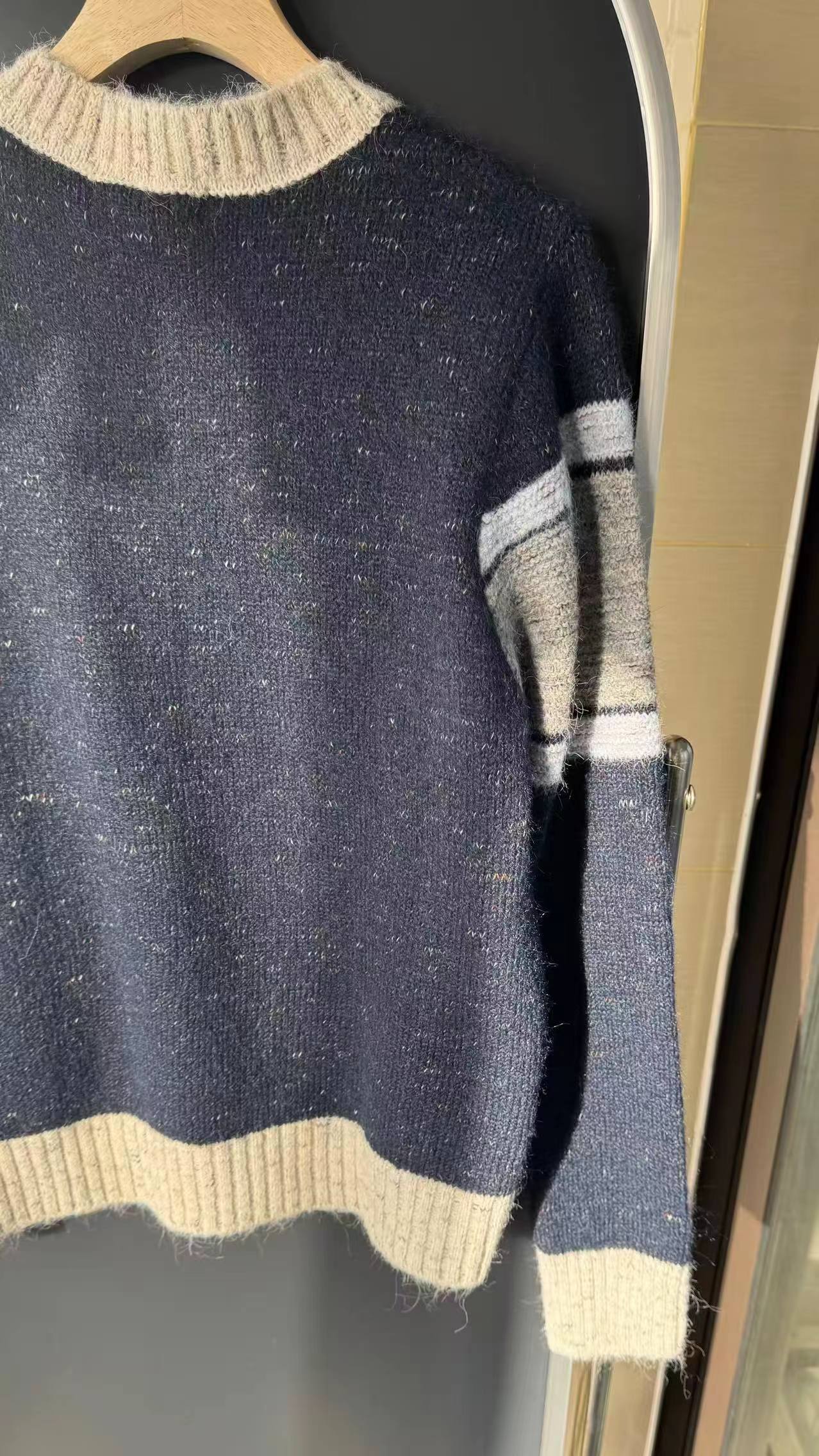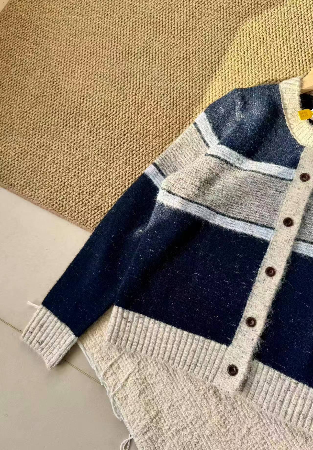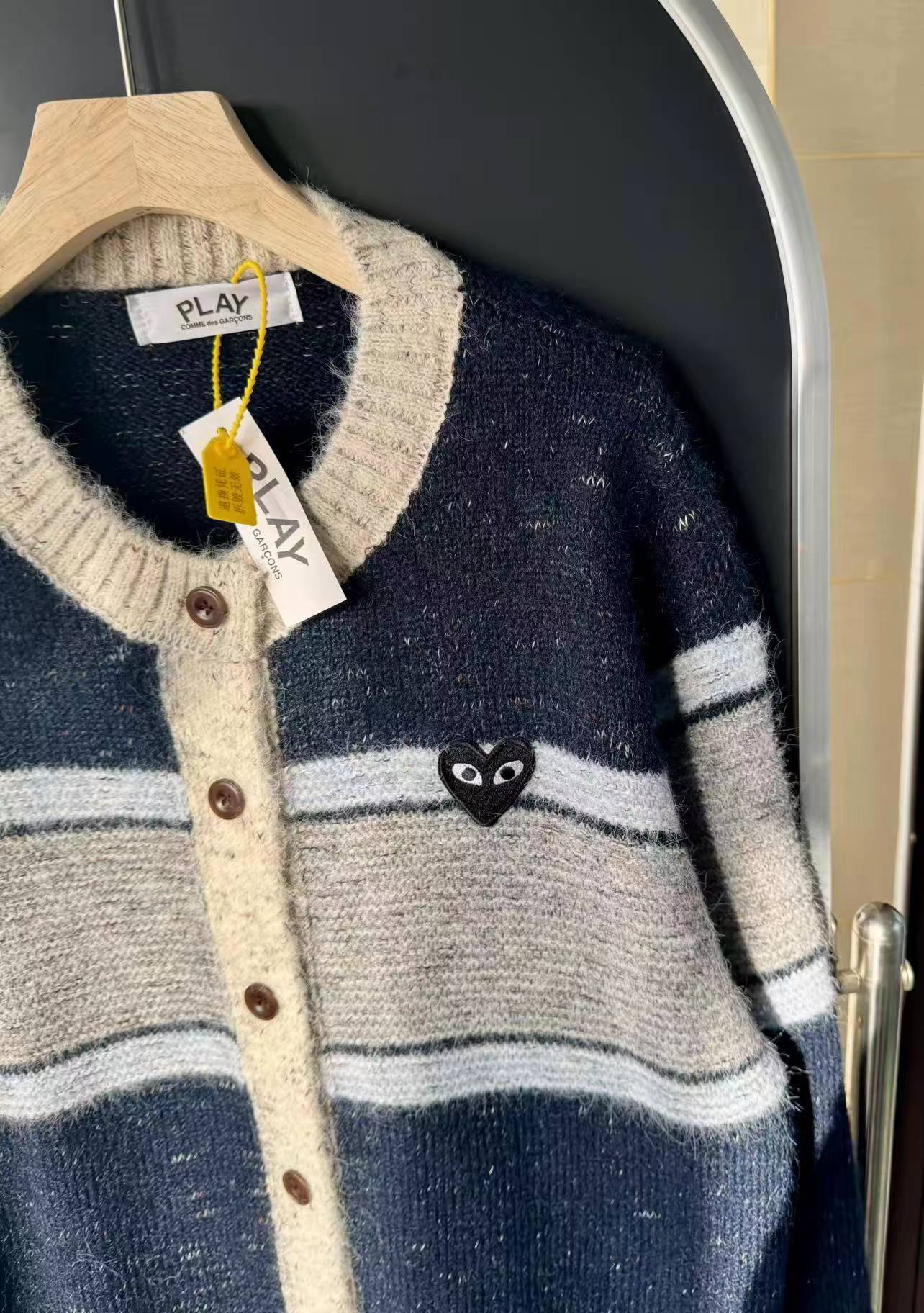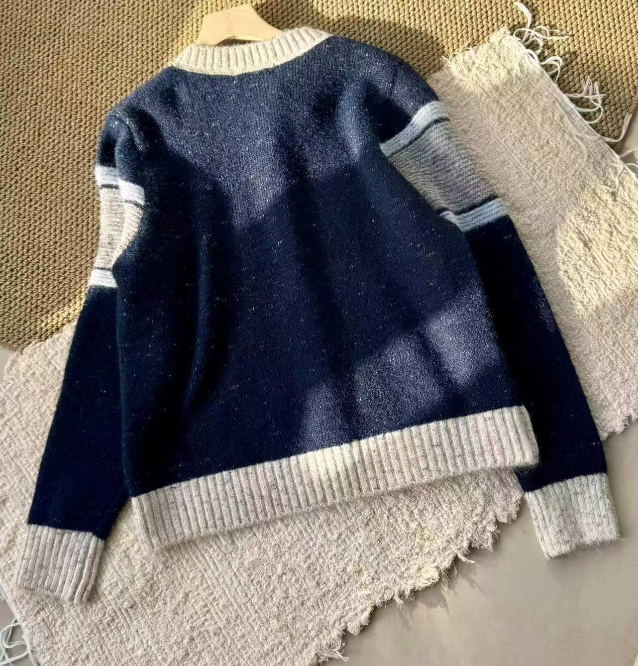这款毛衣是一件风格复古又不失可爱拼色设计,色彩搭配复古且有层次。采用圆领单排扣版型,穿脱方便且能很好地修饰颈部线条。衣身带有标志性的黑色爱心眼睛图案,为整体增添了灵动俏皮感,同时也具有较高的品牌辨识度。材质看起来柔软亲肤,整体版型偏宽松,是一件兼具复古感与时尚感的单品,可轻松打造出休闲又不失格调的穿搭风格,适合多种场合穿着。