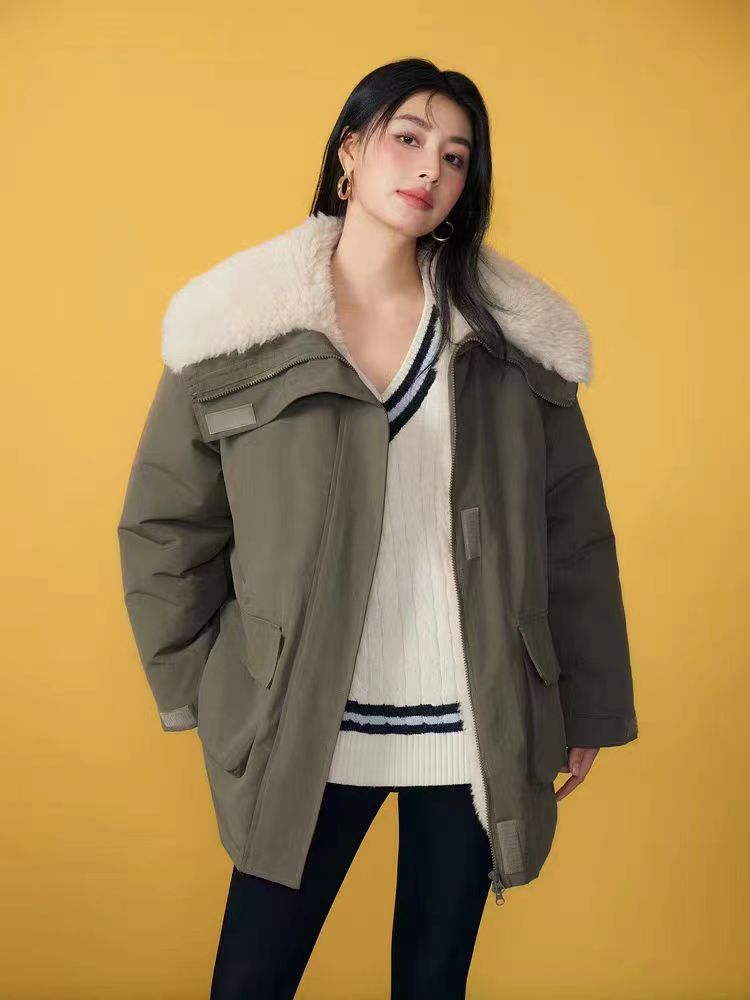 赵露思同款冬季工装羊羔毛派克服大码宽松保暖大翻领海军领保暖冲锋衣外套女