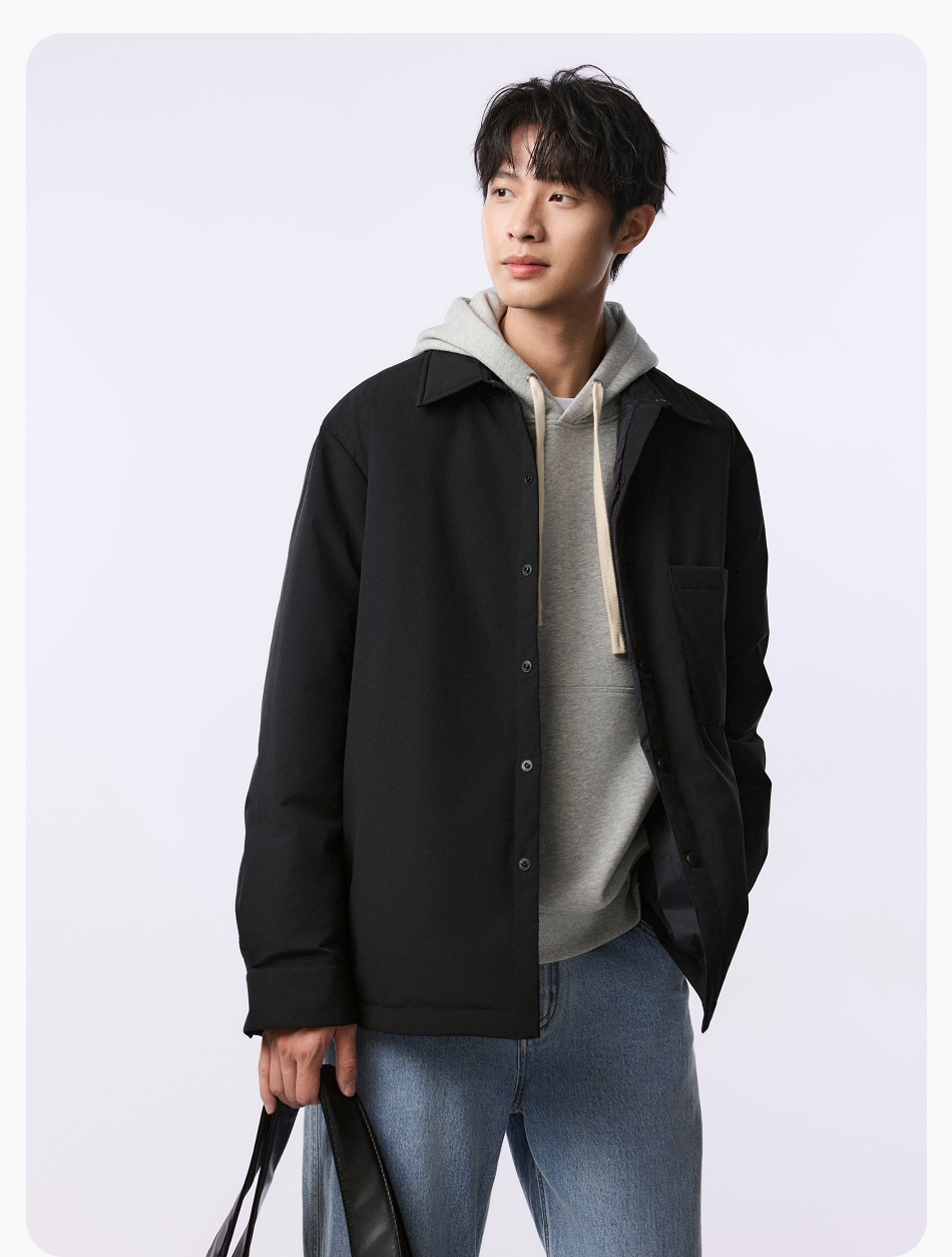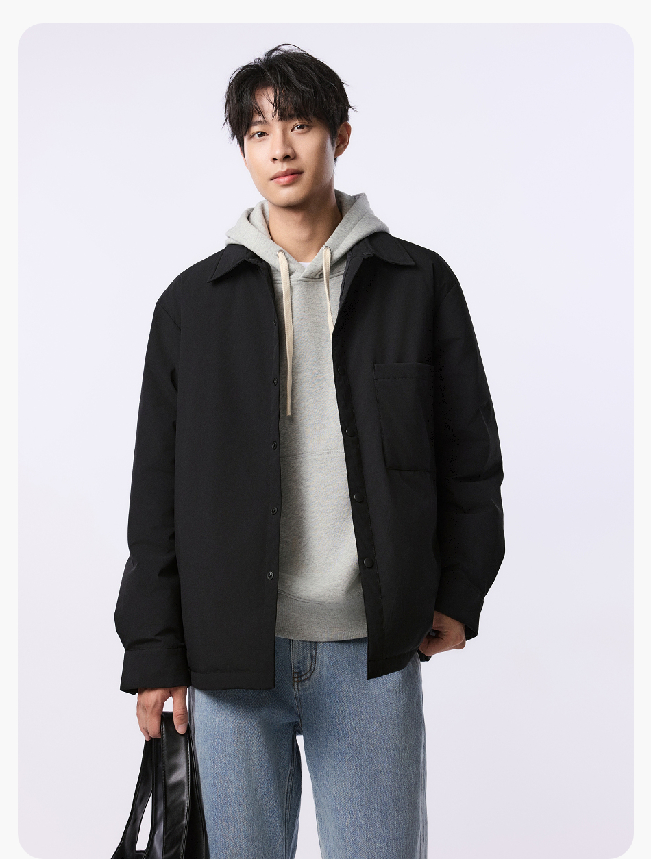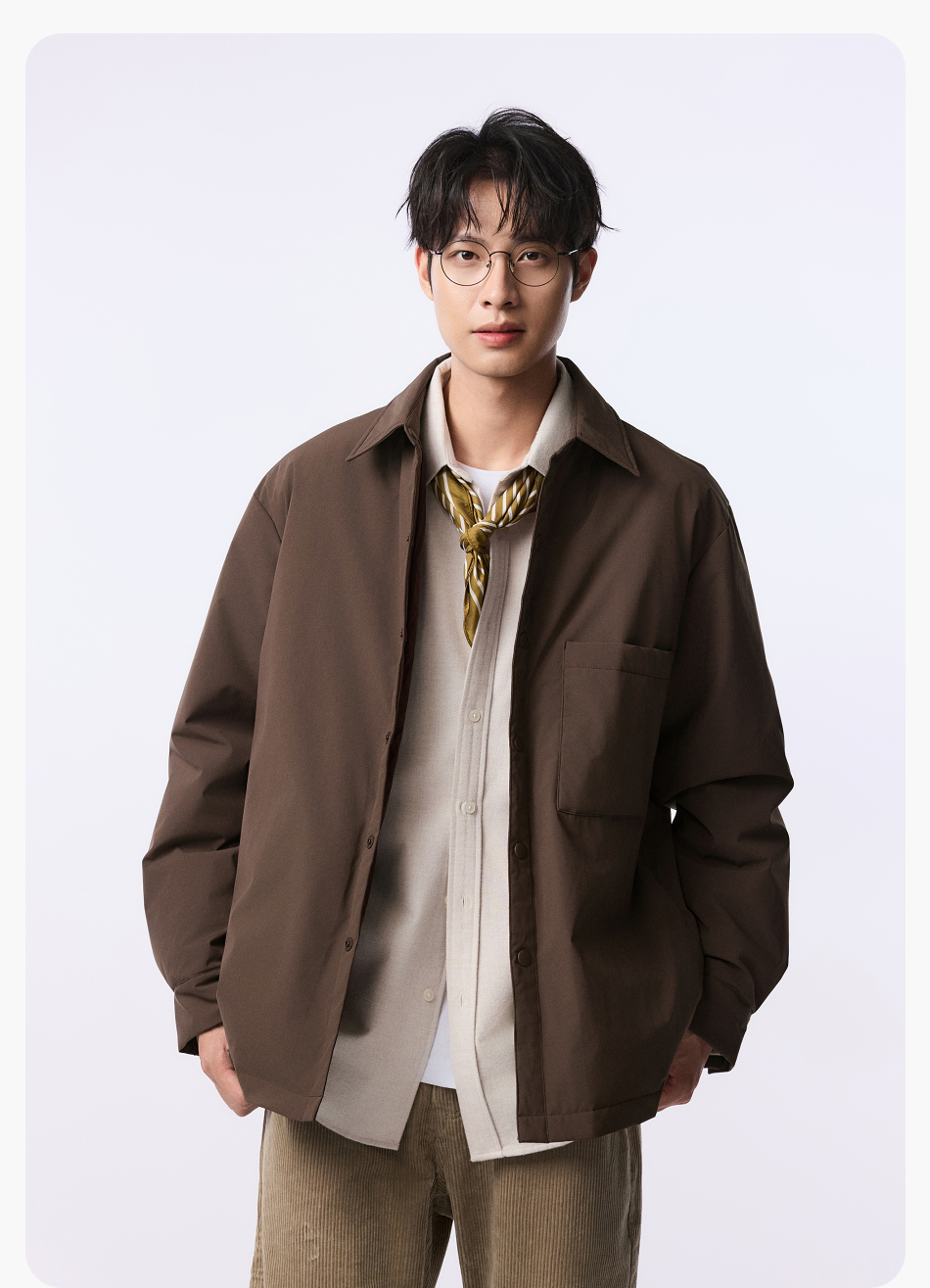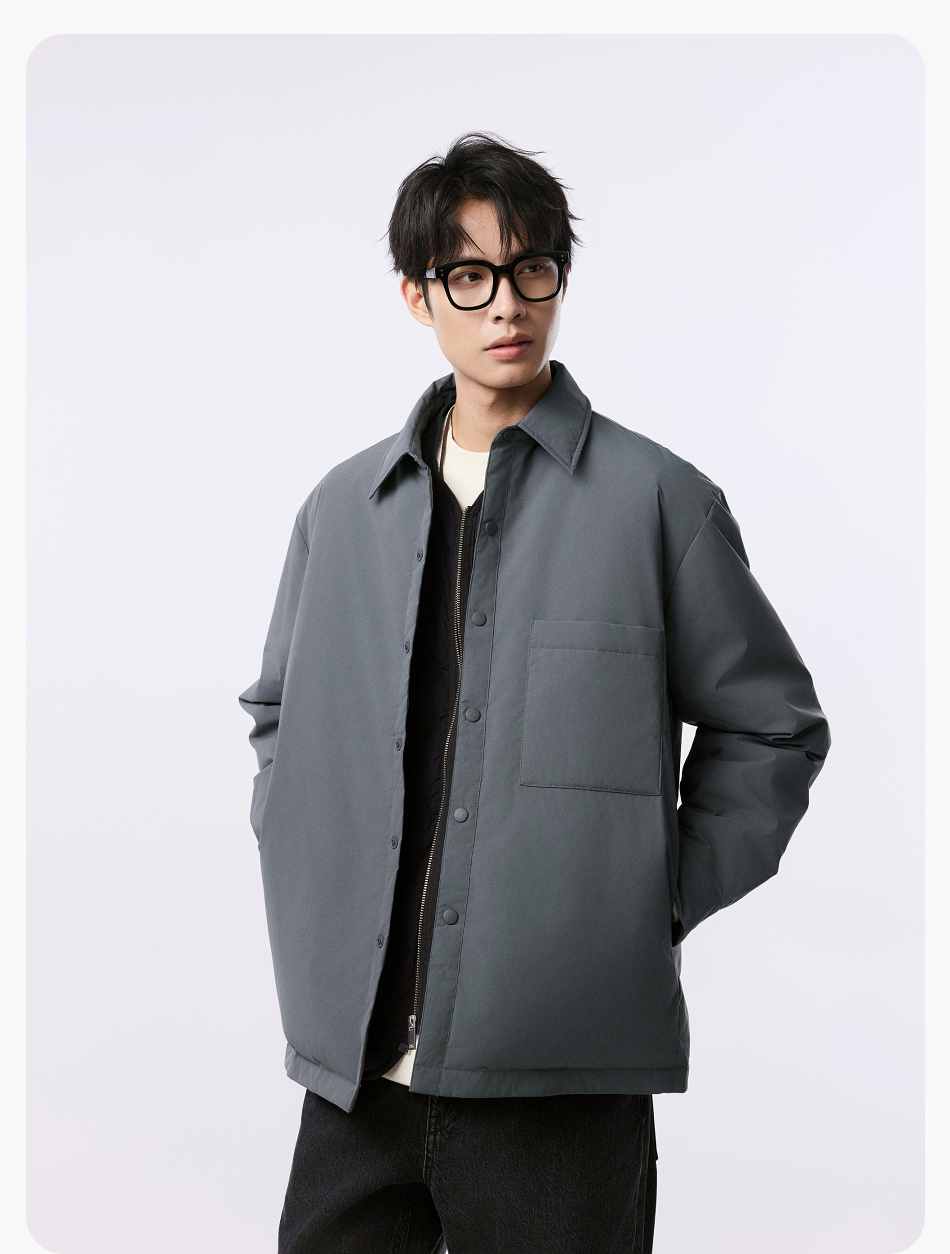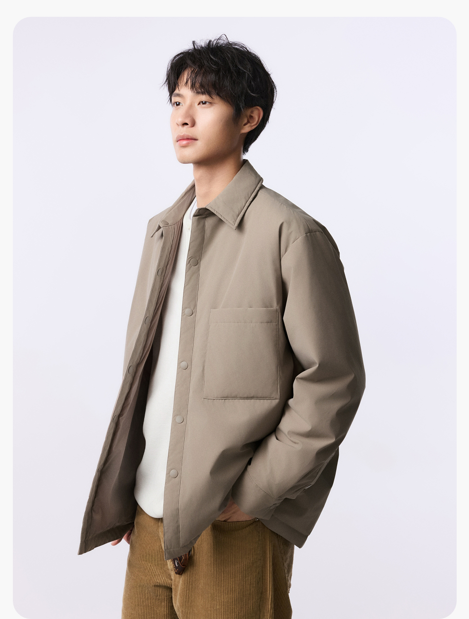 棉仓357815001-微宽松T8棉感轻薄衬衫款白鸭绒羽绒服