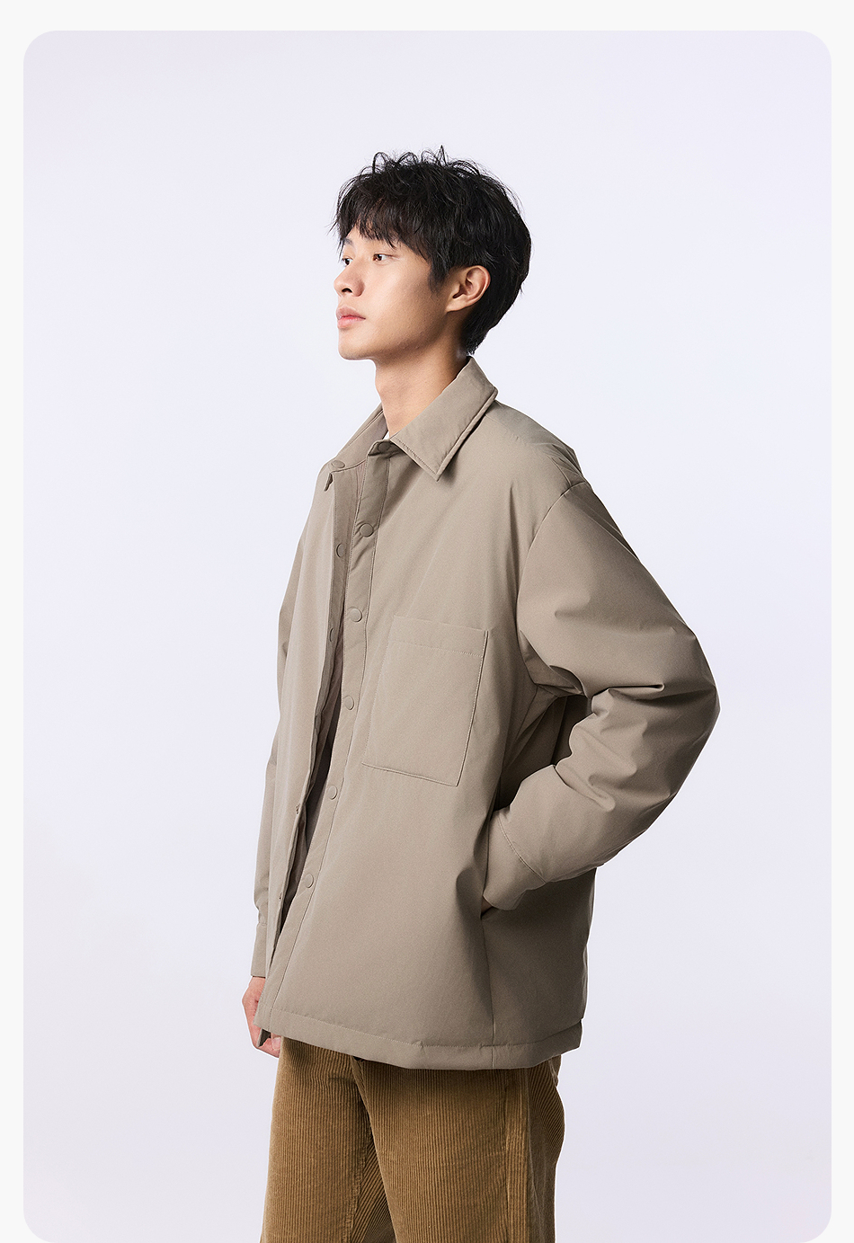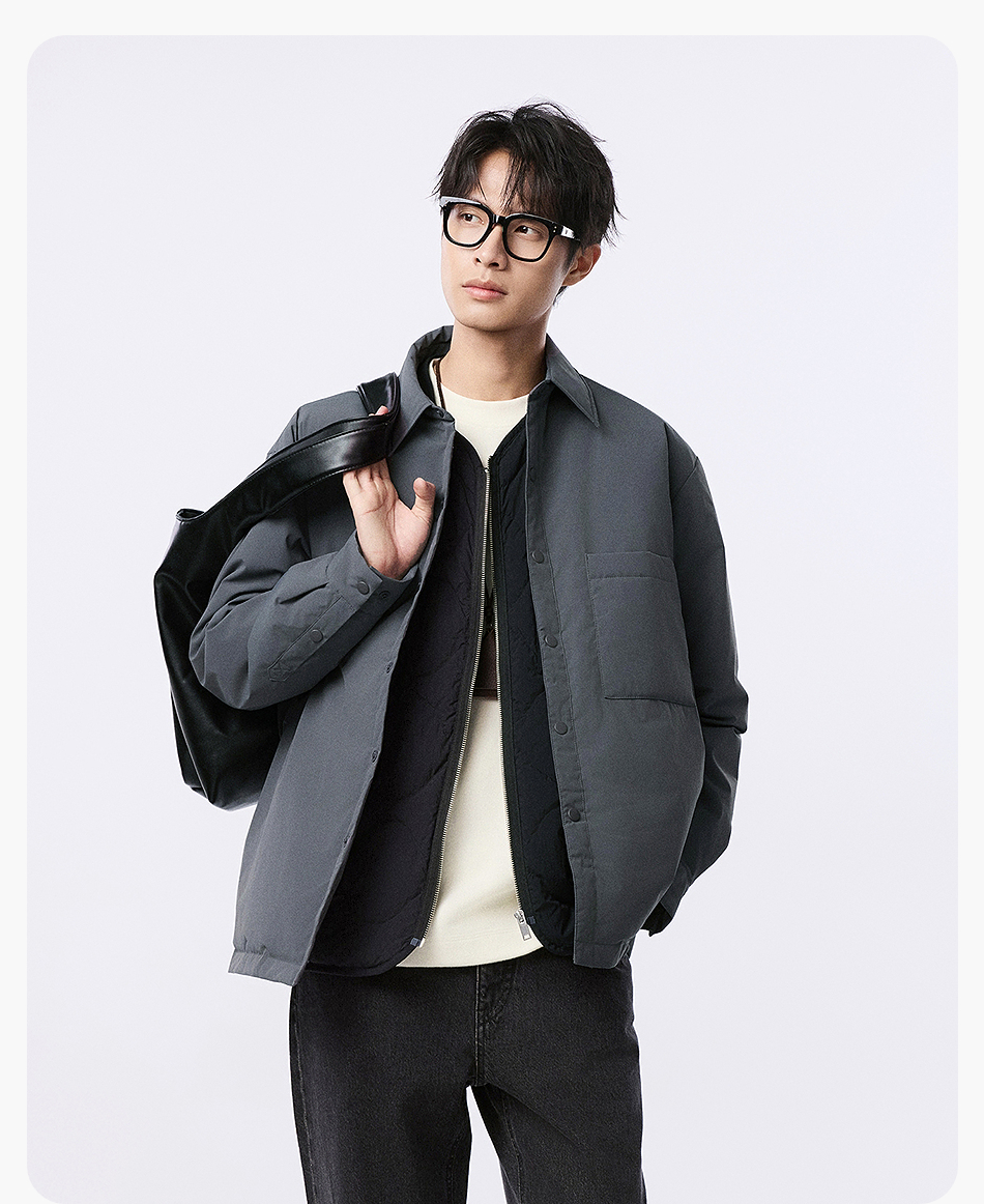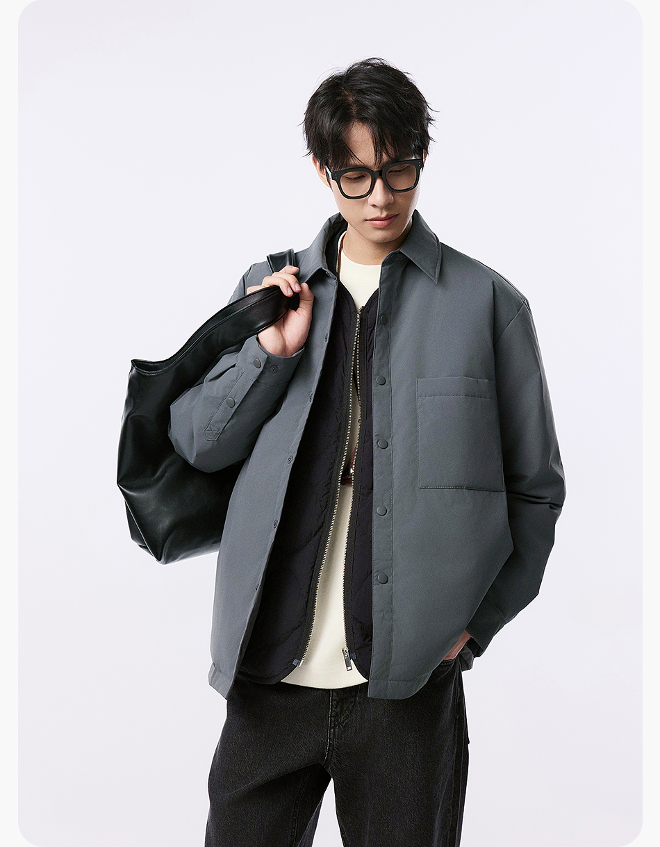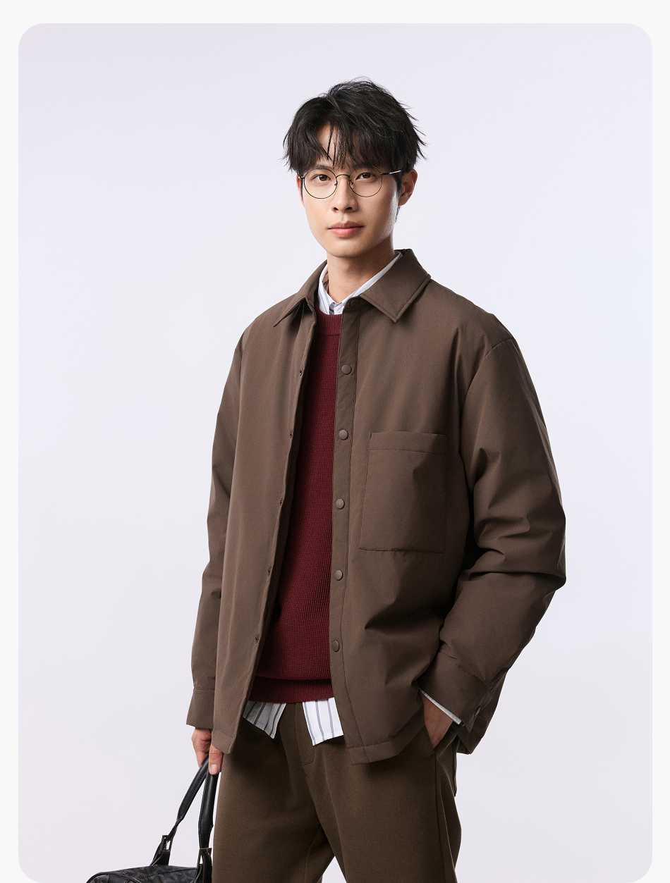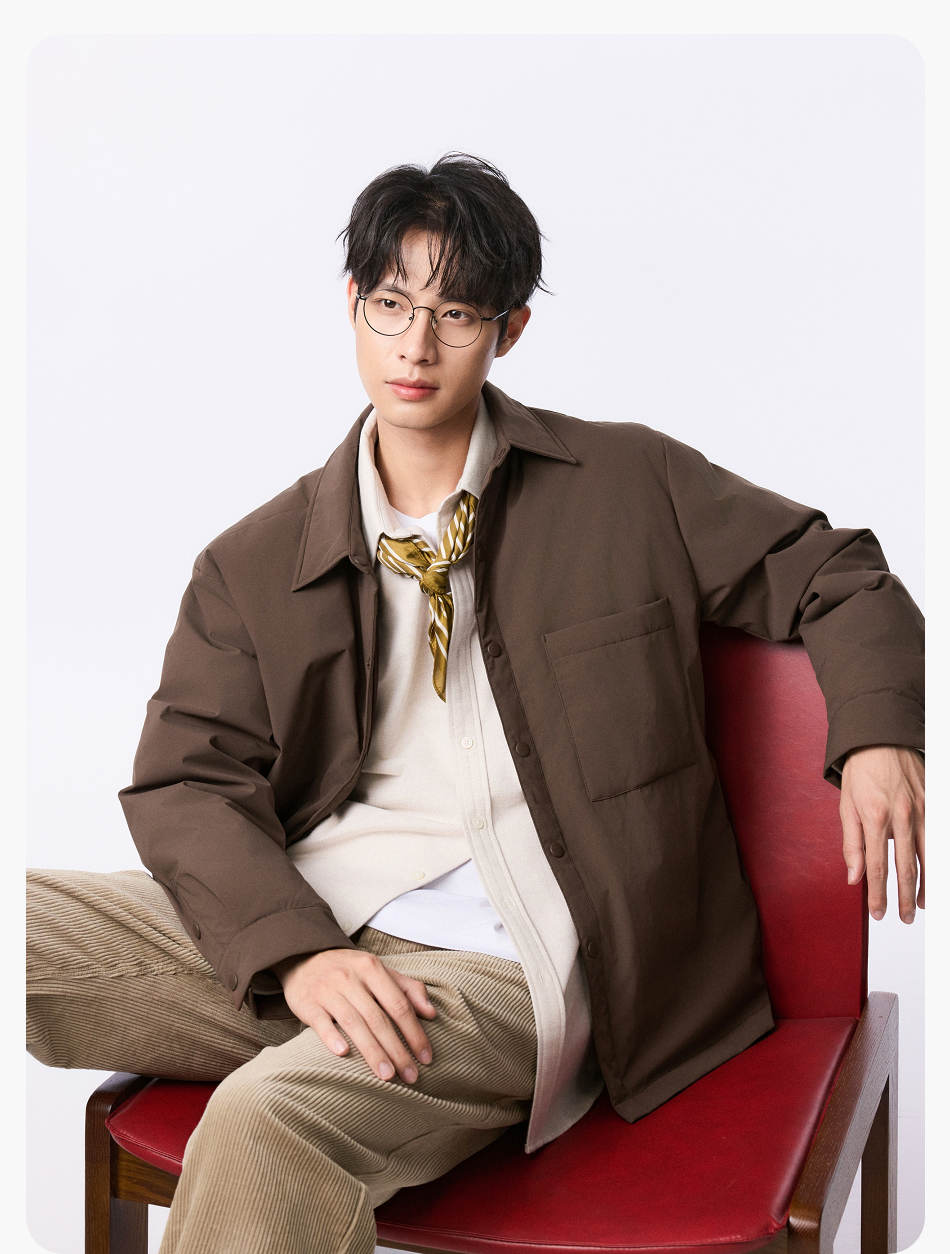 棉仓357815001-微宽松T8棉感轻薄衬衫款白鸭绒羽绒服
