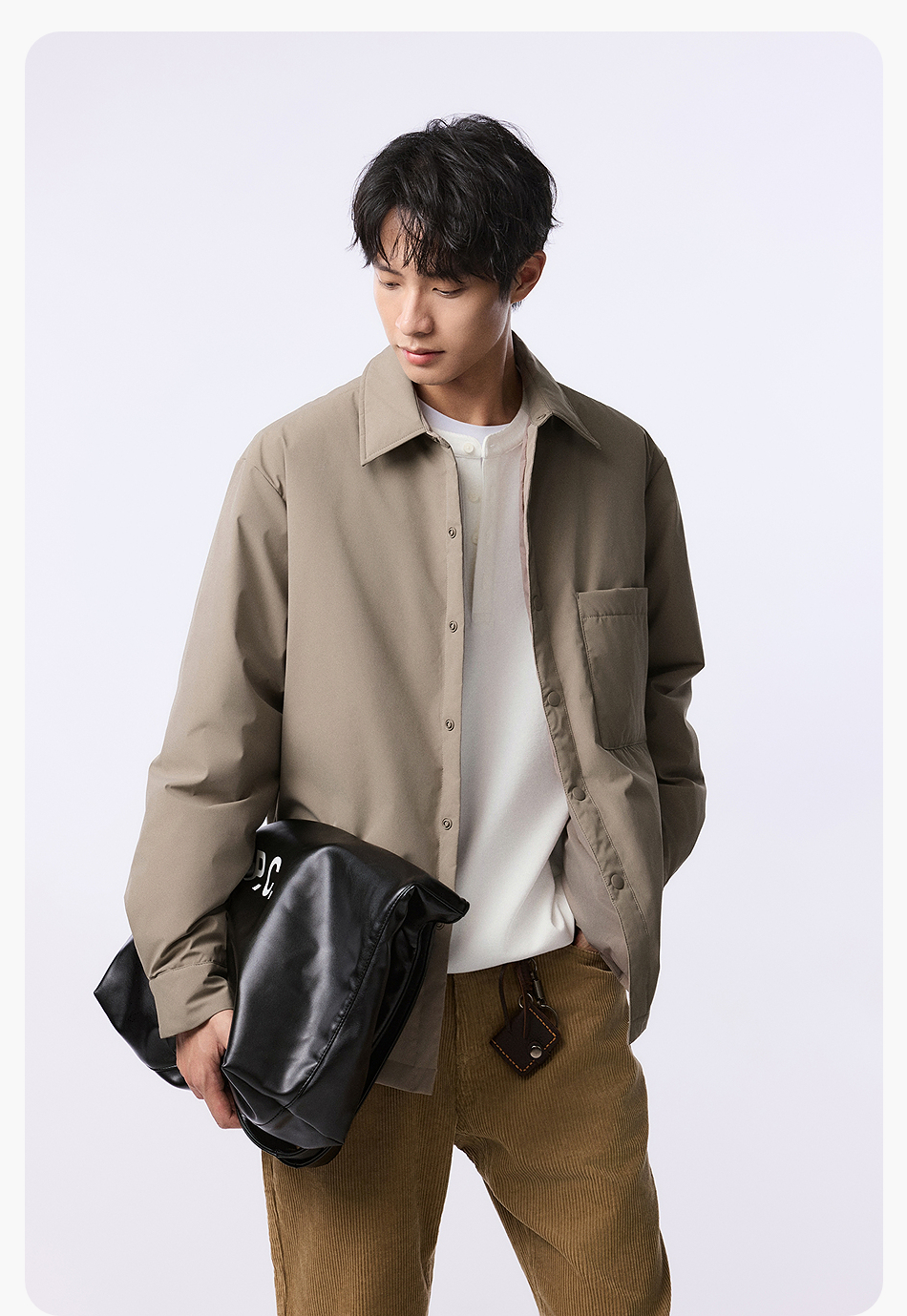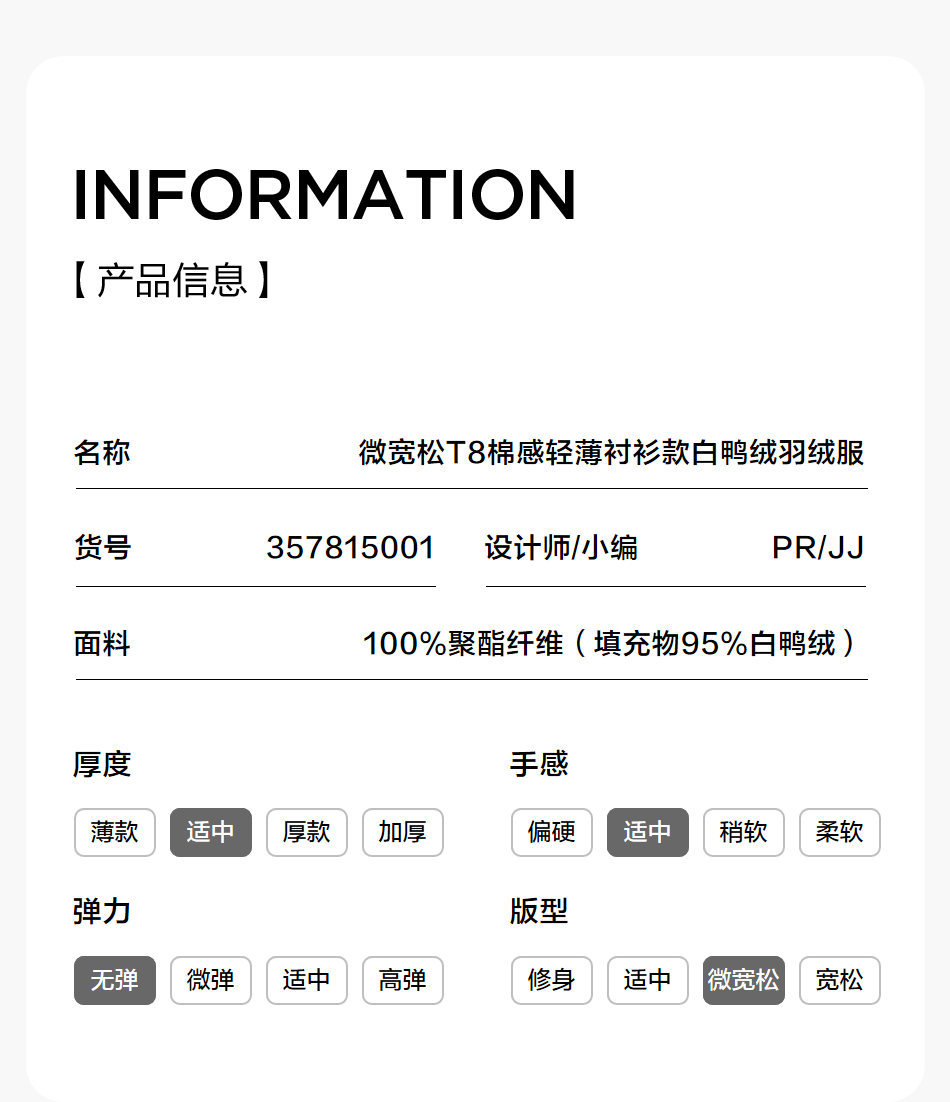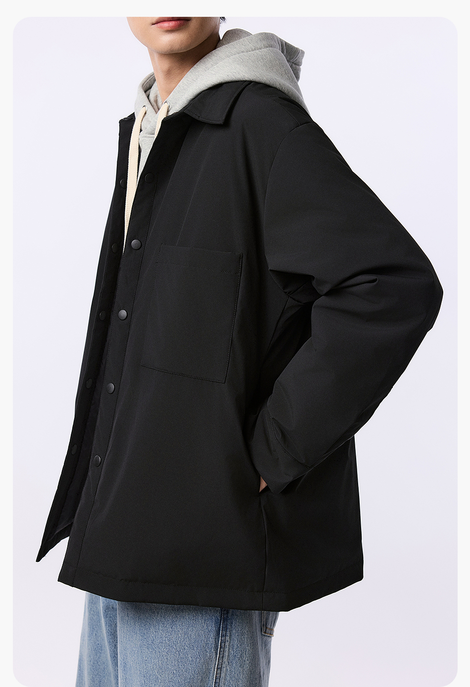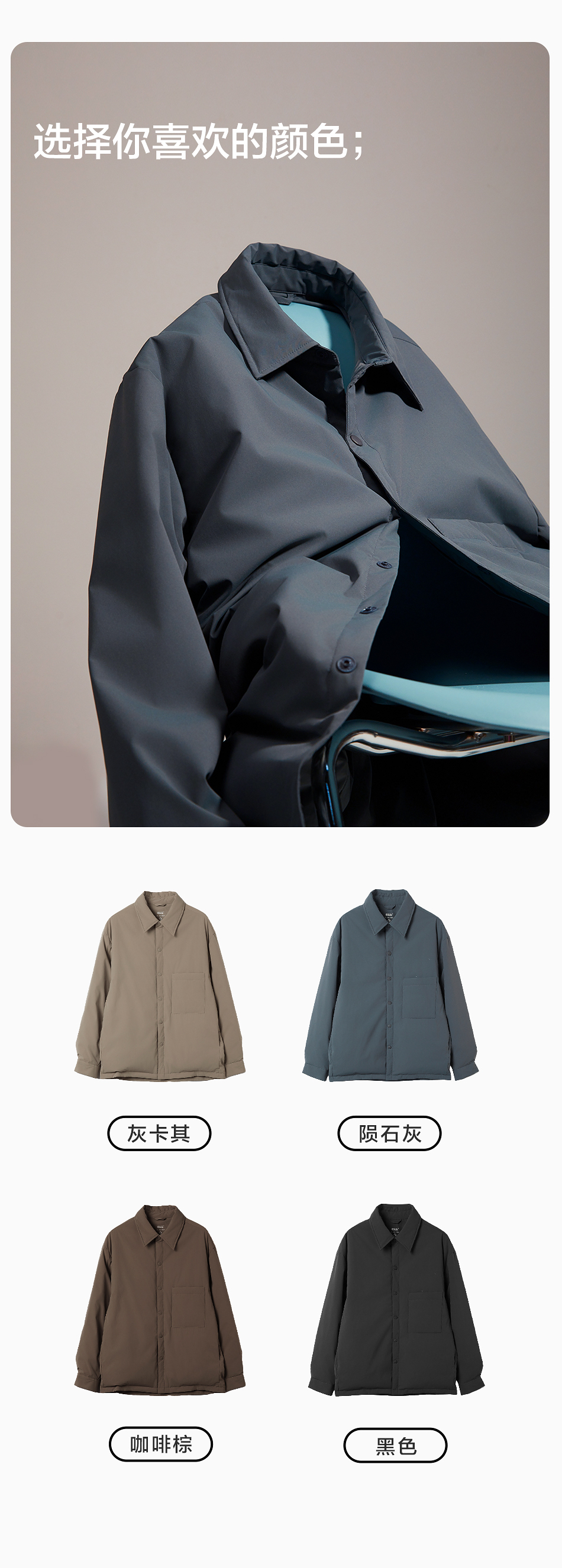 棉仓357815001-微宽松T8棉感轻薄衬衫款白鸭绒羽绒服