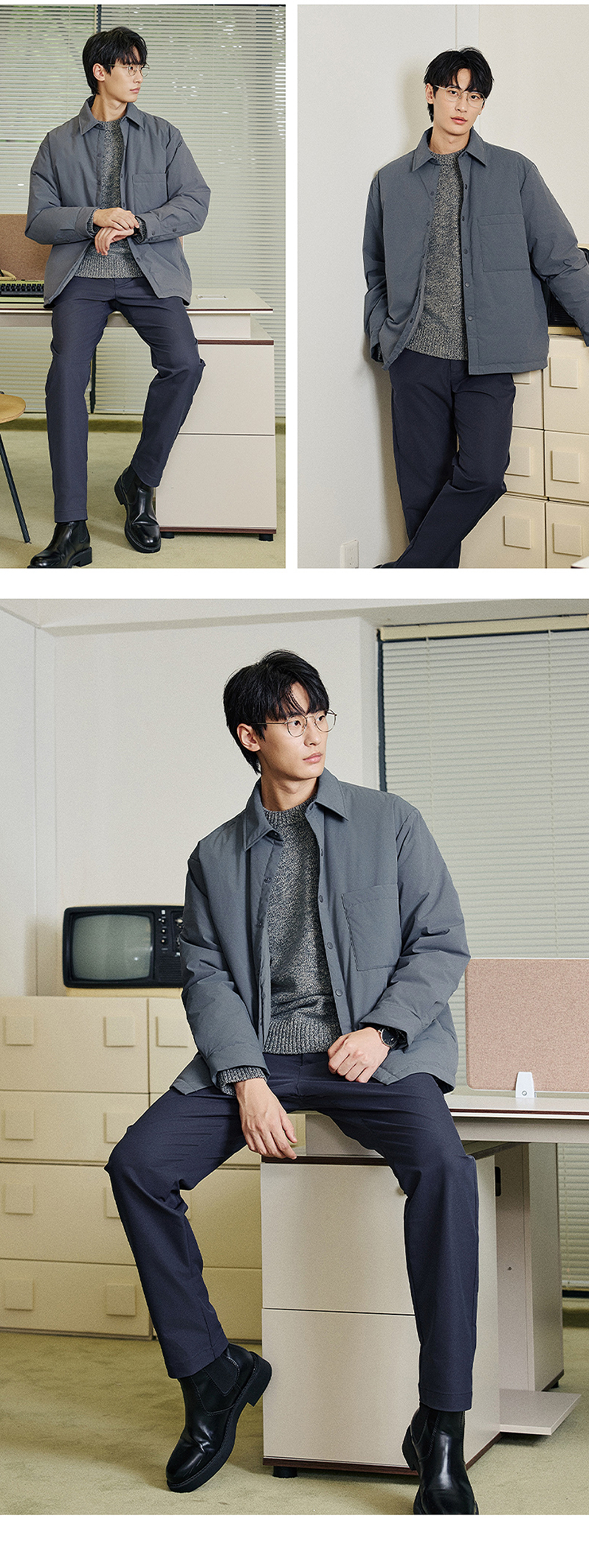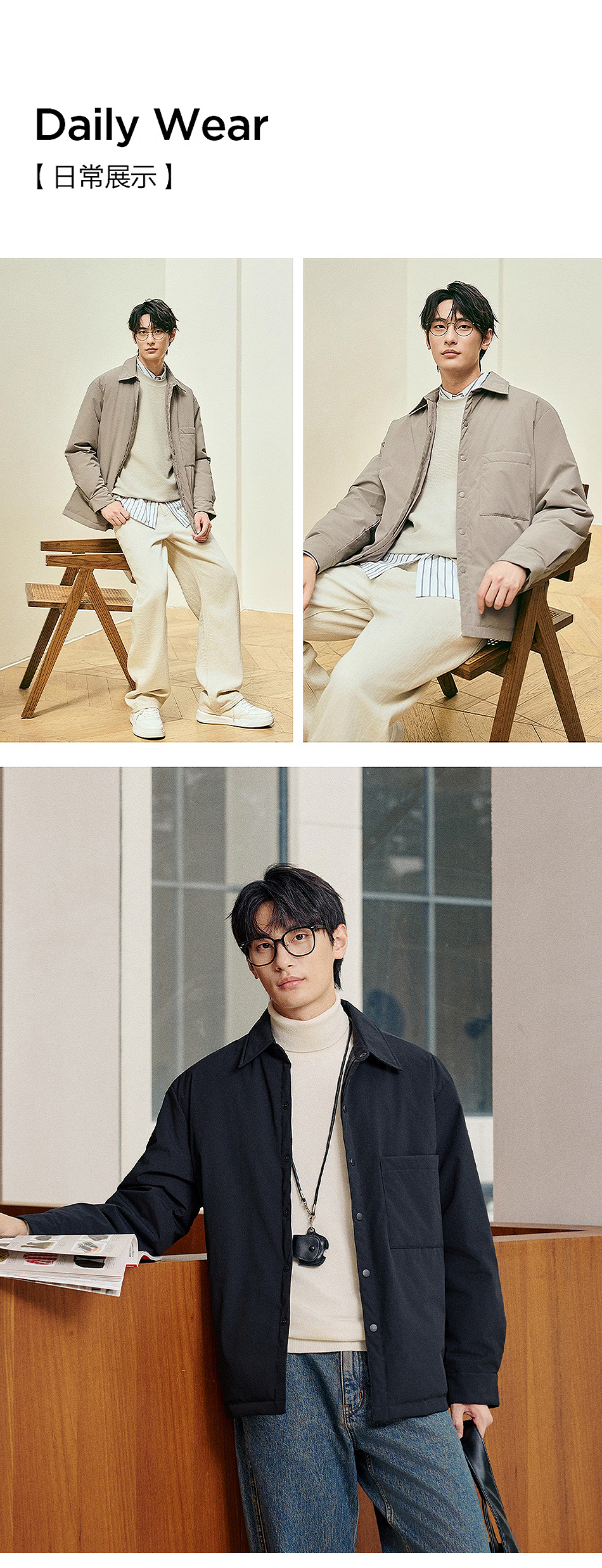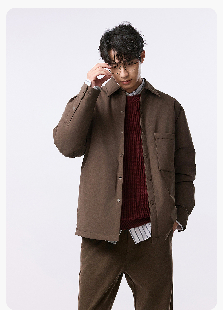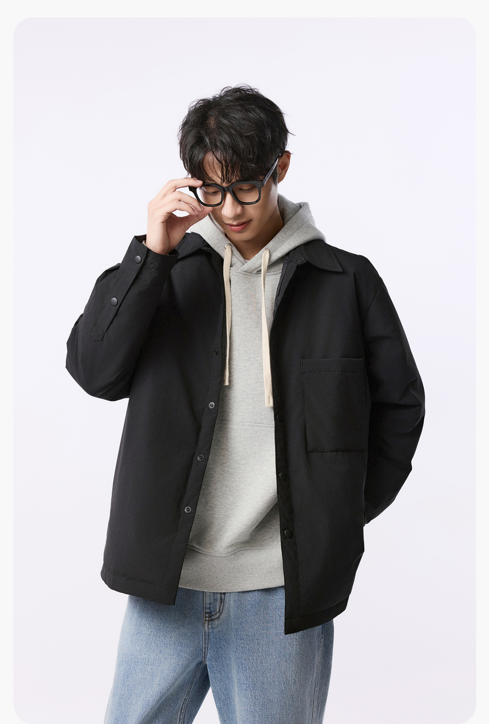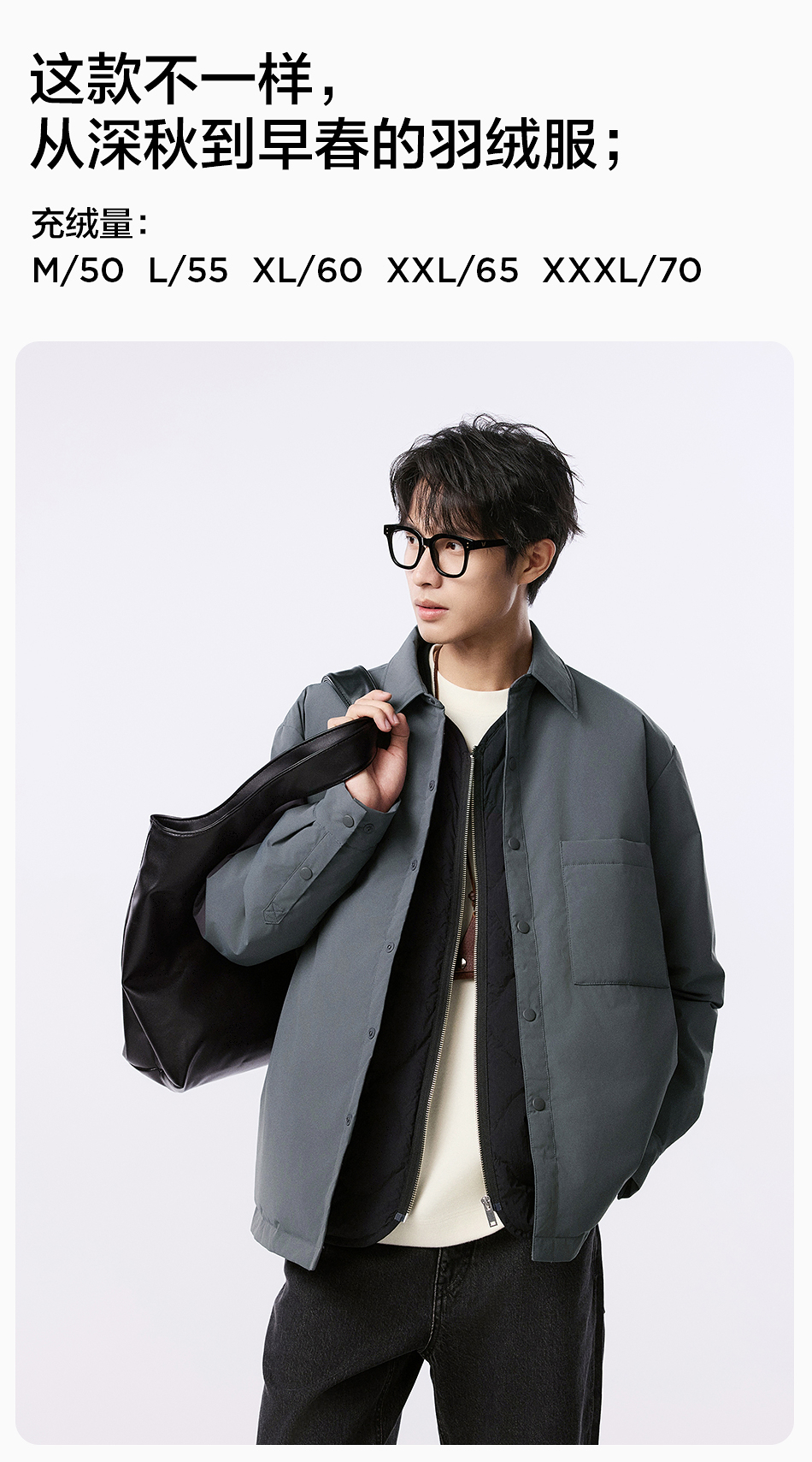 棉仓357815001-微宽松T8棉感轻薄衬衫款白鸭绒羽绒服