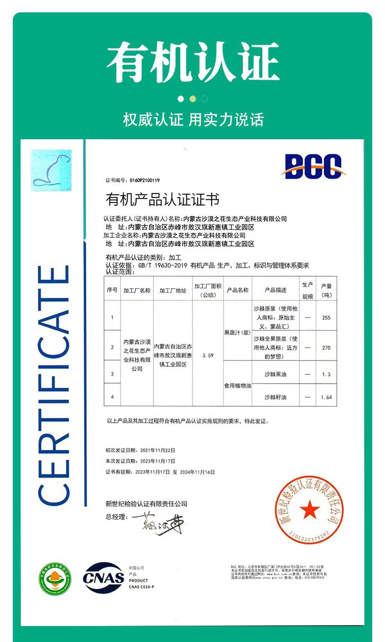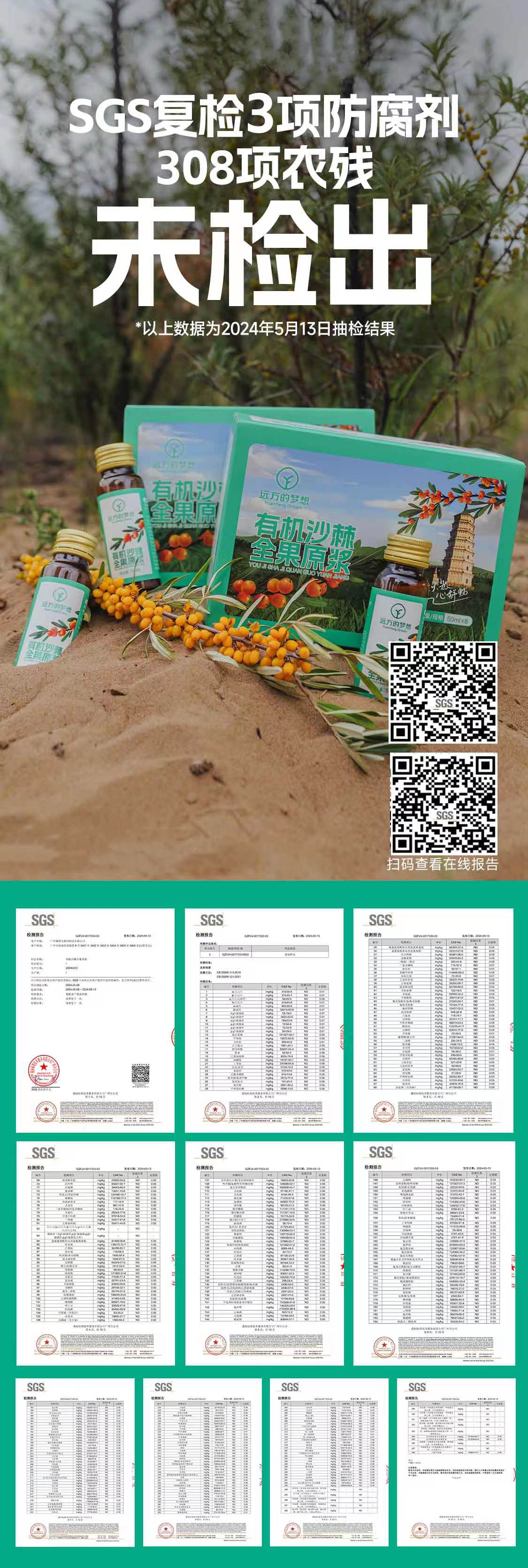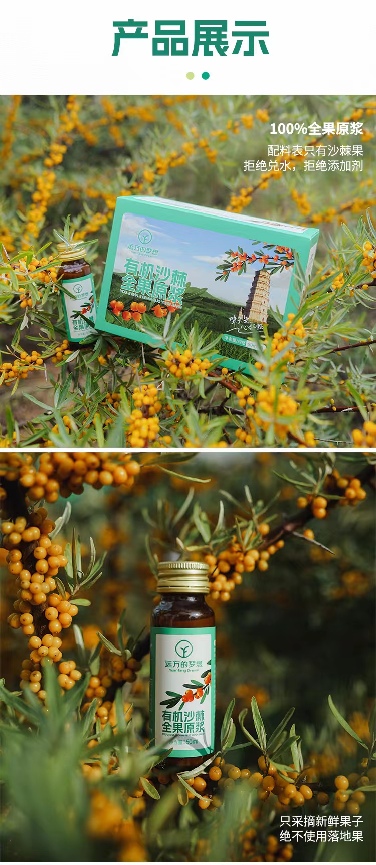 【有机全果沙棘原浆】(50ml*8支/盒)拒绝兑水,拒绝提取,拒绝加糖,配料表只有有机沙棘果!还通过了中国有机认证!