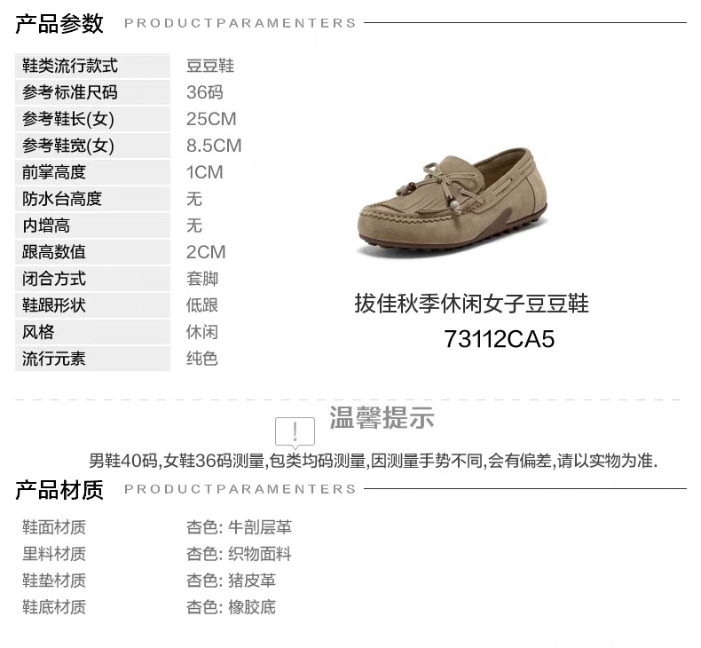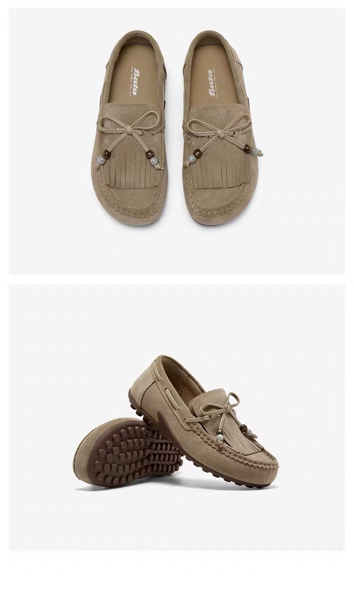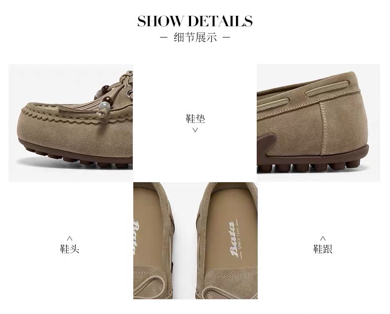 【云粉节】 【拔佳】BF楼Bata乐福鞋女2025秋款英伦风牛剖皮通勤百搭豆豆鞋73112CA5 吊牌价899 活动价499