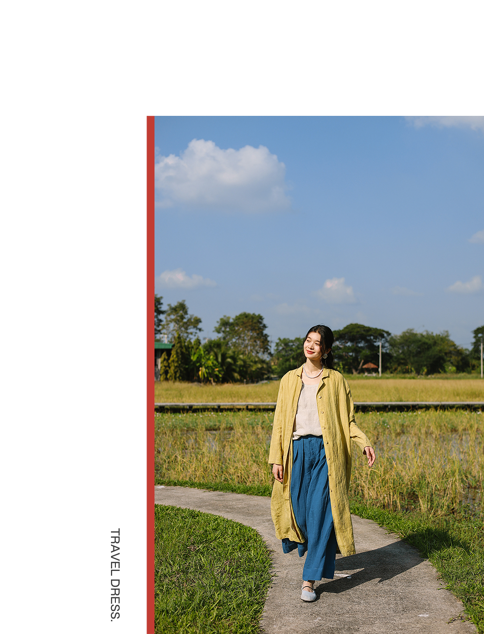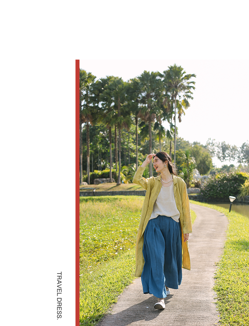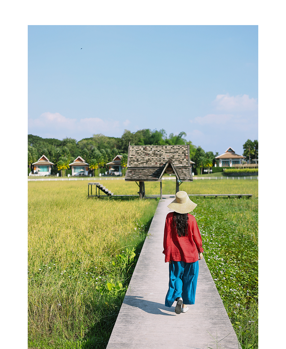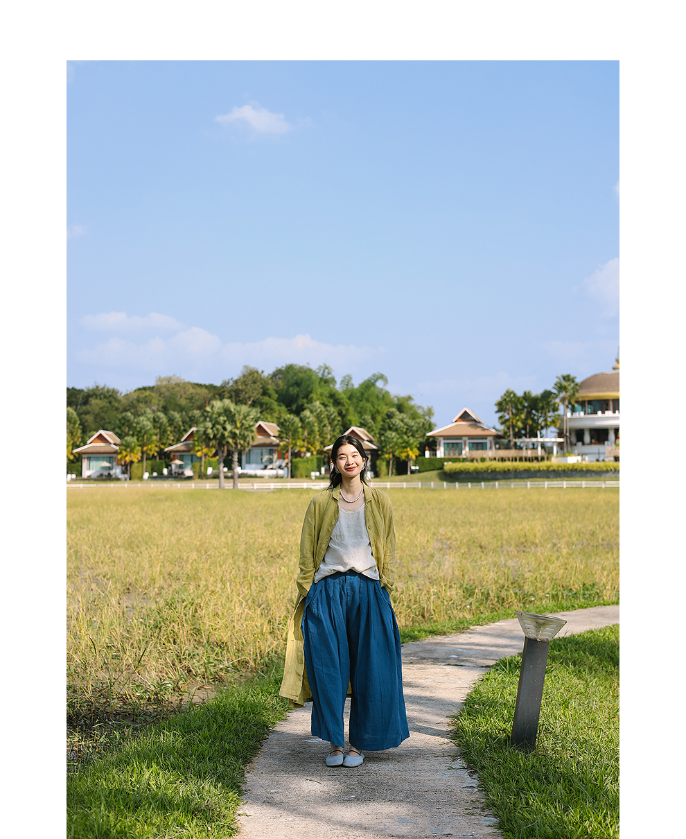 以天然亚麻为载体,融合热烈色彩与自在剪裁为身在城市、心怀远方的女性提供兼具美学与舒适的旅行着装