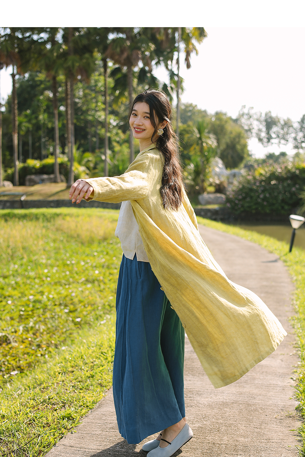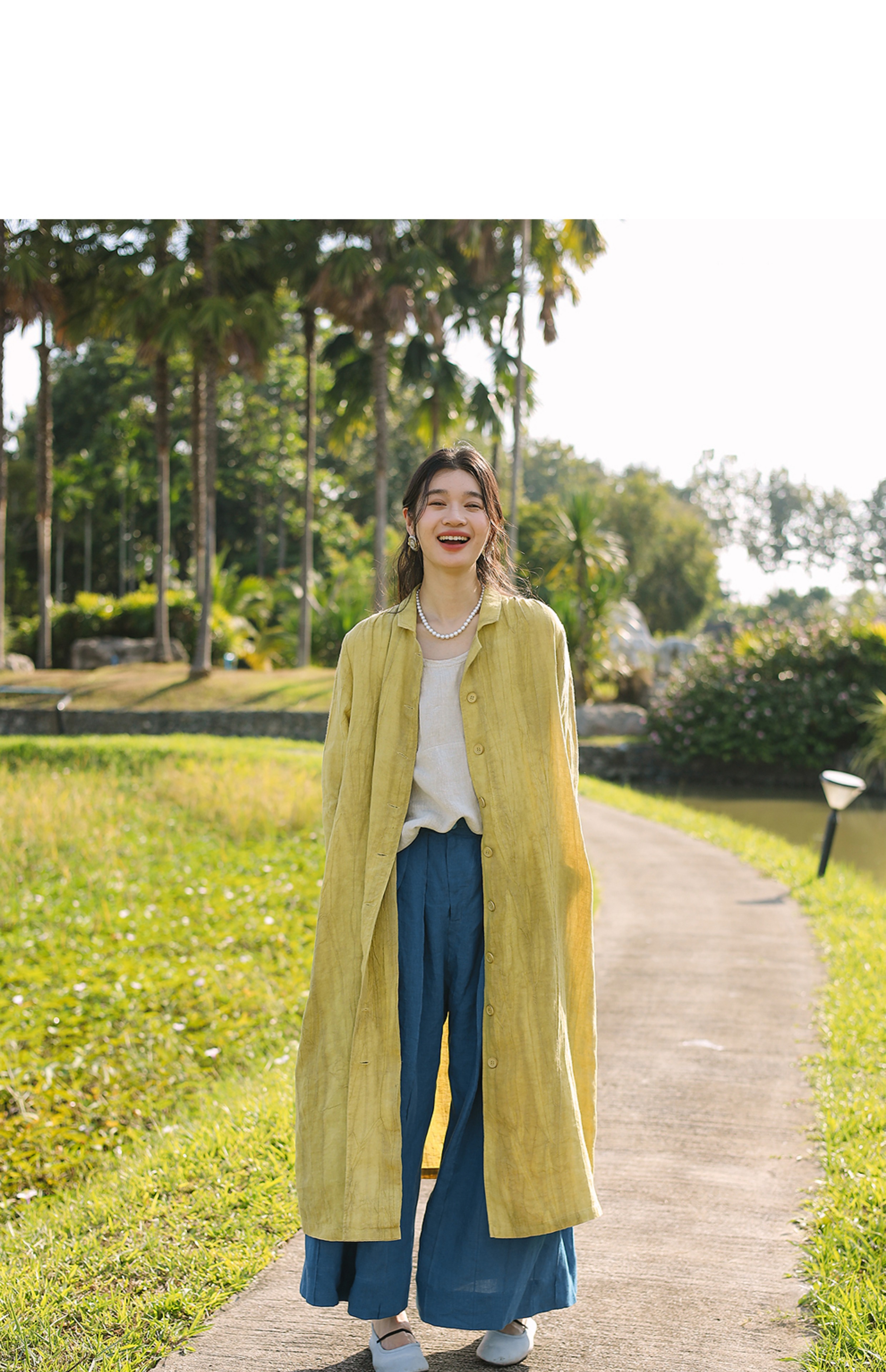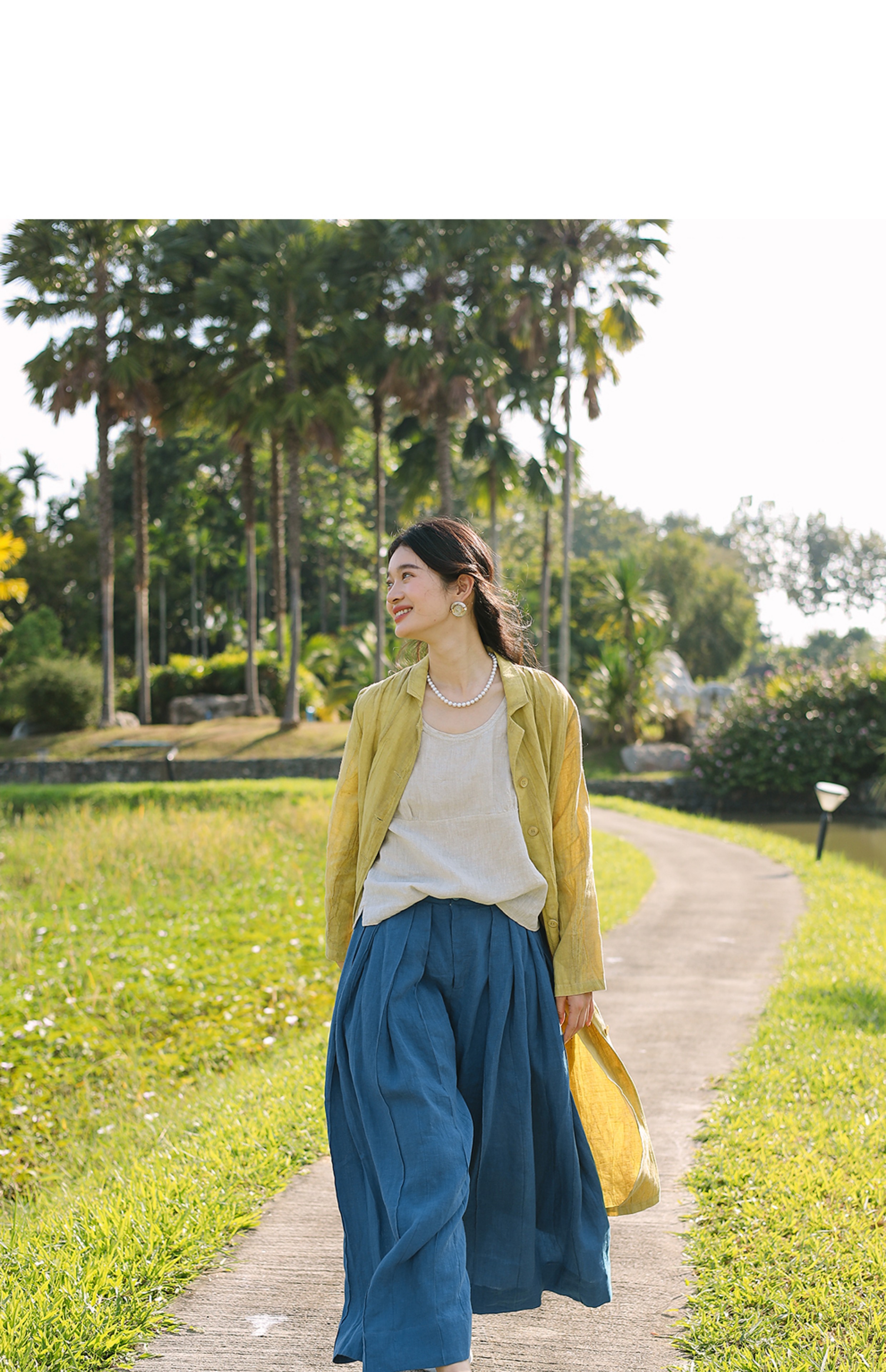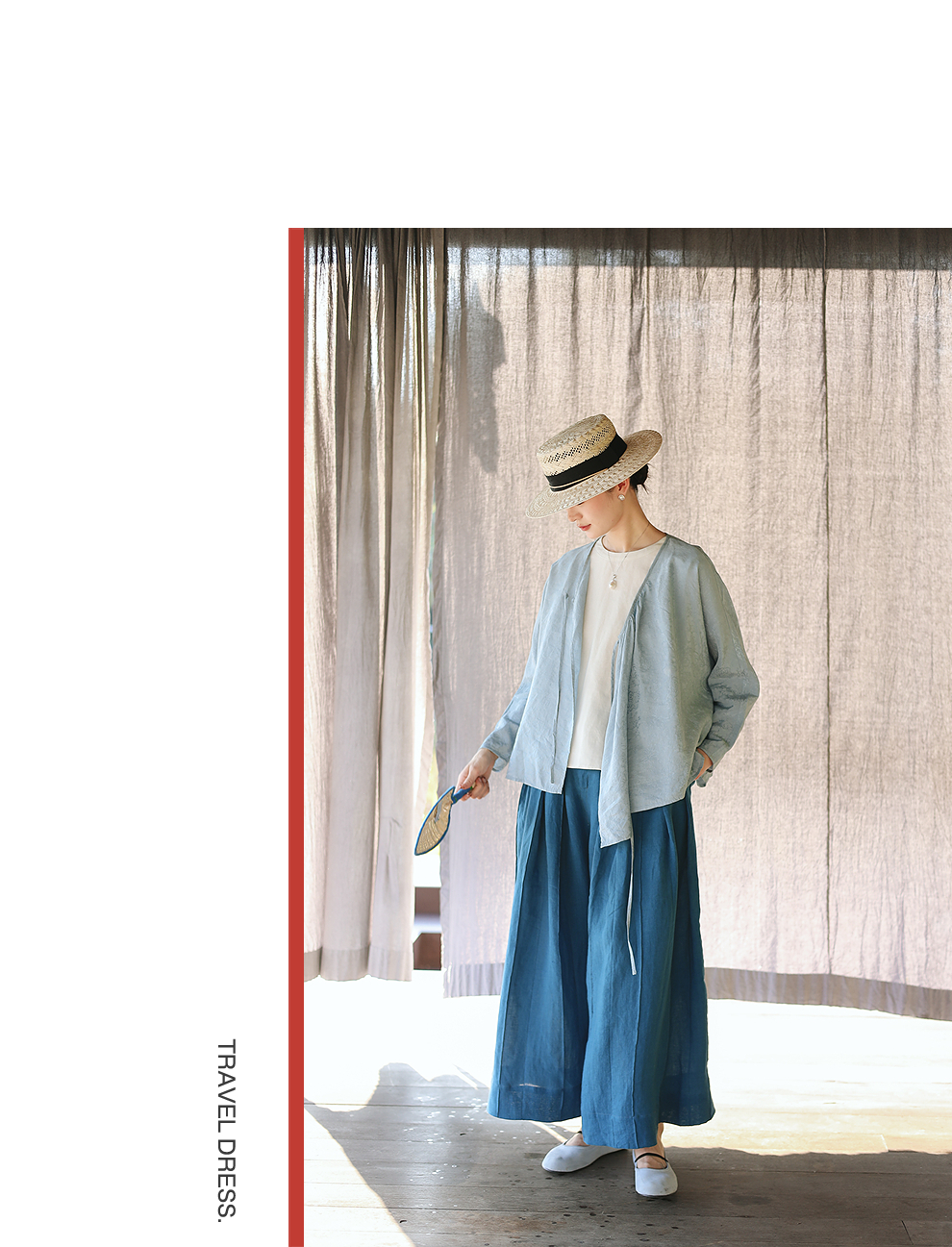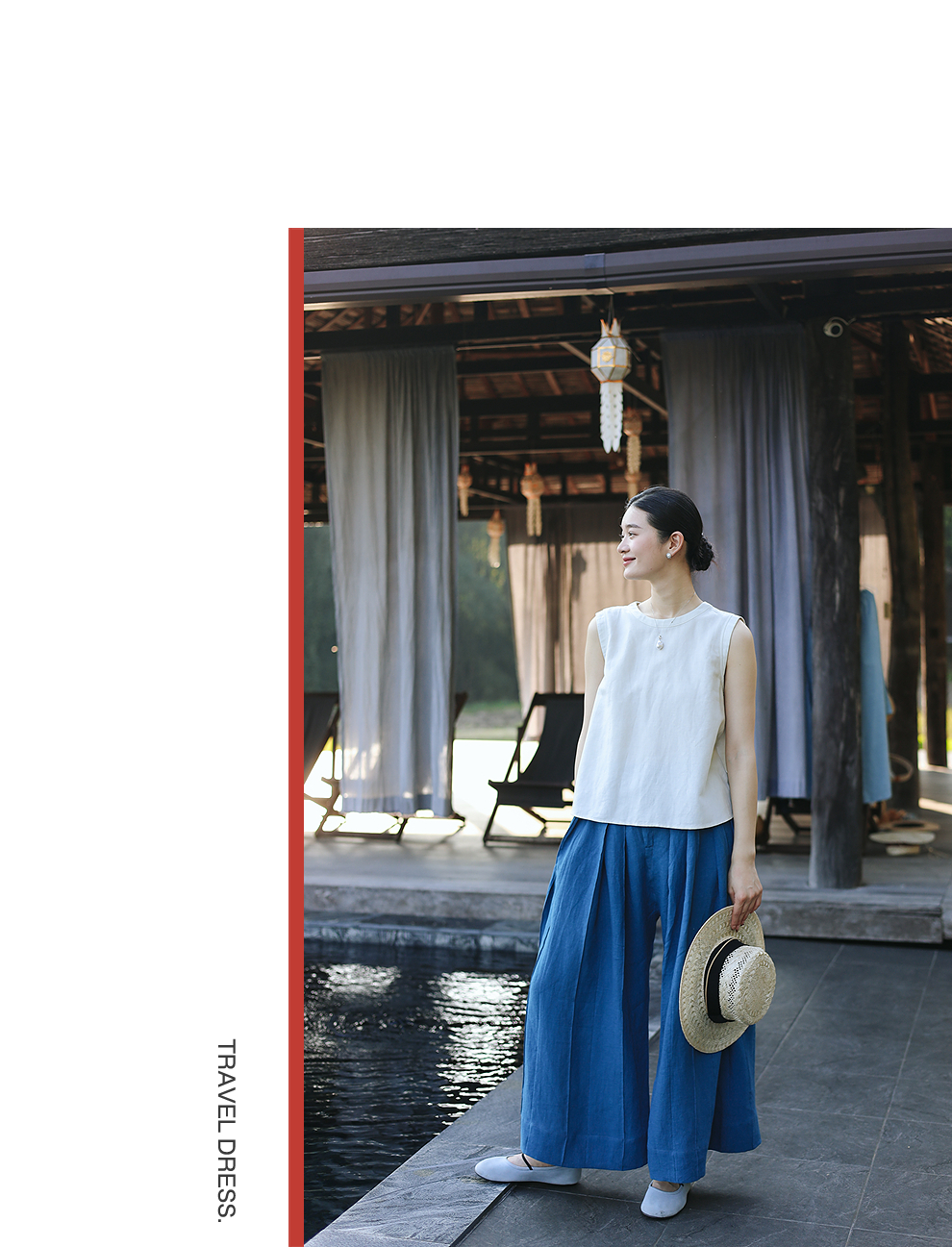 以天然亚麻为载体,融合热烈色彩与自在剪裁为身在城市、心怀远方的女性提供兼具美学与舒适的旅行着装