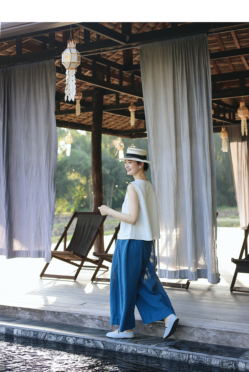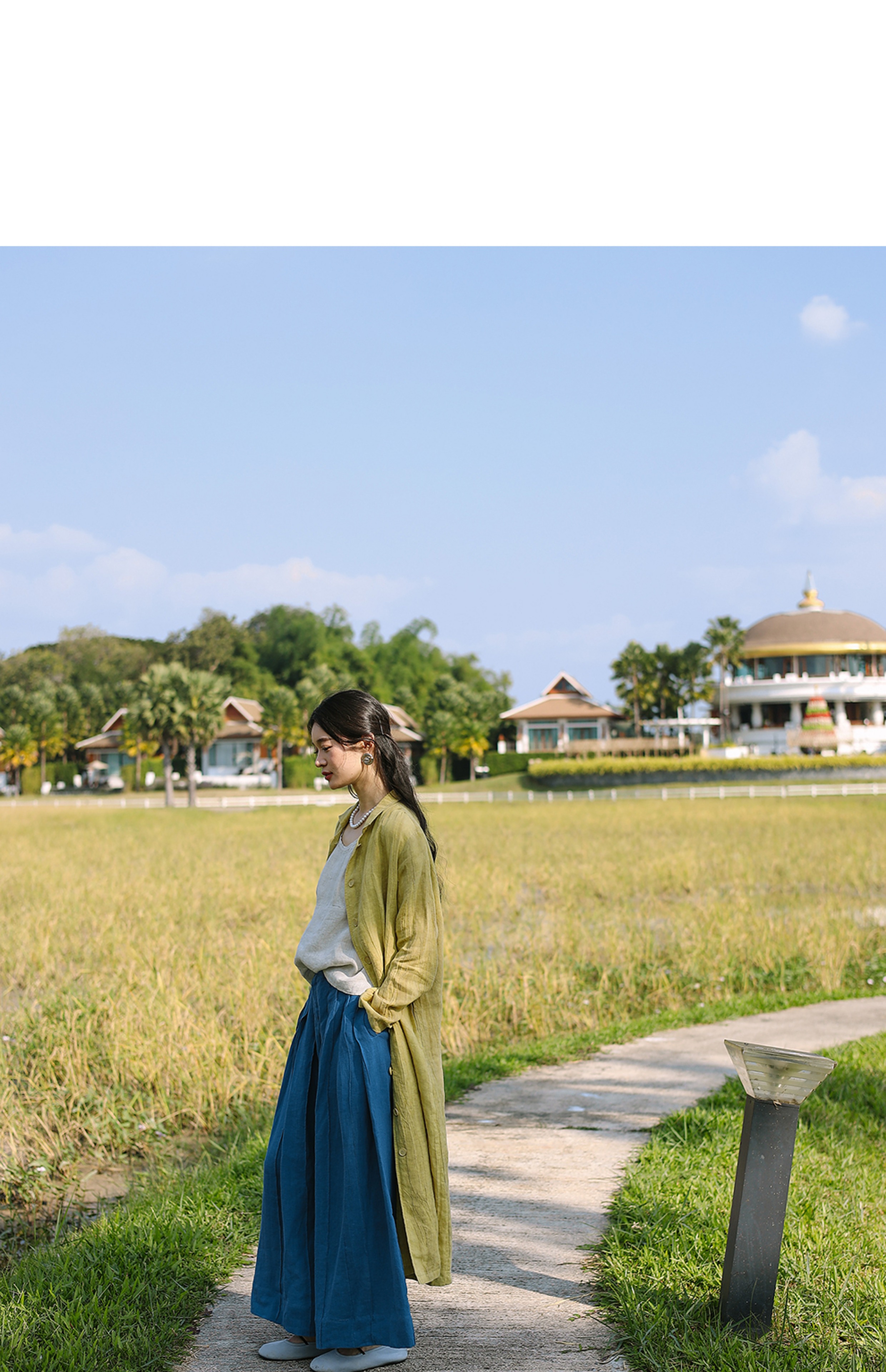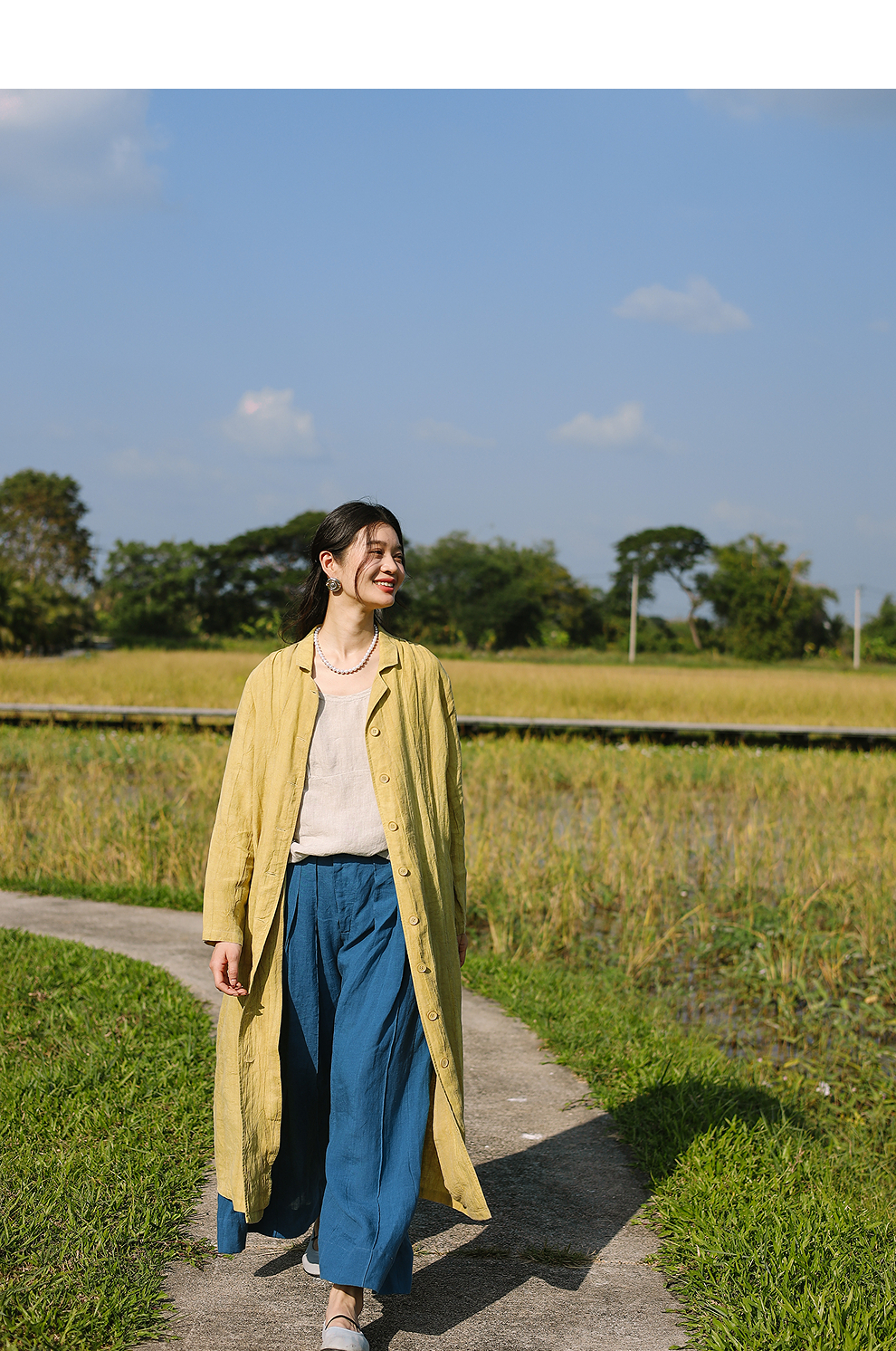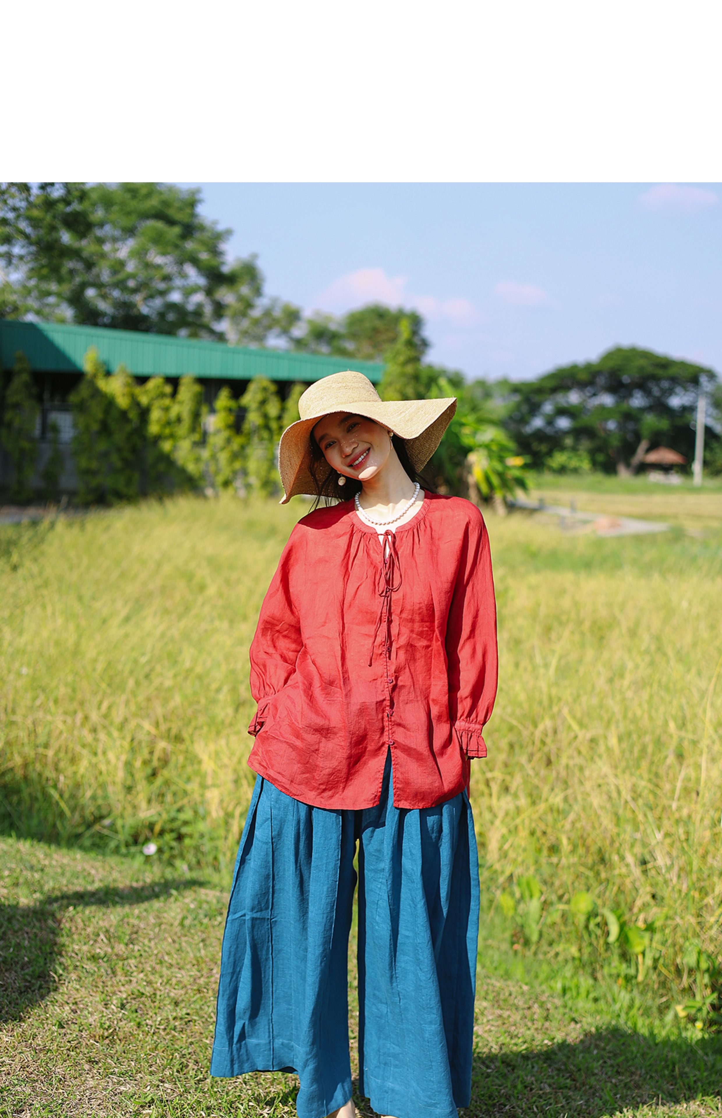 以天然亚麻为载体,融合热烈色彩与自在剪裁为身在城市、心怀远方的女性提供兼具美学与舒适的旅行着装