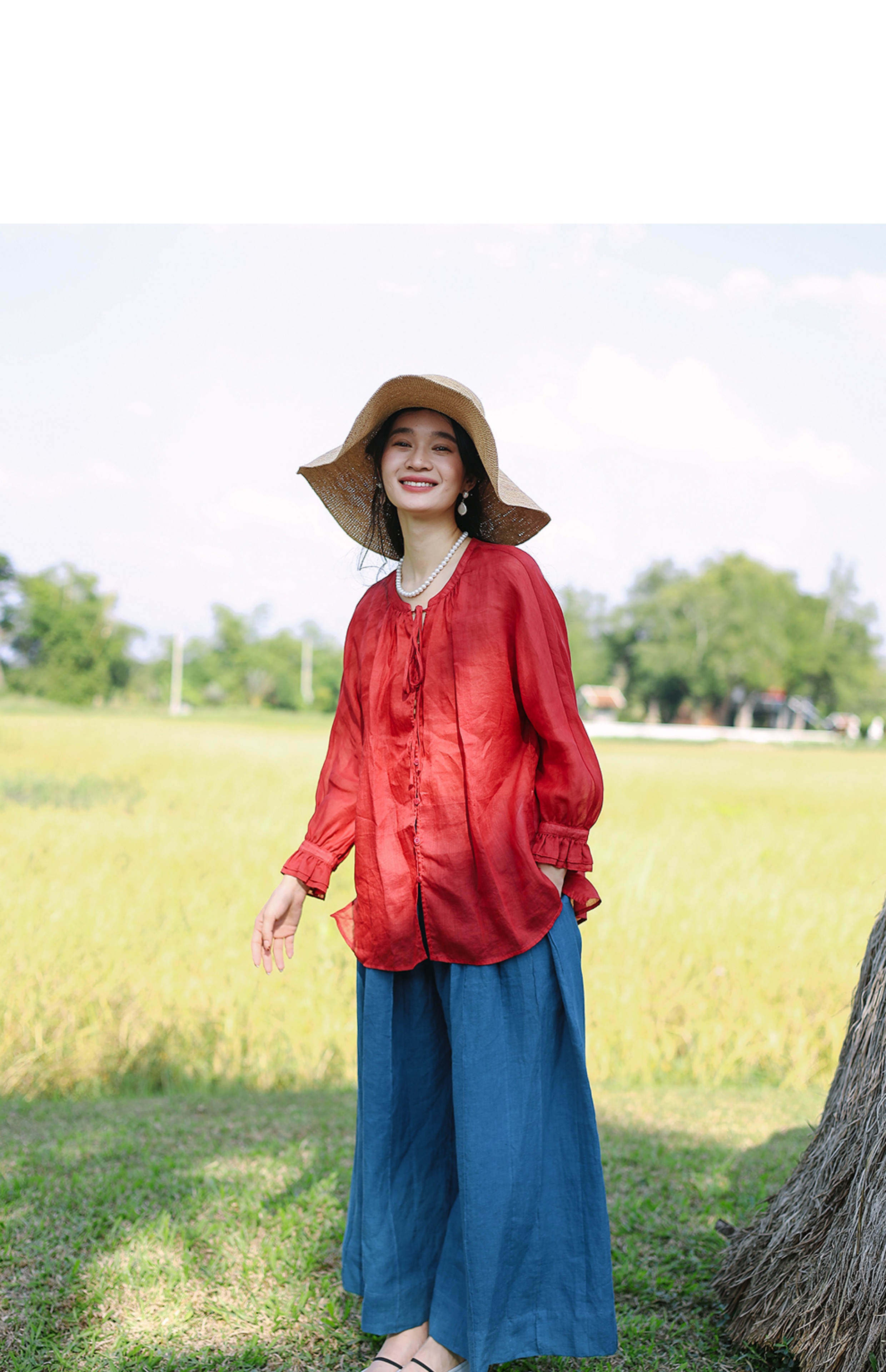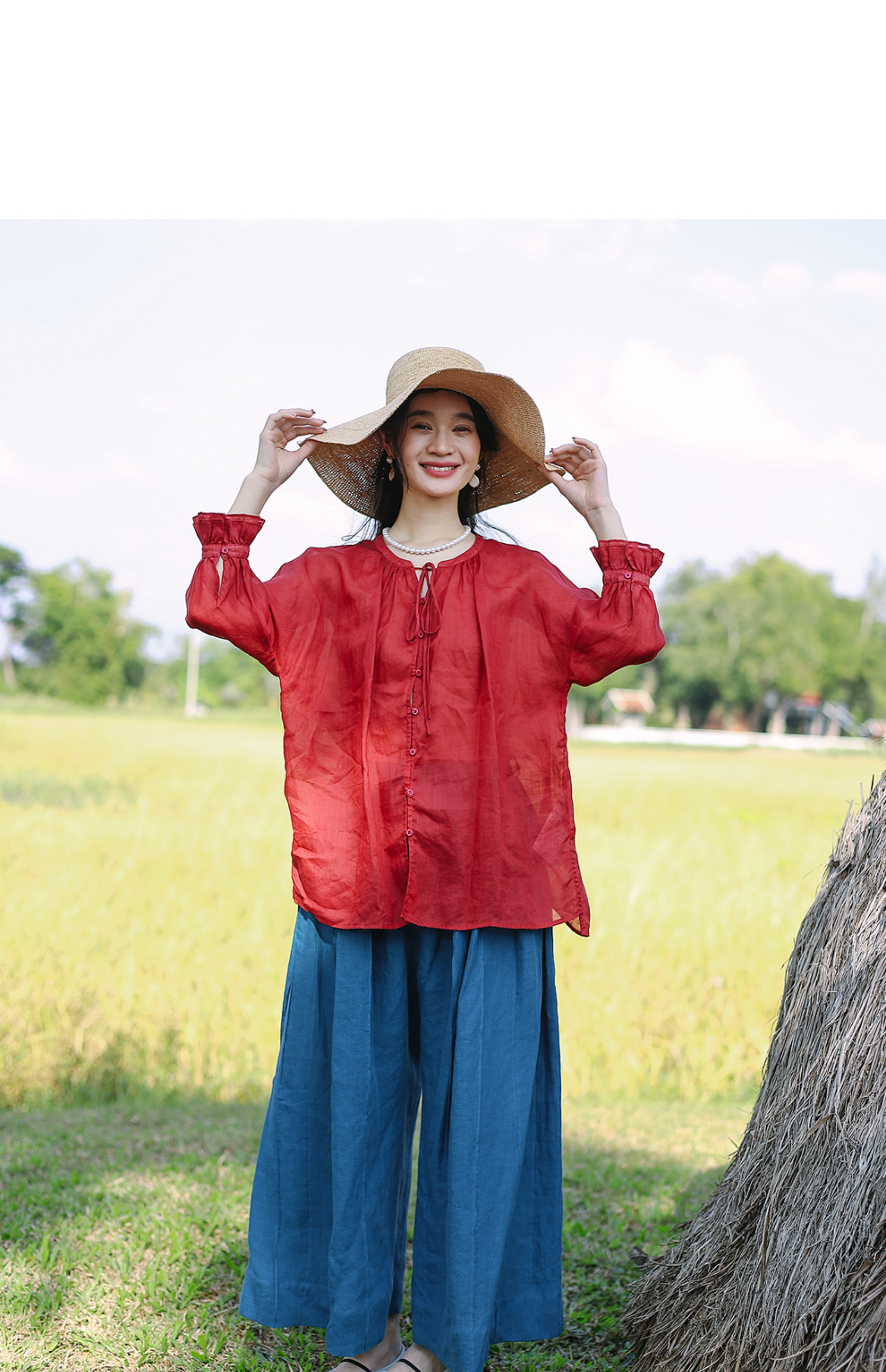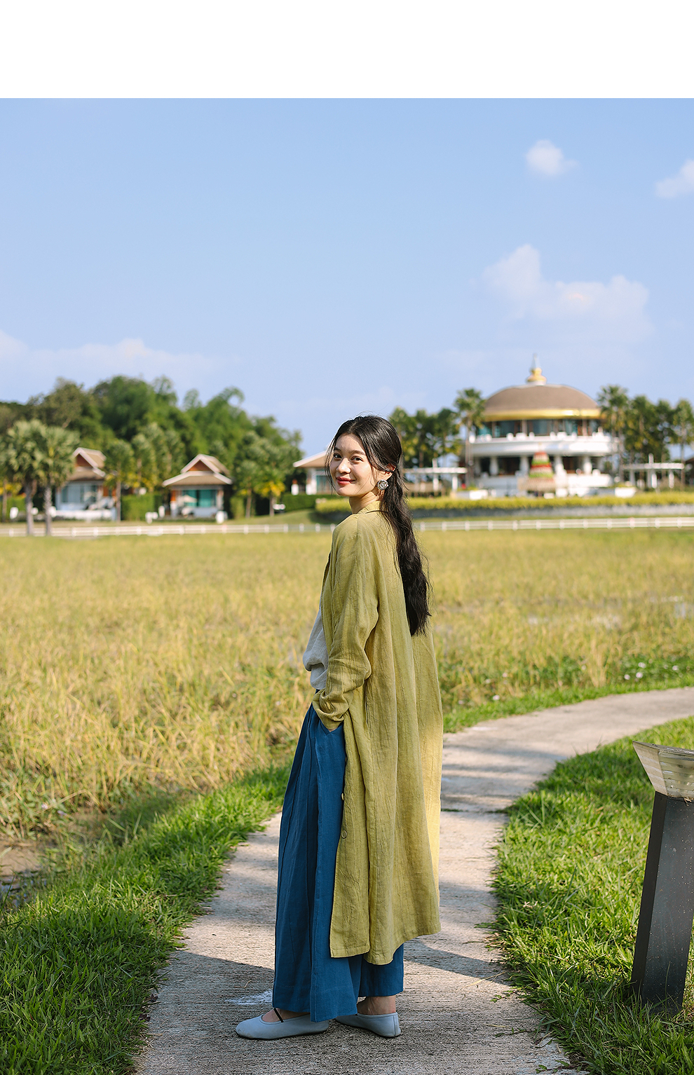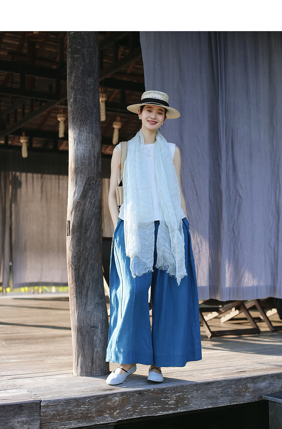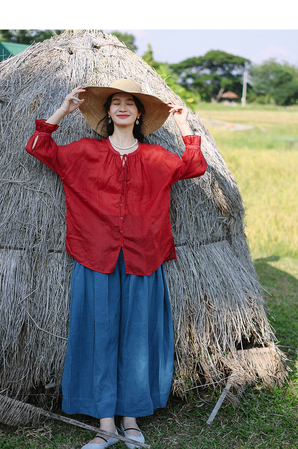 以天然亚麻为载体,融合热烈色彩与自在剪裁为身在城市、心怀远方的女性提供兼具美学与舒适的旅行着装