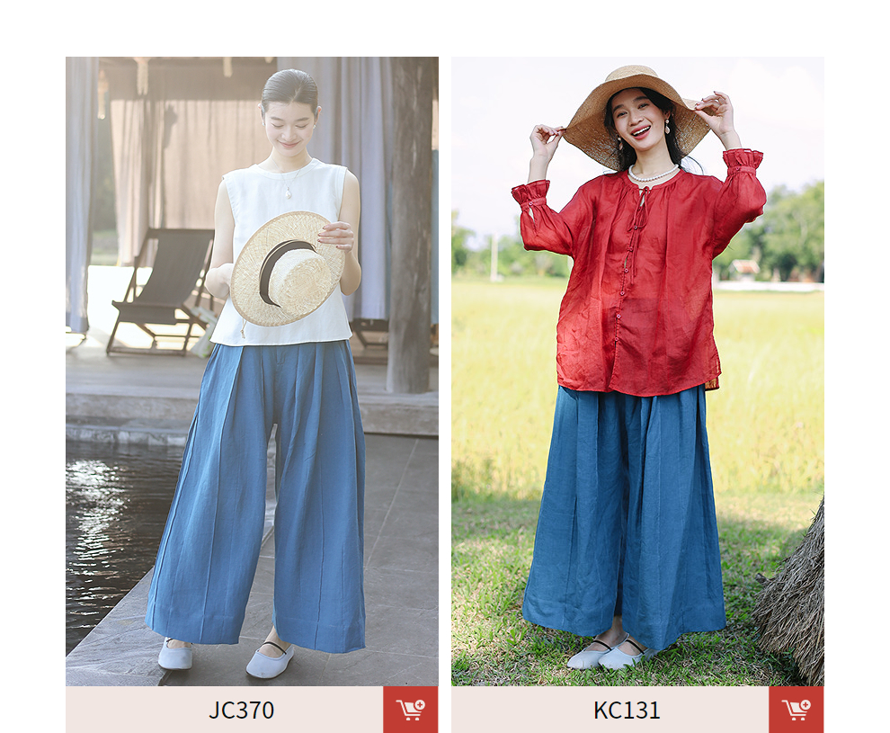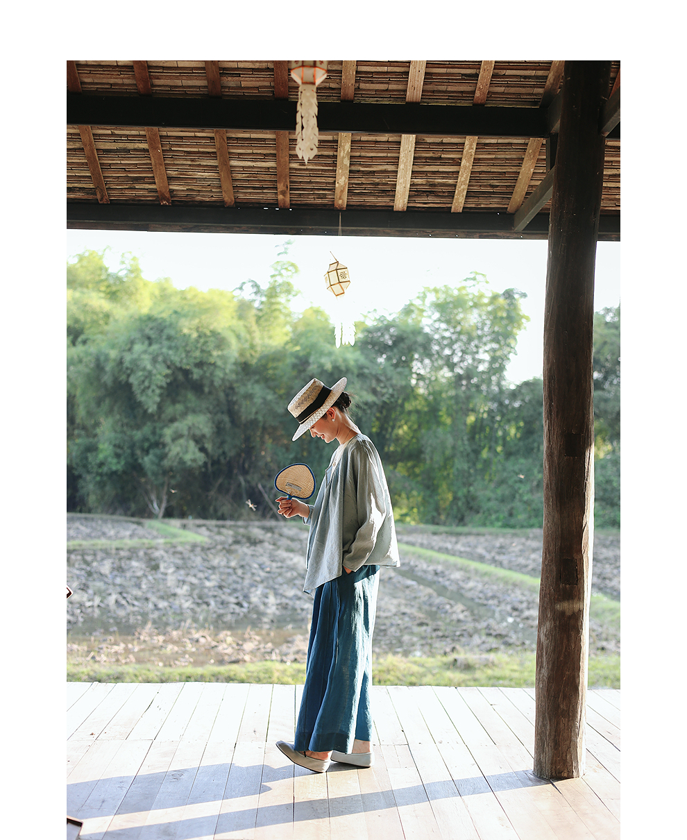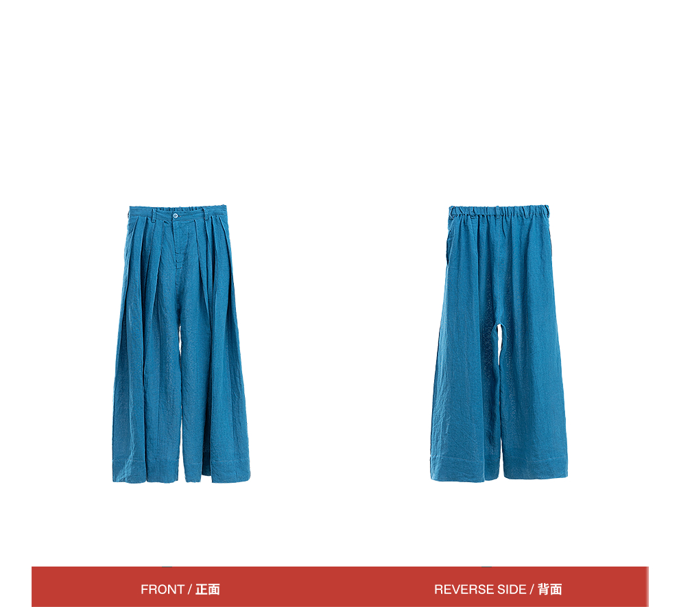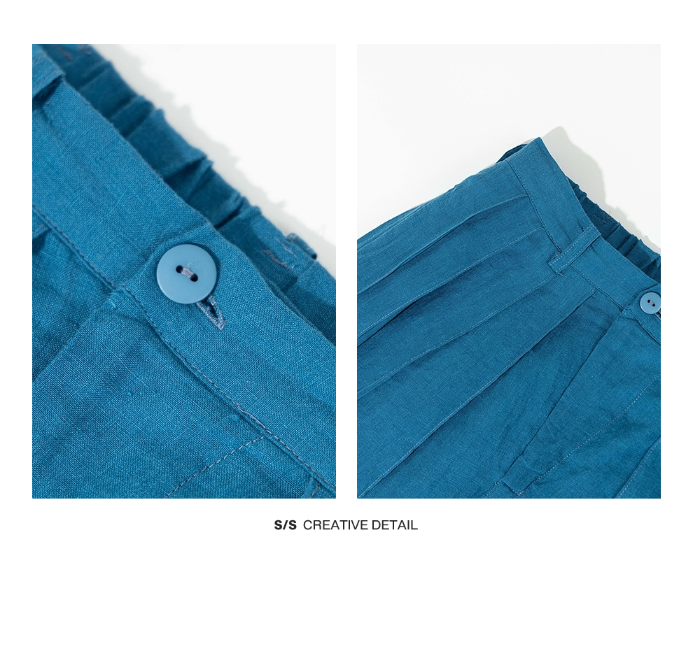绽放旅行女装154朵/又见武士阔腿长裤孔雀蓝亚麻百搭宽松武士裤