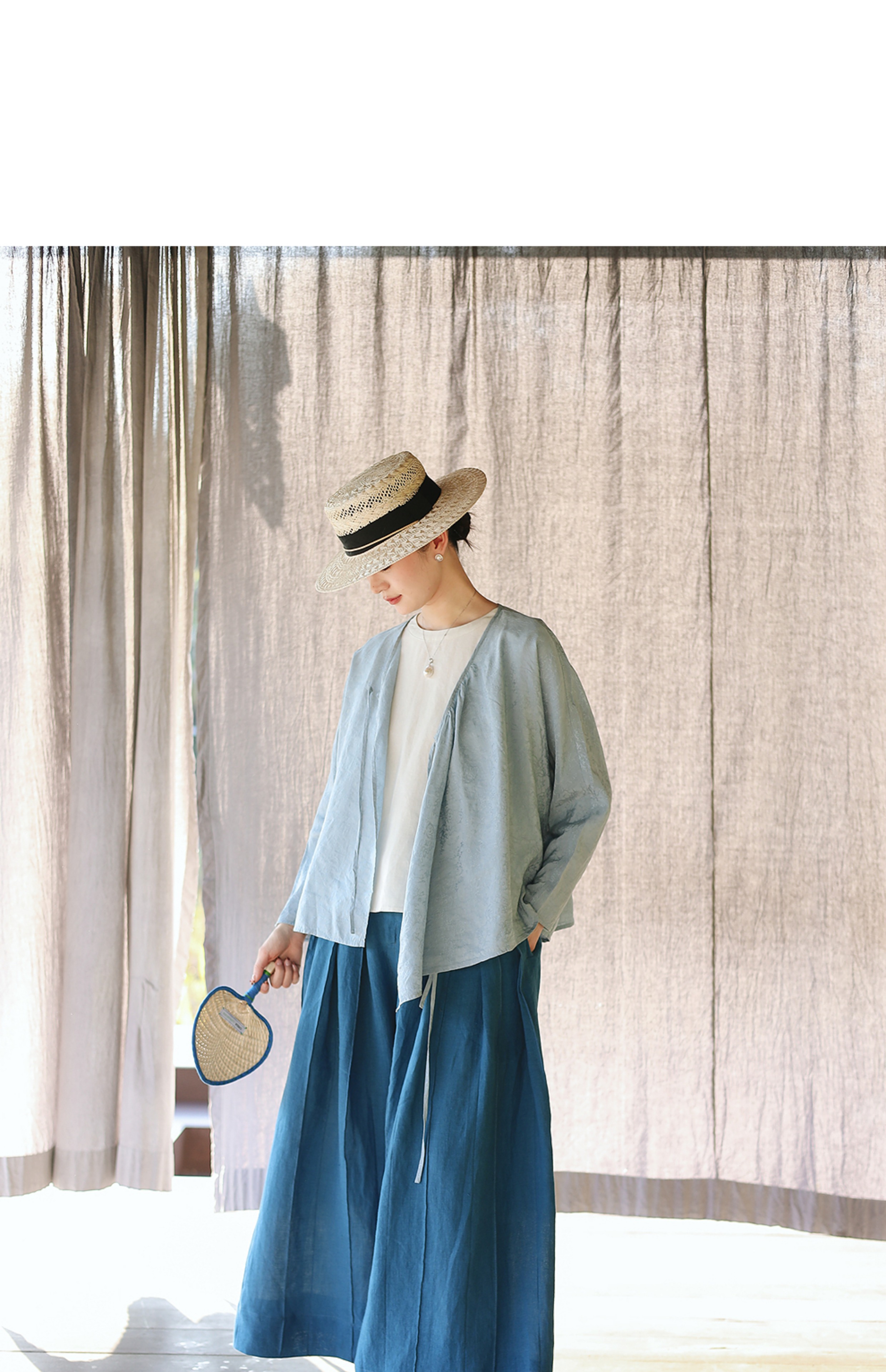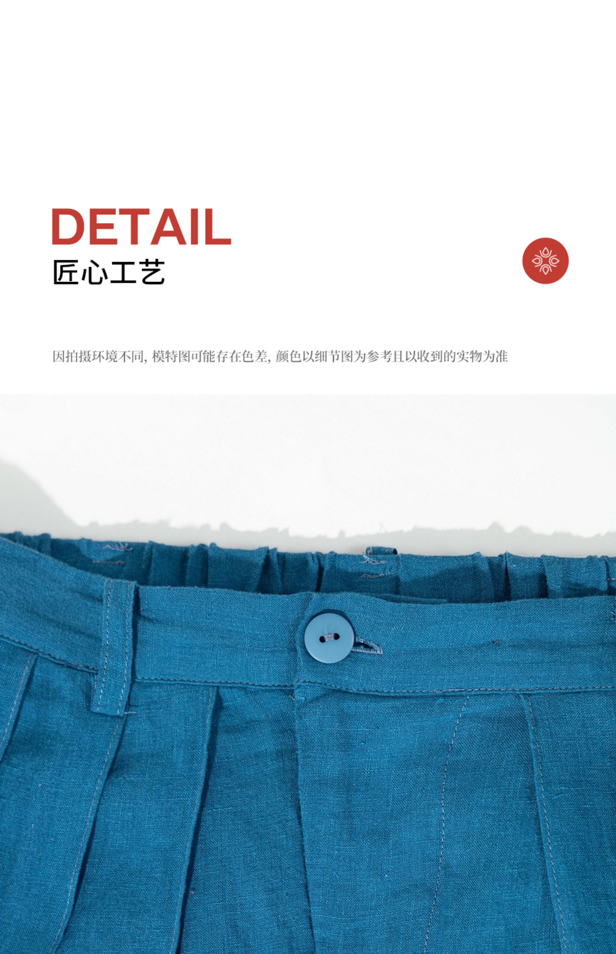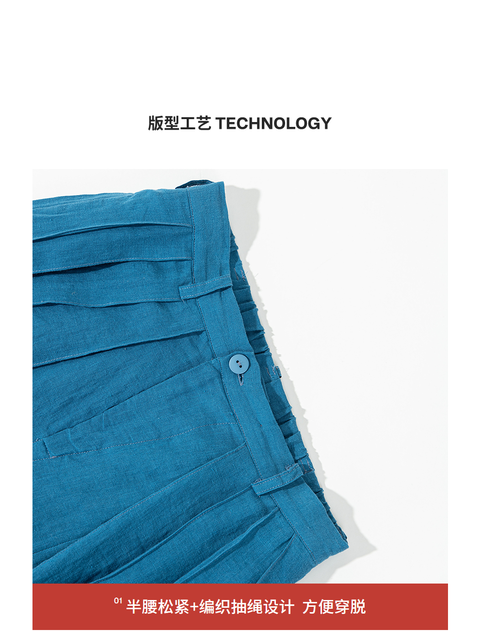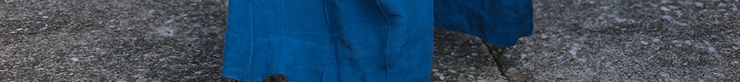 绽放旅行女装154朵/又见武士阔腿长裤孔雀蓝亚麻百搭宽松武士裤