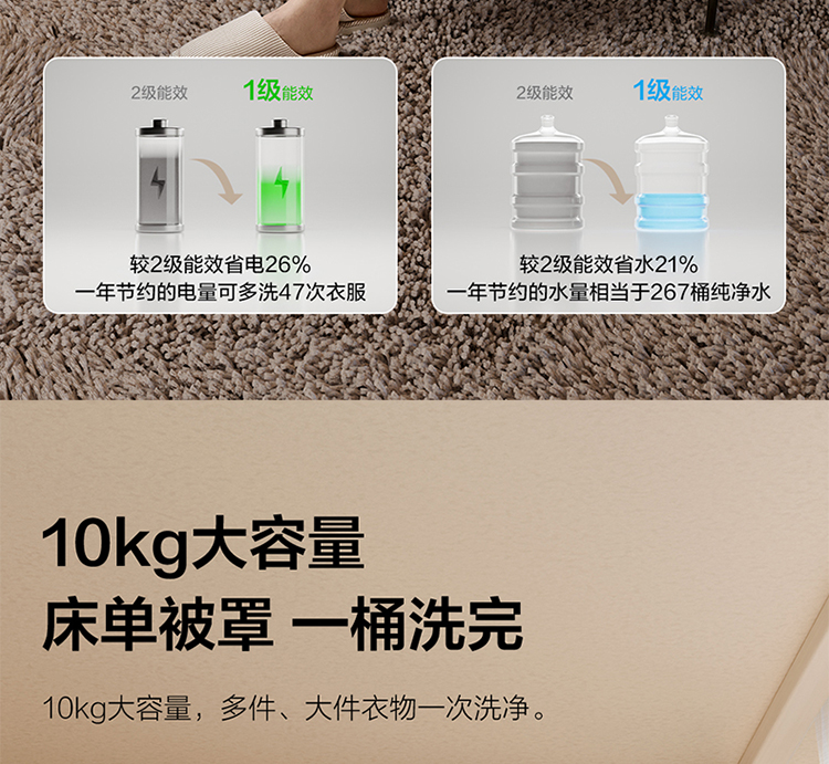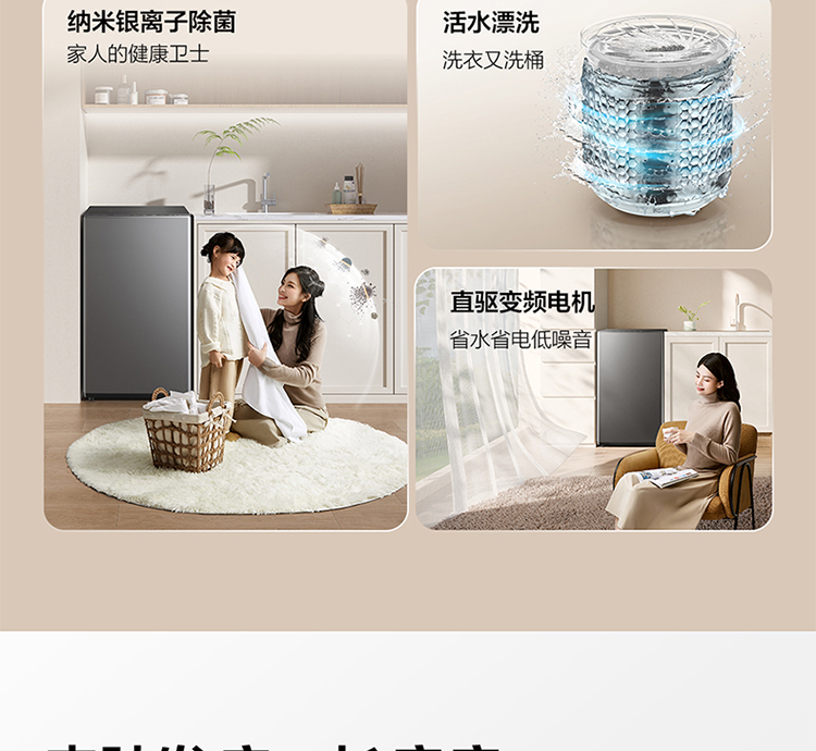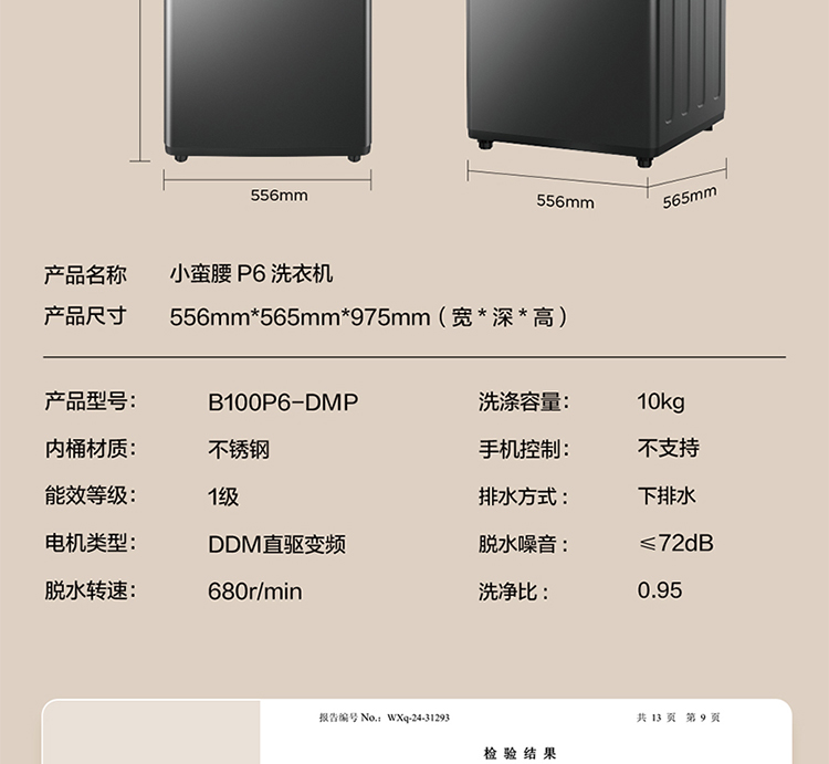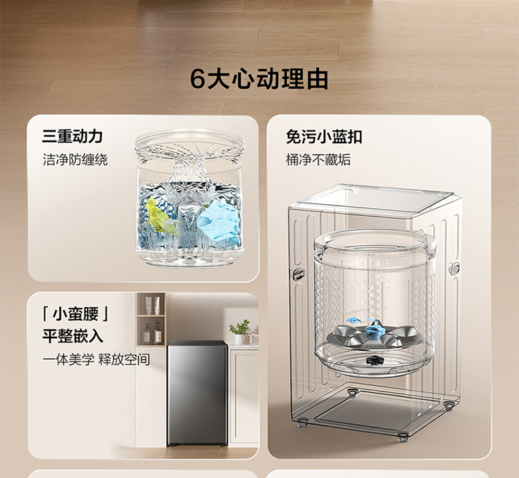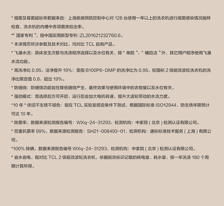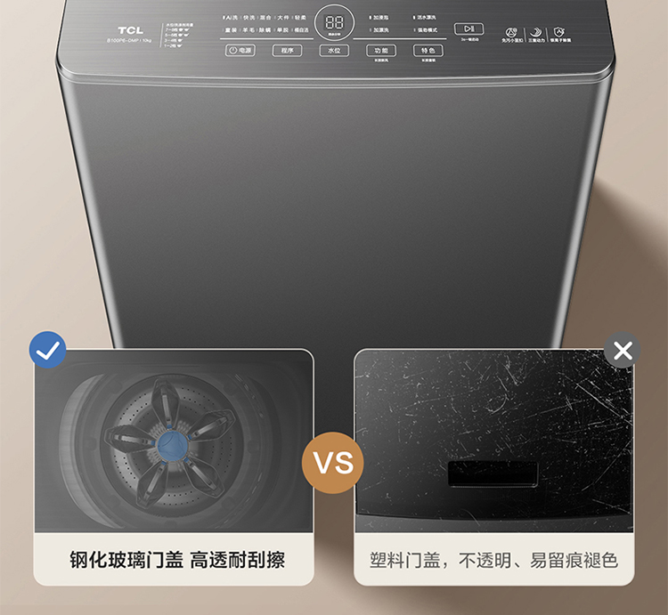 【TCL洗衣机】直驱波轮洗衣机家用静音不锈钢内筒免清洗洗衣机 10公斤小蓝扣直驱变频B100P6-DMP