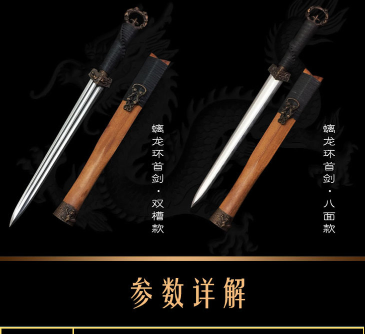 龙泉宝剑 蒋氏刀剑 花纹钢金丝古汉剑未开刃