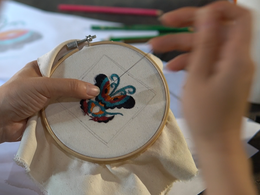 运用苗绣独特的技艺手法,针针密,线线齐