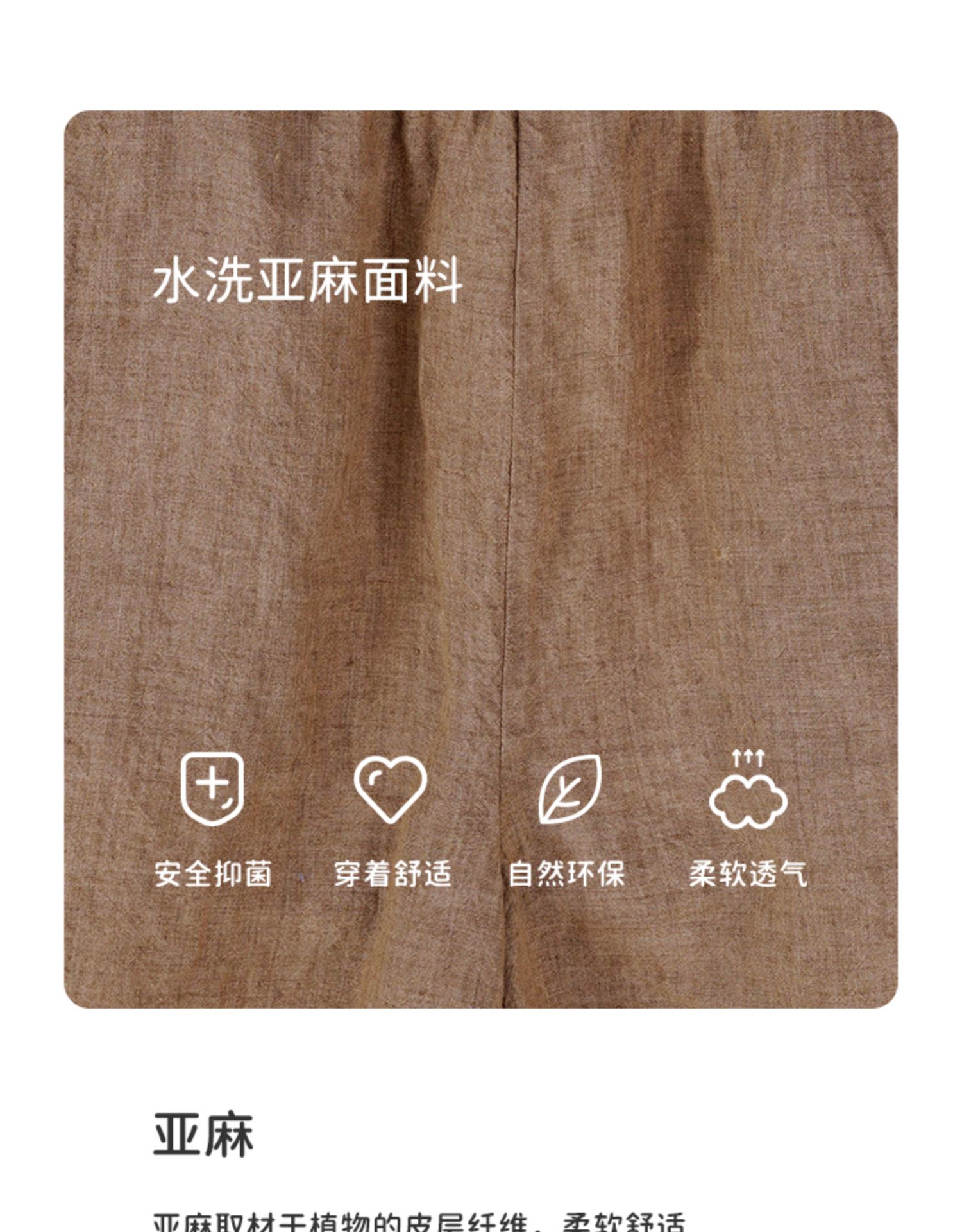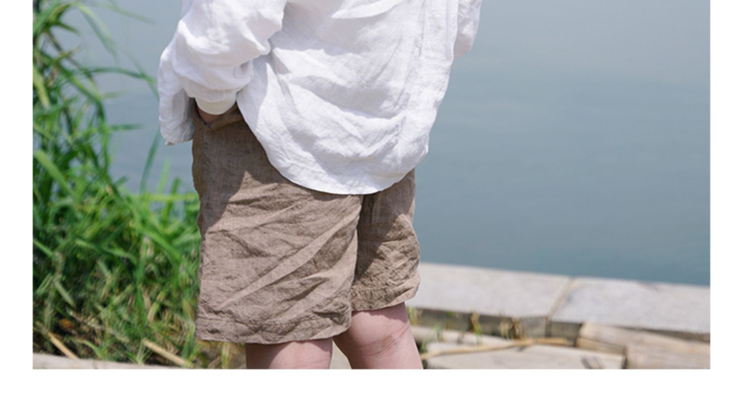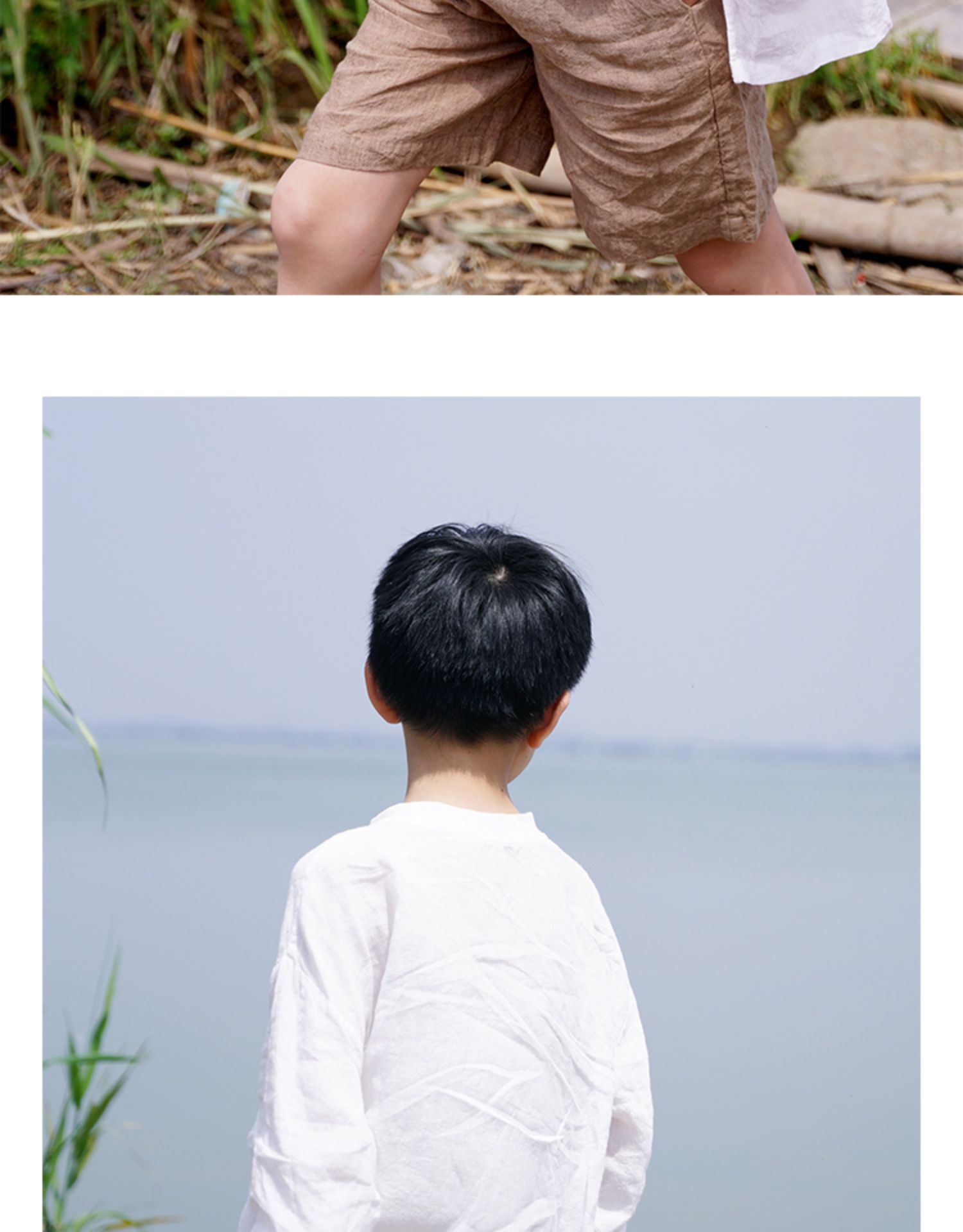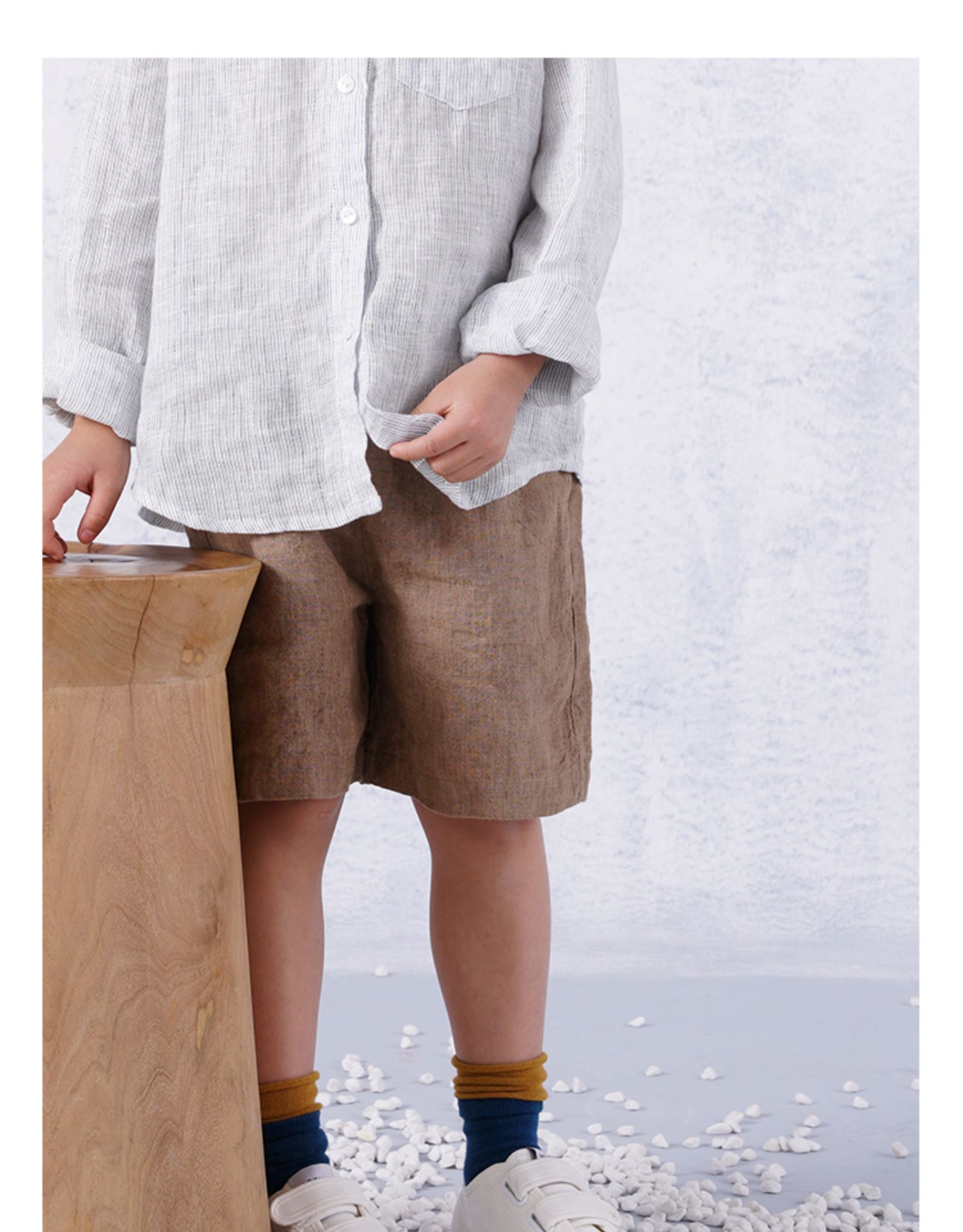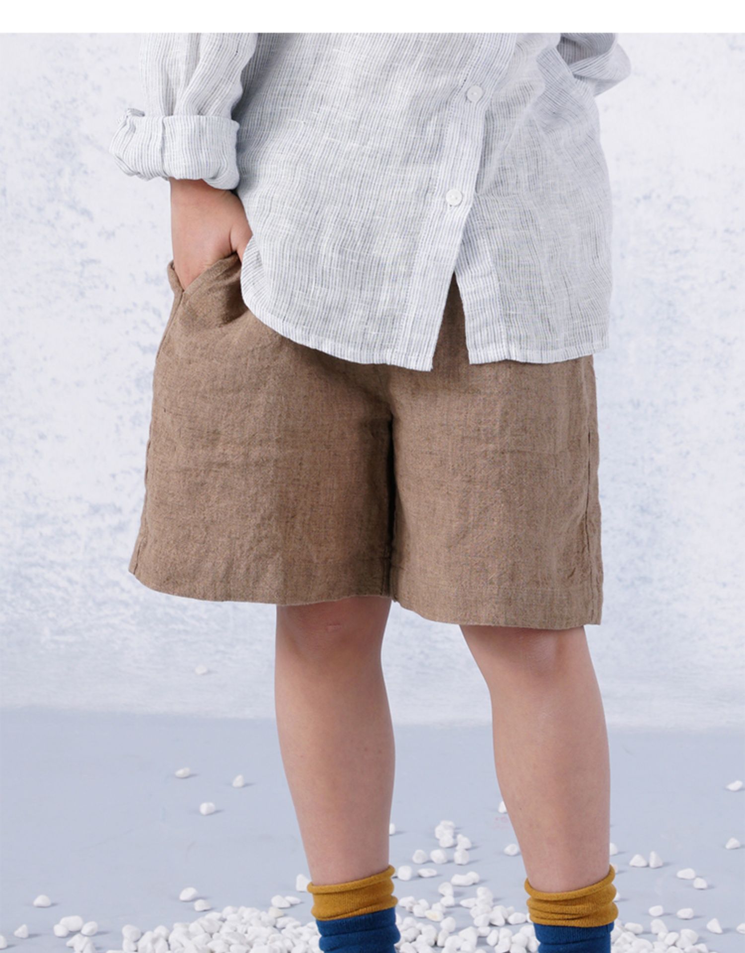 三茉童装/T23003/2022夏季新品咖色宽松舒适水洗亚麻男童百搭短裤