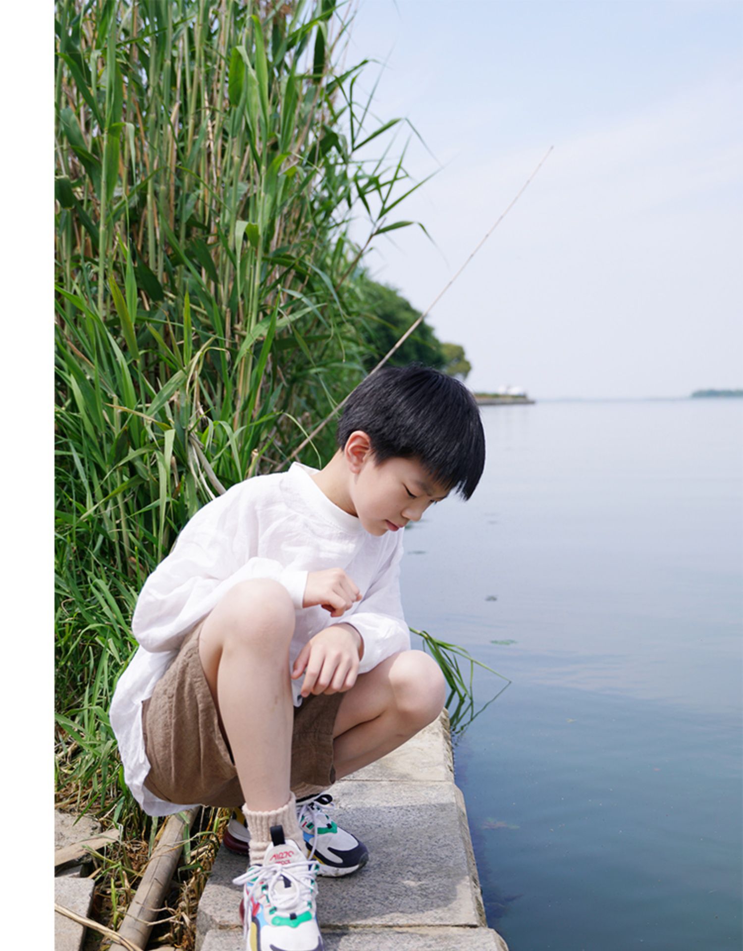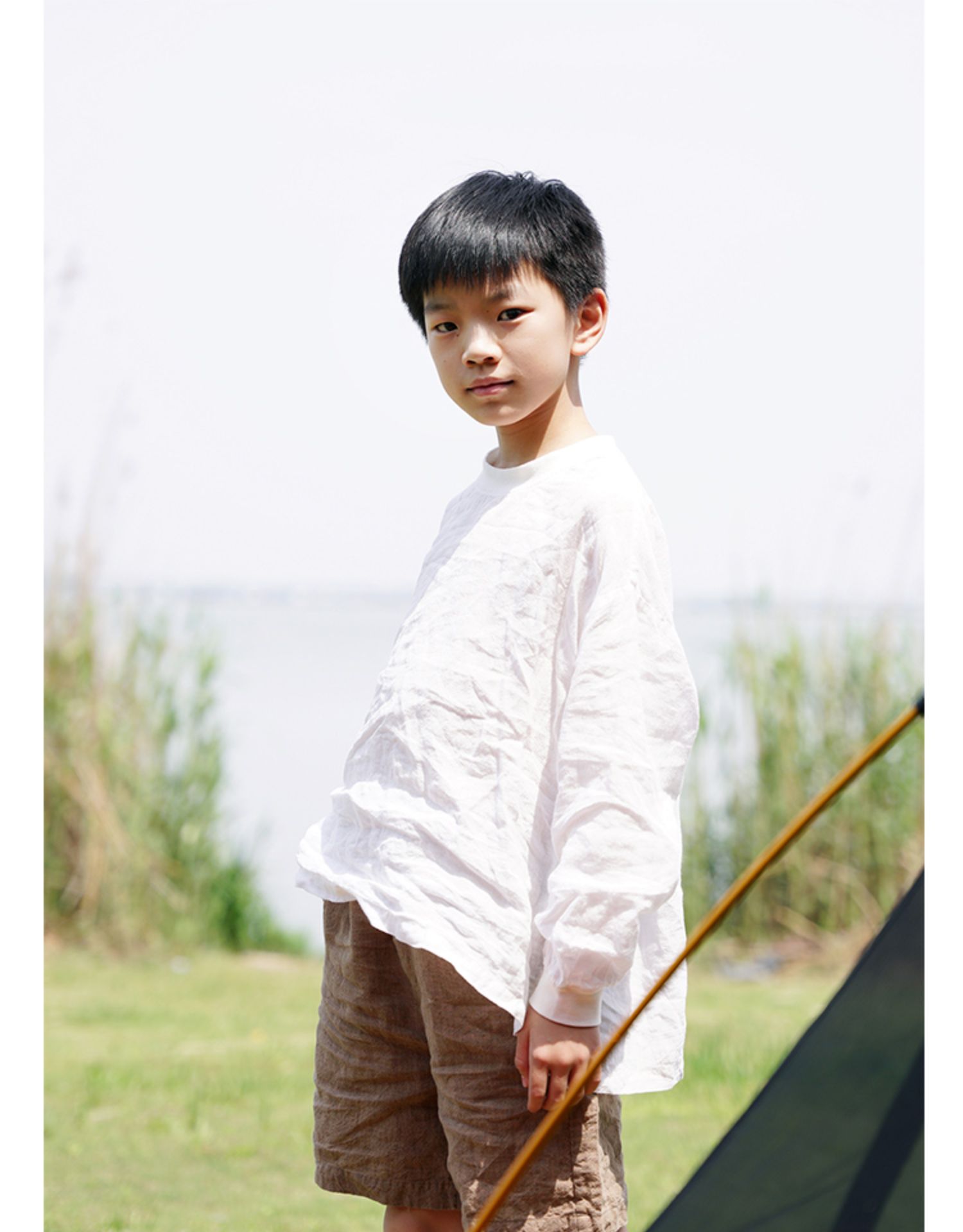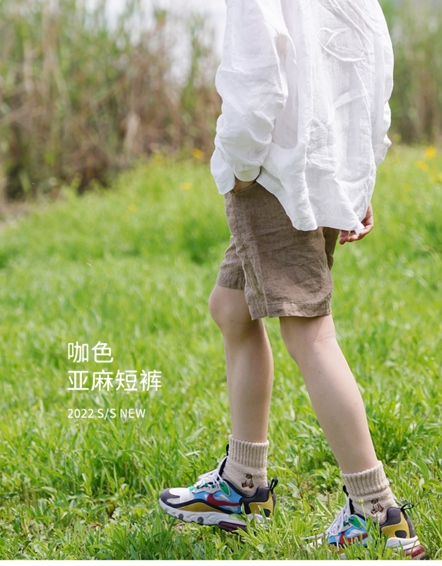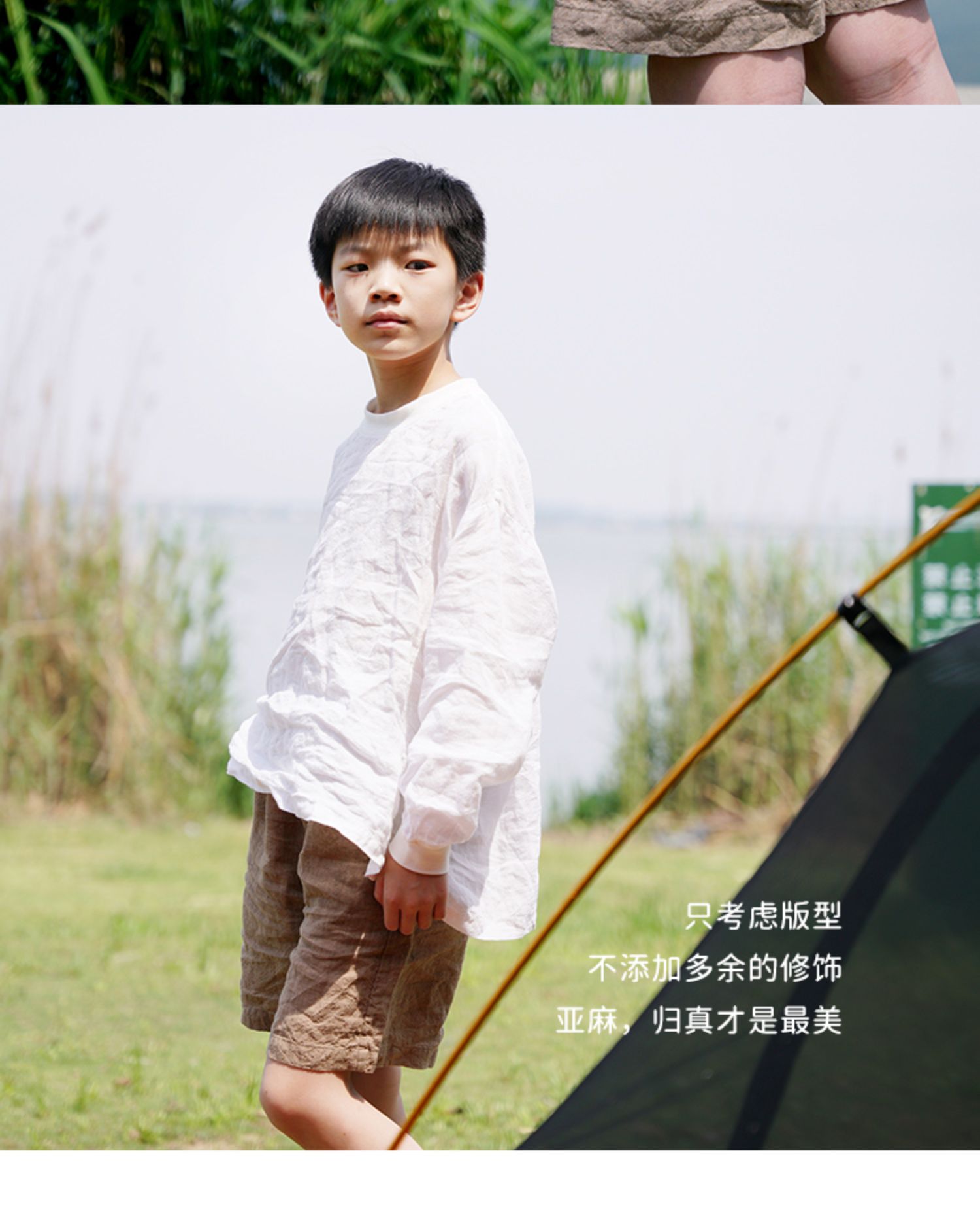 三茉童装/T23003/2022夏季新品咖色宽松舒适水洗亚麻男童百搭短裤
