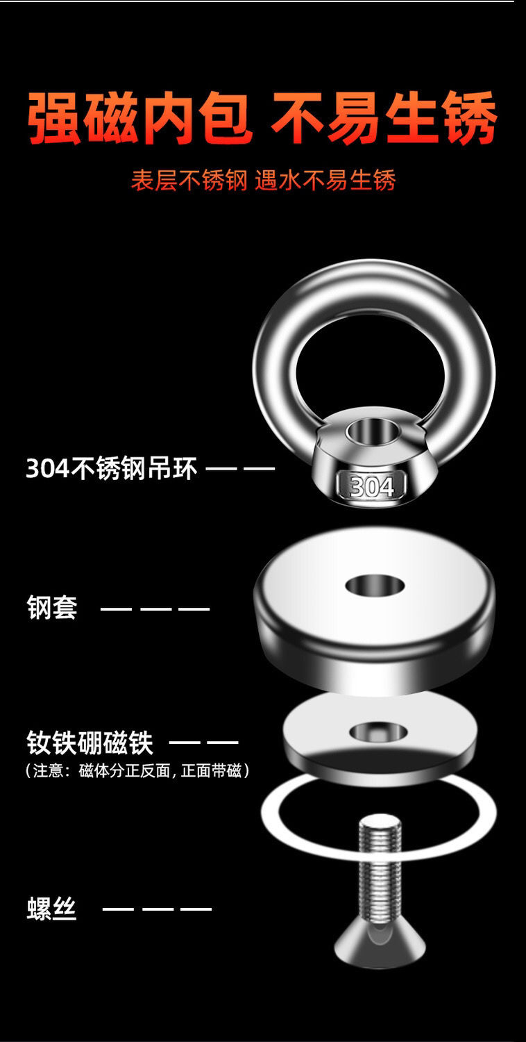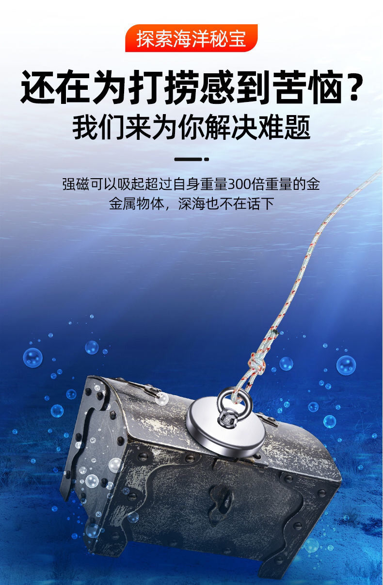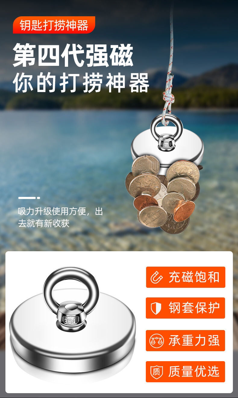 磁铁打捞神器钕磁吸铁石高强度圆形河道打捞强钕磁吸铁石