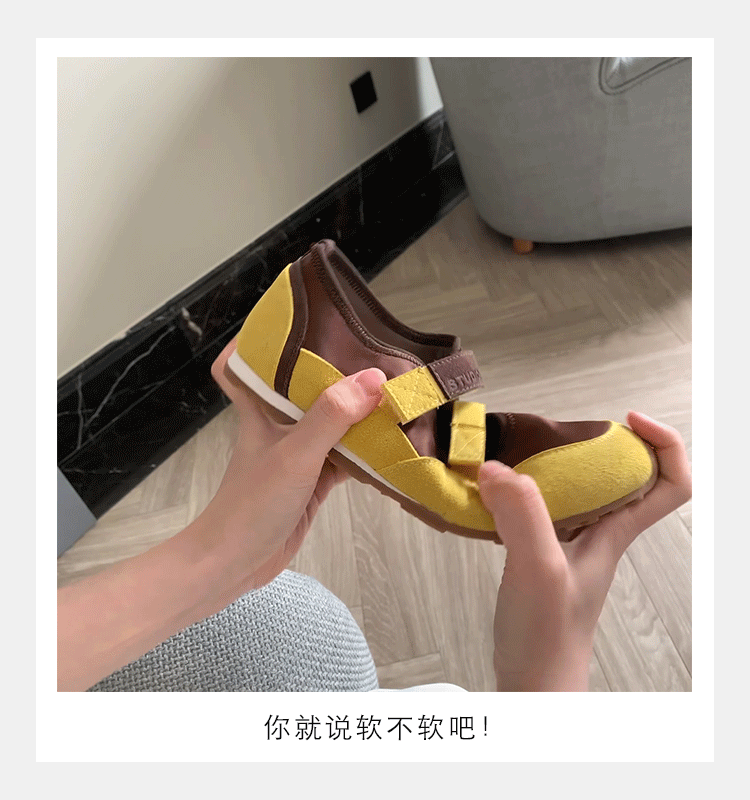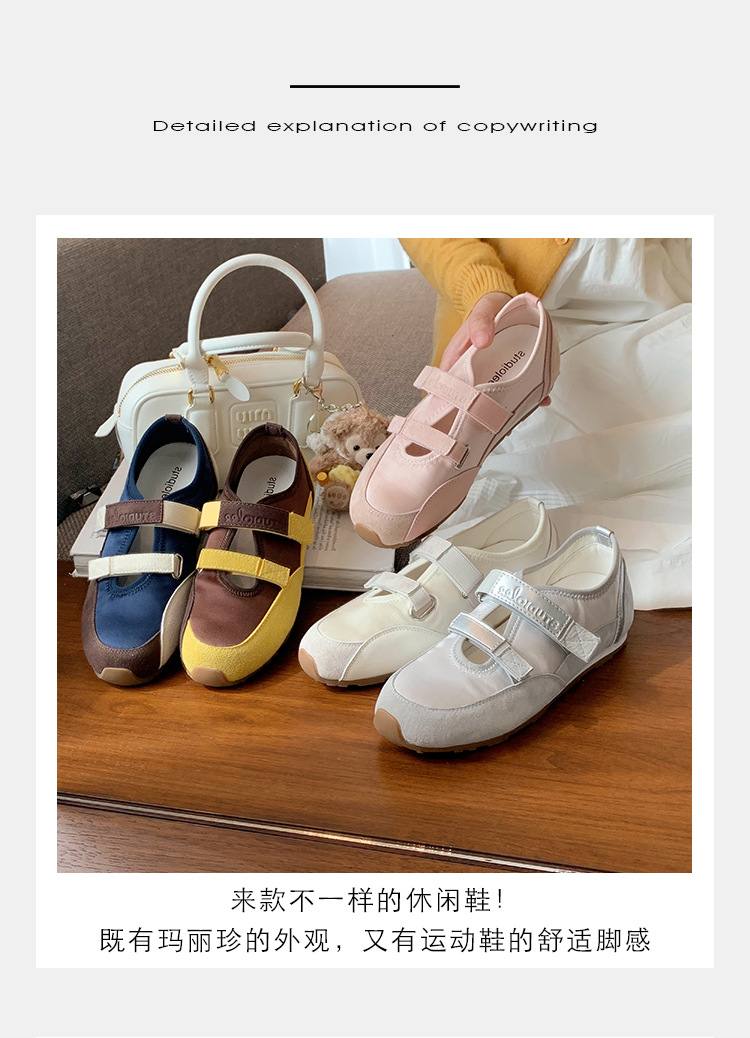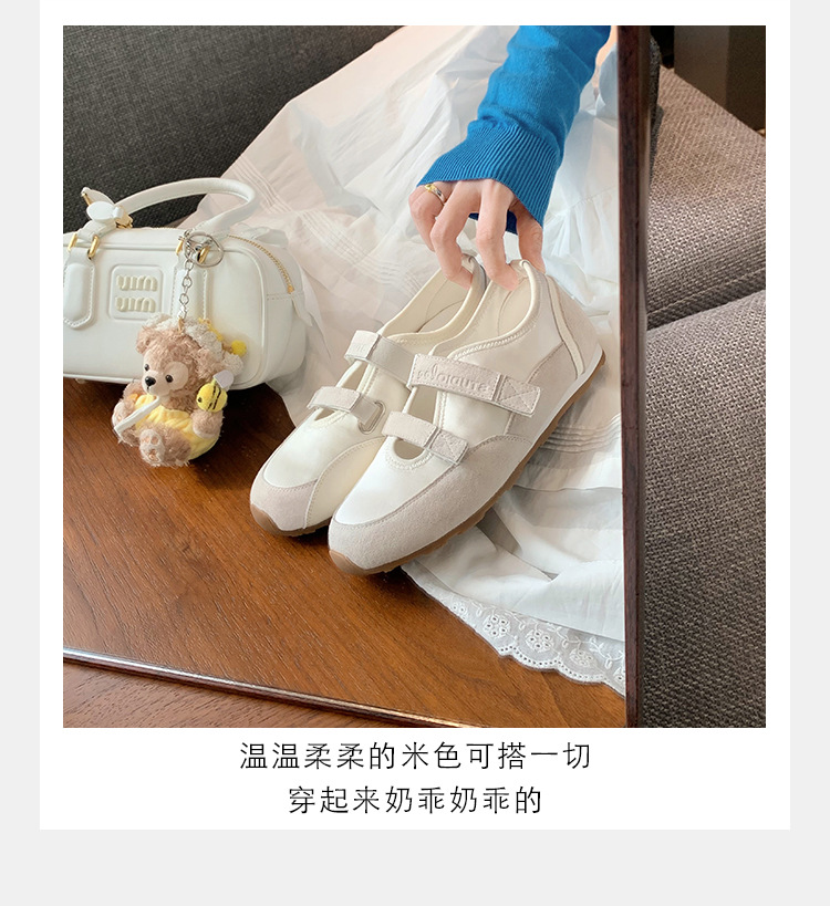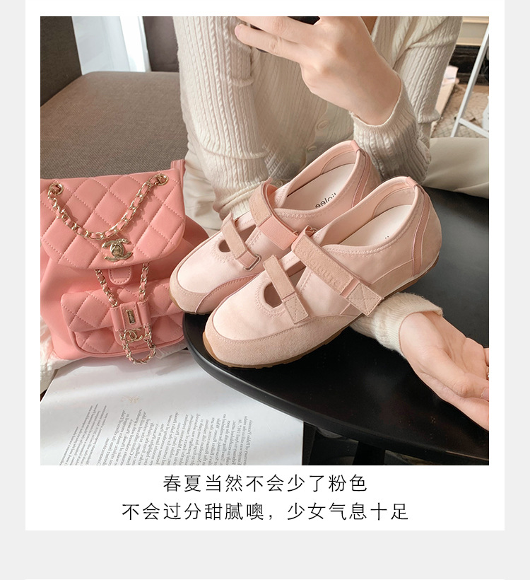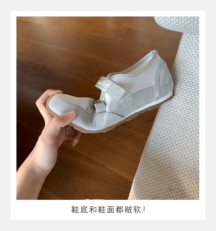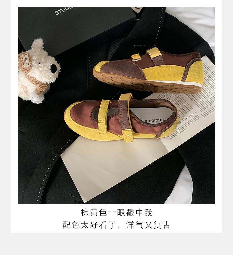 羊皮版韩版魔术贴玛丽珍鞋!2025新款女款拼色休闲芭蕾鞋小众内增高平底单鞋!