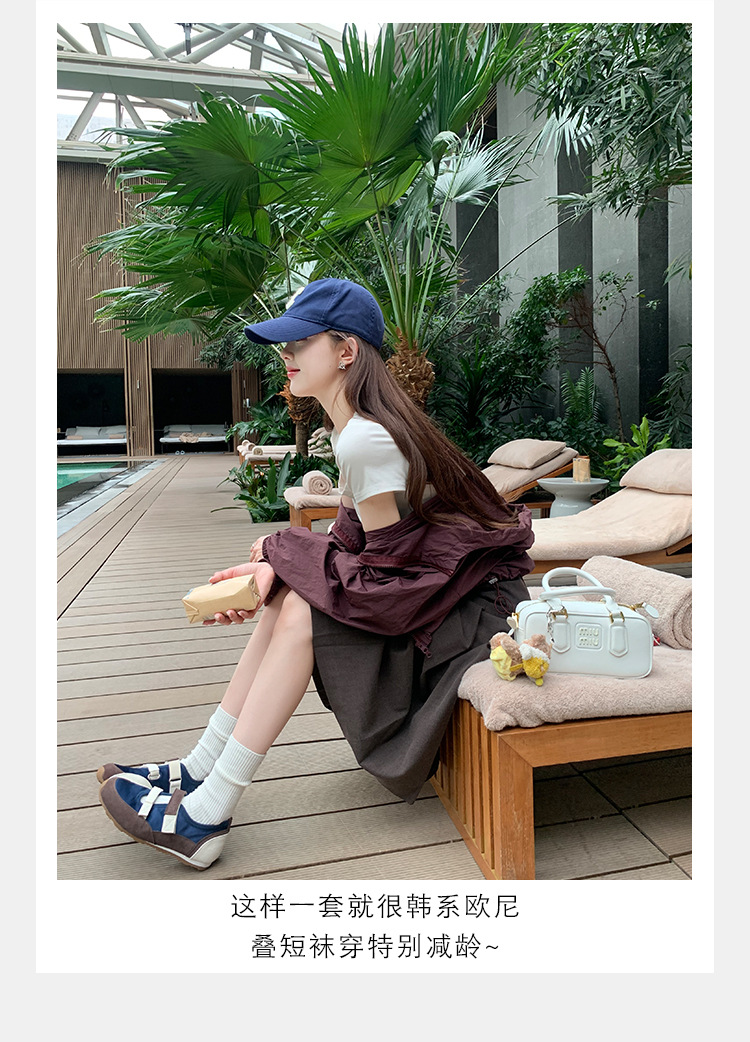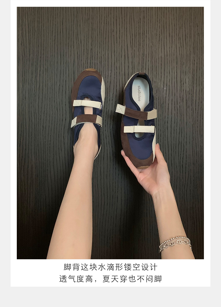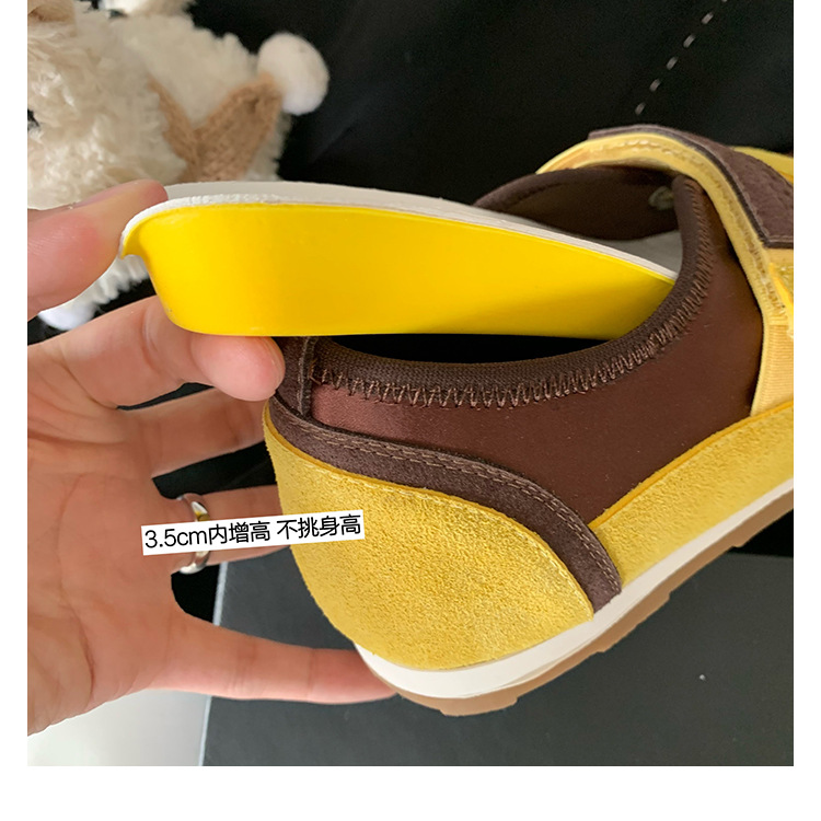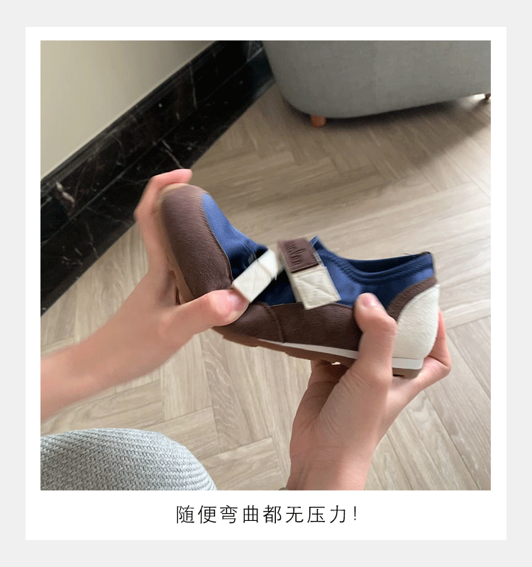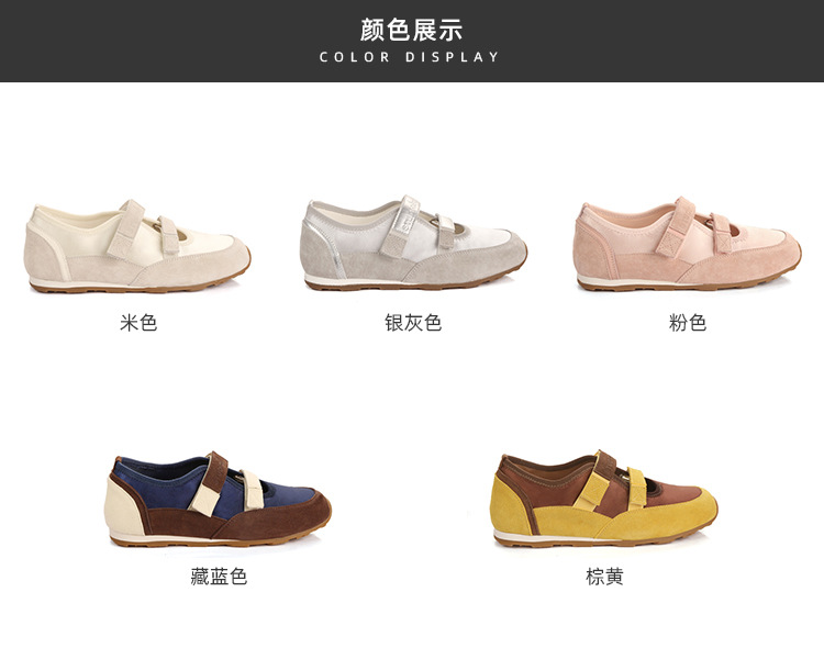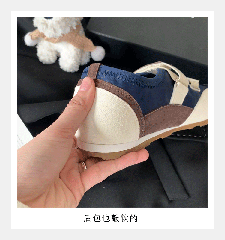 羊皮版韩版魔术贴玛丽珍鞋!2025新款女款拼色休闲芭蕾鞋小众内增高平底单鞋!
