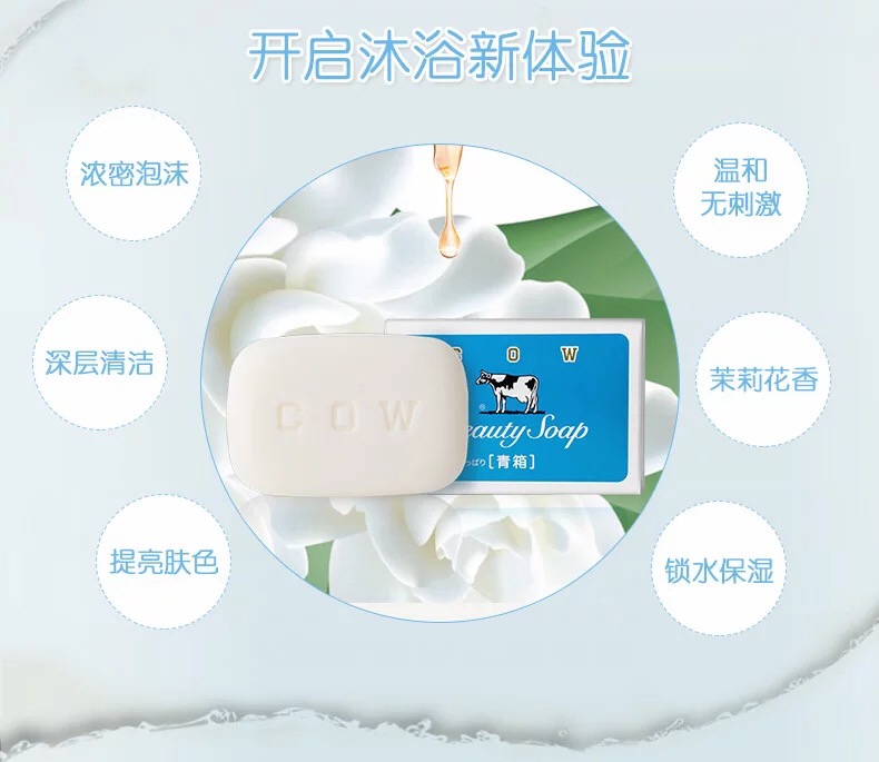 【日本传统制作工艺天然原料】日本cow牛牌牛乳石碱香皂 美肤香皂 肥皂 蓝色清爽型油皮茉莉清爽 红色滋润型干皮玫瑰奶香