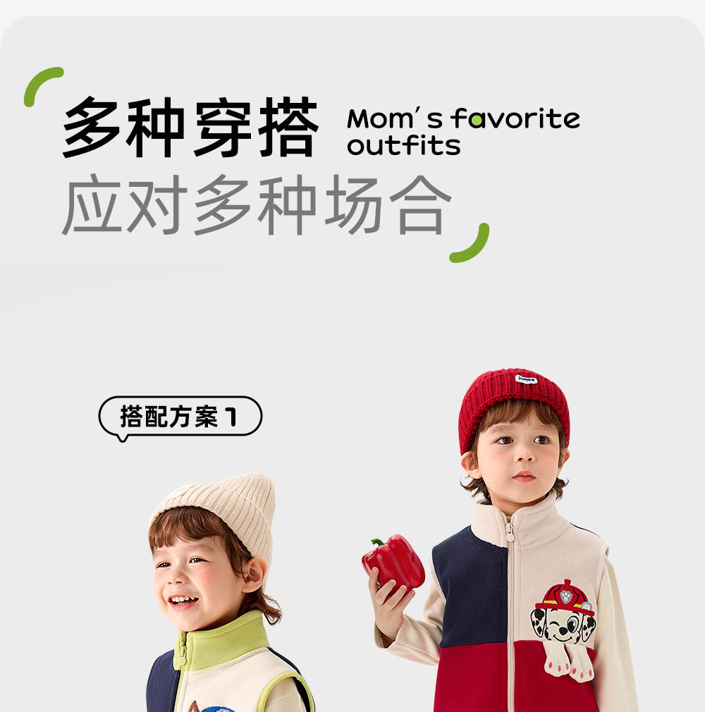 汪汪队儿童马甲宝宝卡通外穿背心双面奥粒绒坎肩中小童马夹 预售
