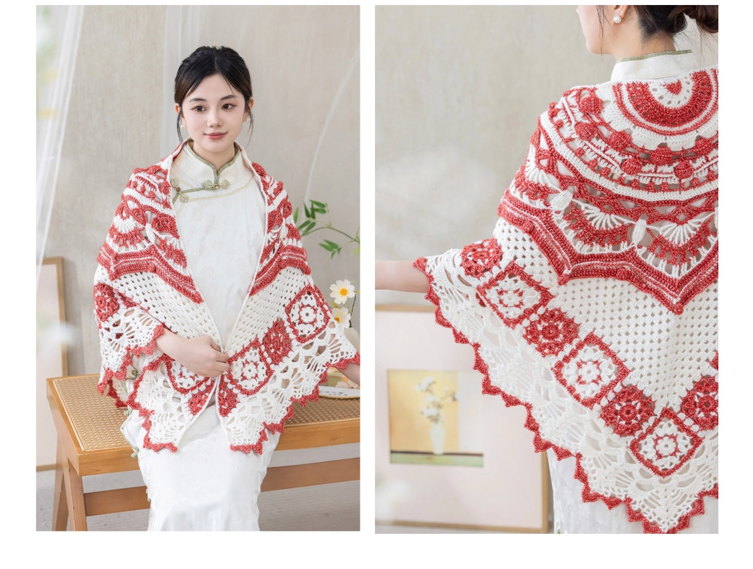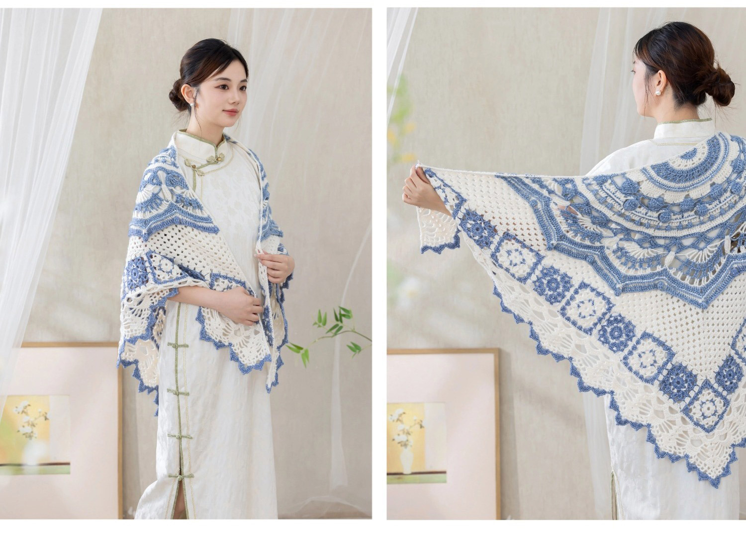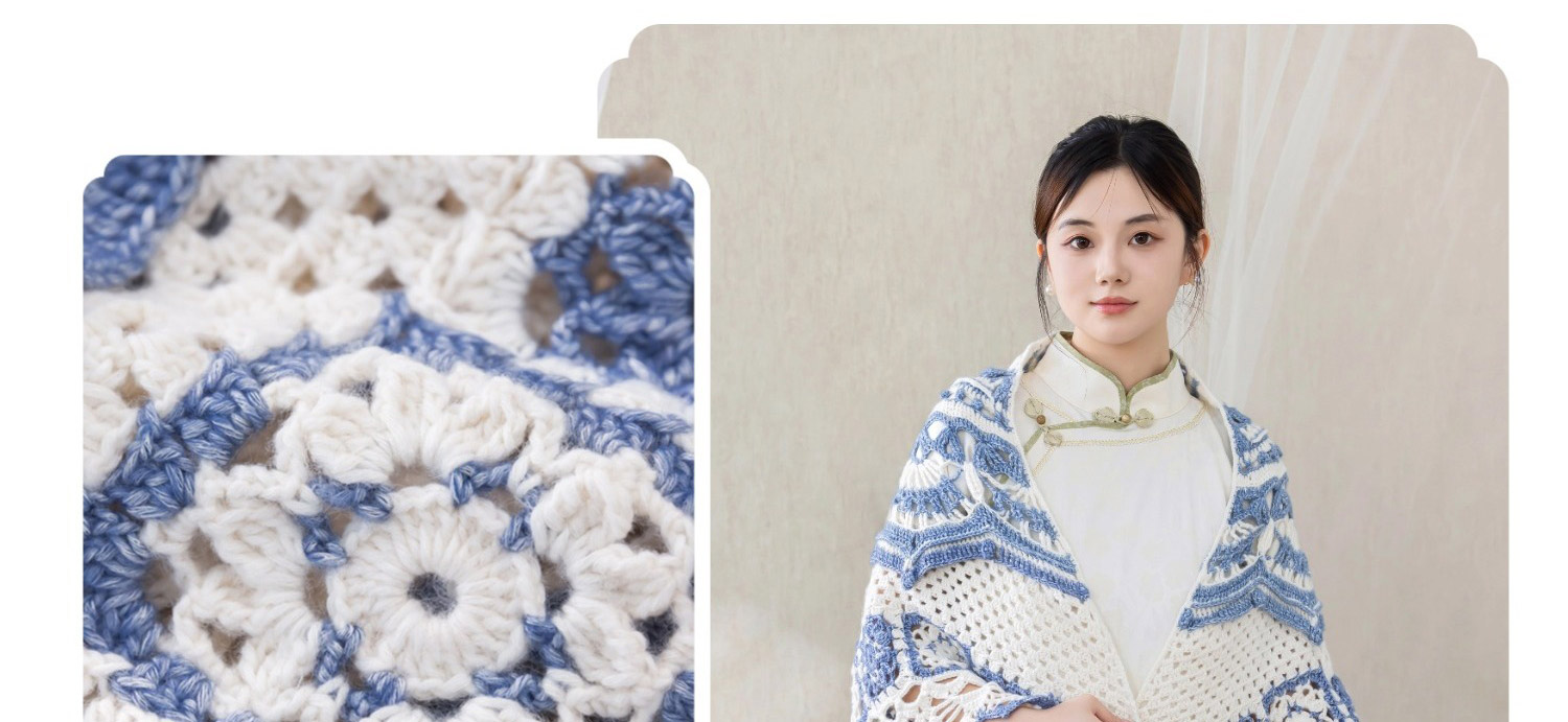 苏苏姐家青花玲珑披肩手工DIY编织钩针毛线团自制材料包