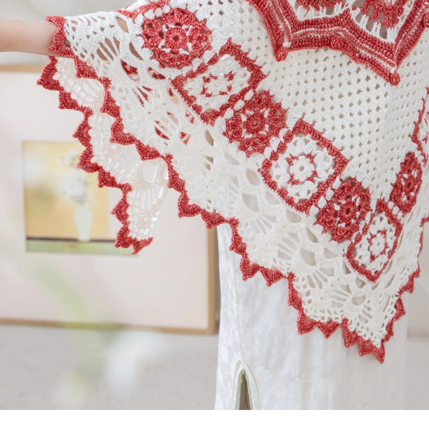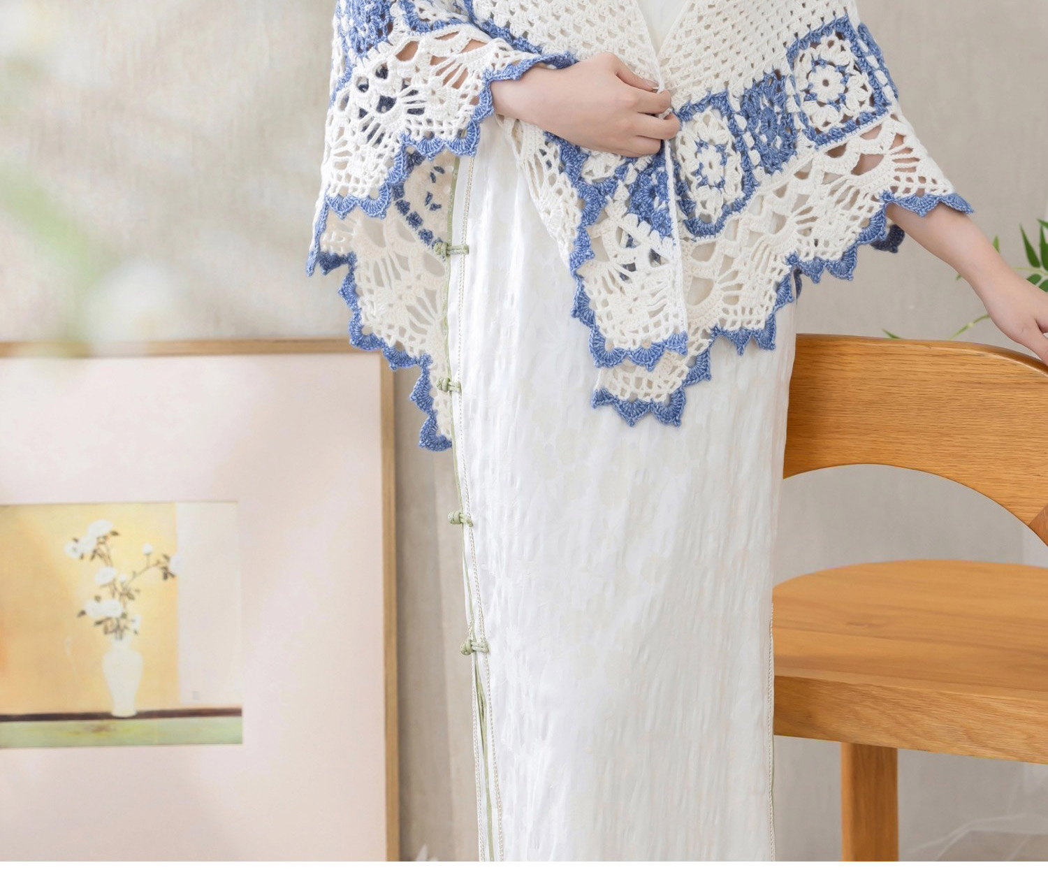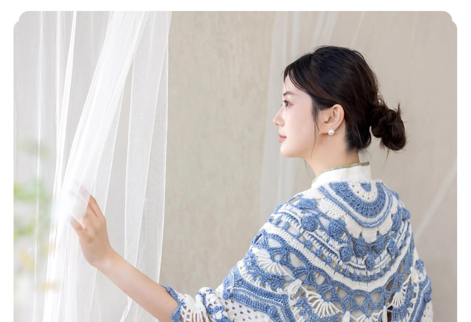 苏苏姐家青花玲珑披肩手工DIY编织钩针毛线团自制材料包