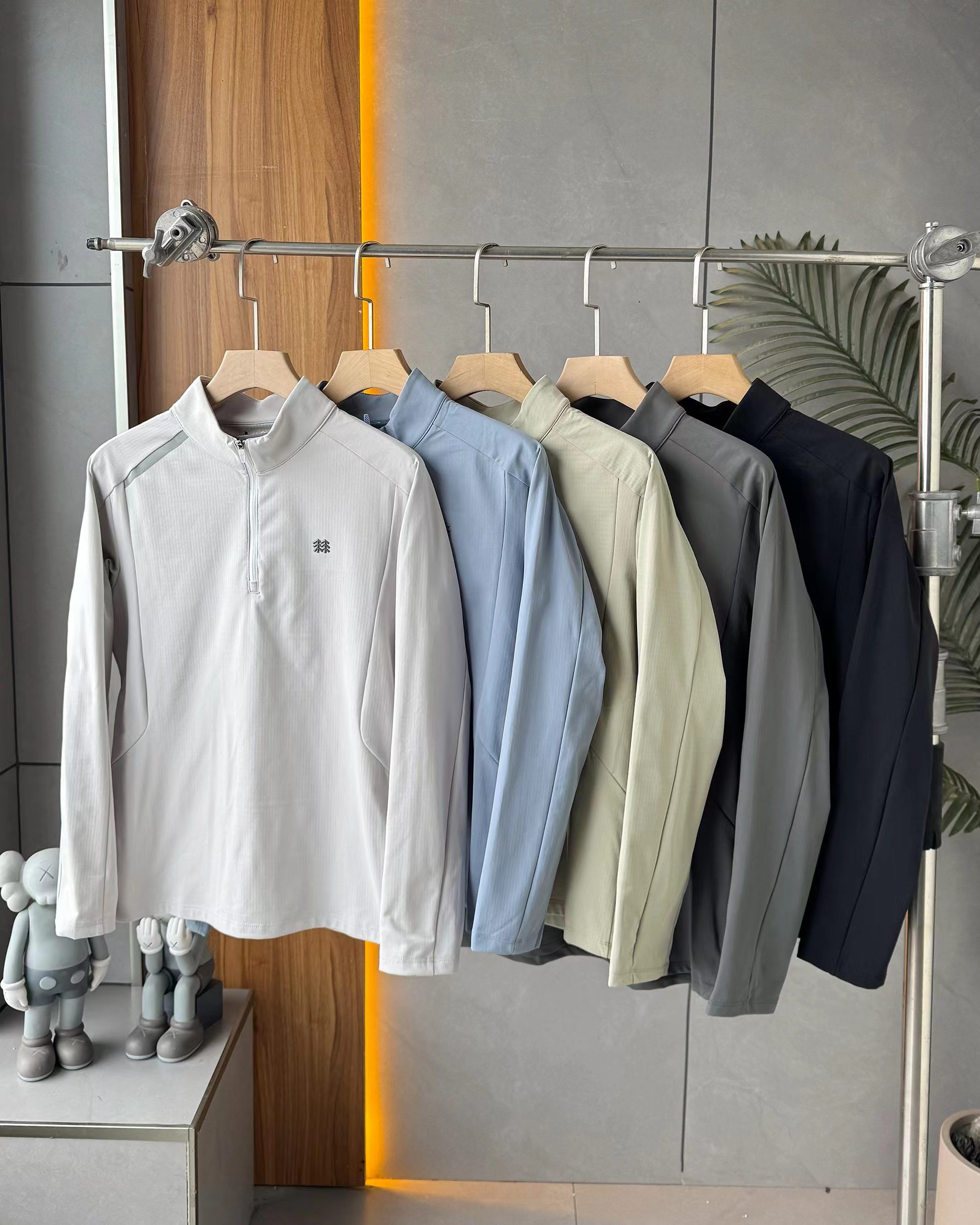 F032001春秋新款男款立体弹力运动内搭户外休闲半拉链薄绒打底衫长袖
