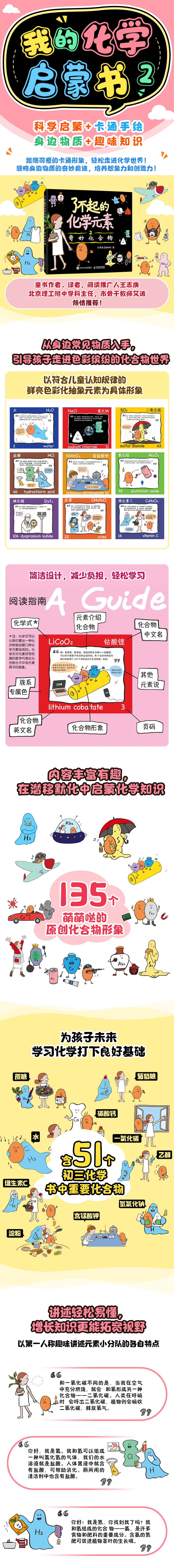 形象和手绘插图中,用轻松易懂的语言为孩子们讲述由元素组成的化合物的奇妙故事。