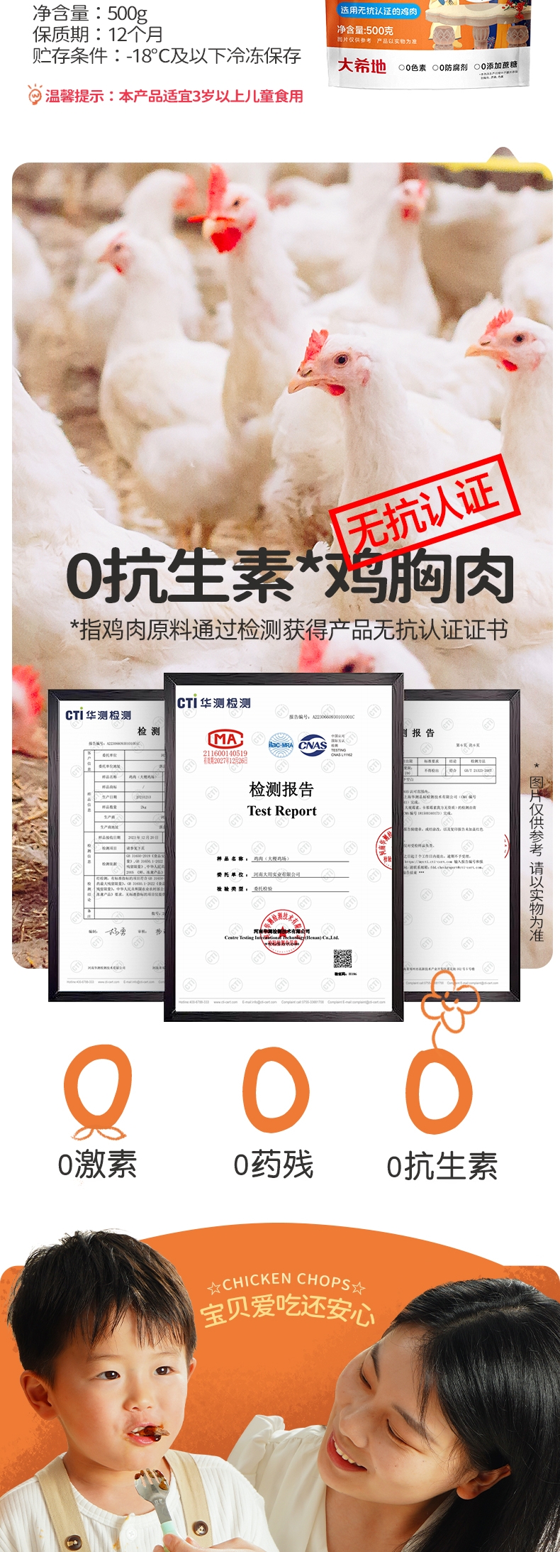 大希地母后恩点 橄榄油无抗鸡排500g*2