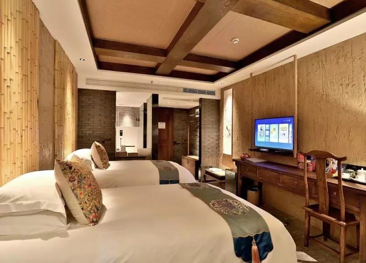提供贴心的管家式服务,素舍采用了原木、竹等装饰,古朴素雅,增添的绿植让房间接近自然韵味。