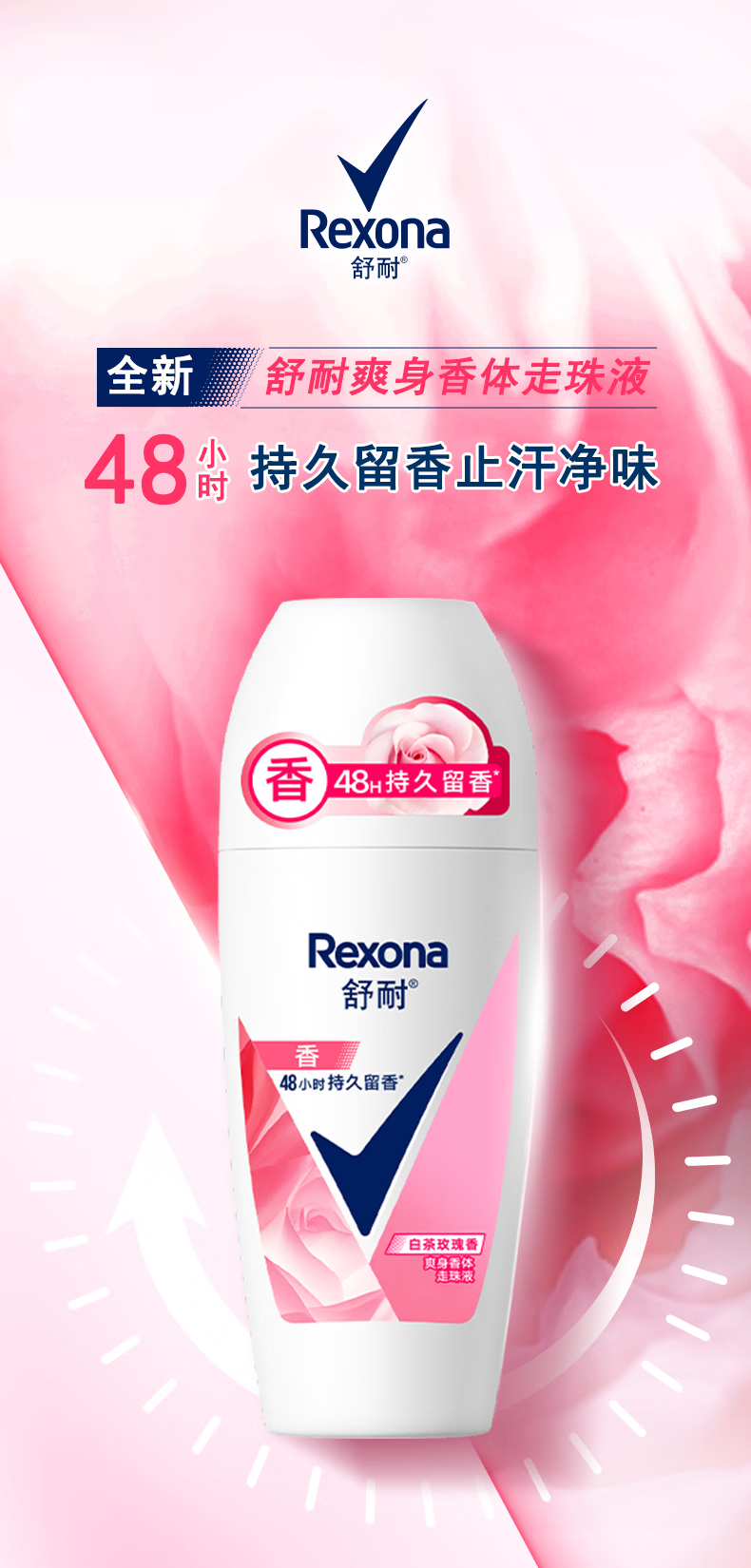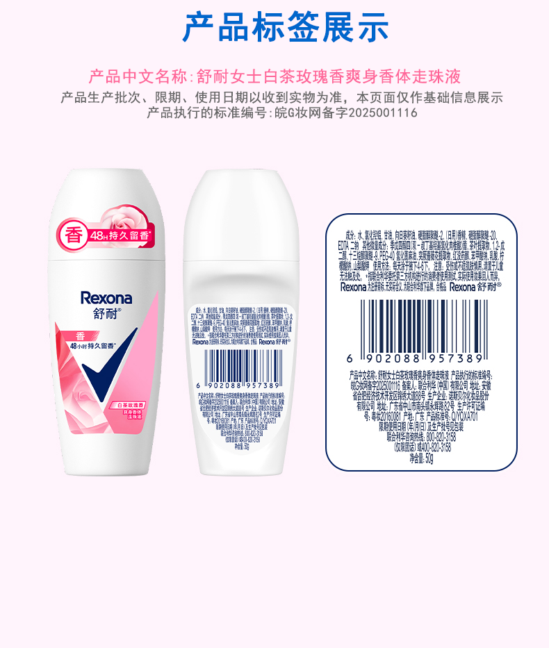 舒耐女士爽身香体走珠液白茶玫瑰香50g【30174446】