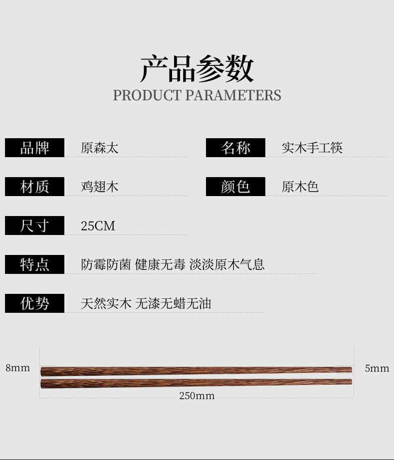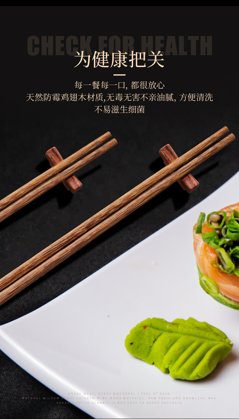 【无漆无蜡 不易发霉 不易滋生细菌】原森太鸡翅木筷子10双