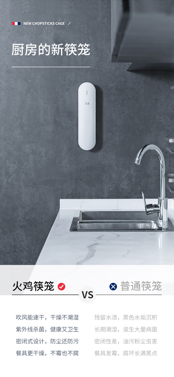 火鸡无线智能筷笼紫外线杀菌厨房筷子篓壁挂式收纳盒沥水筒筷子机