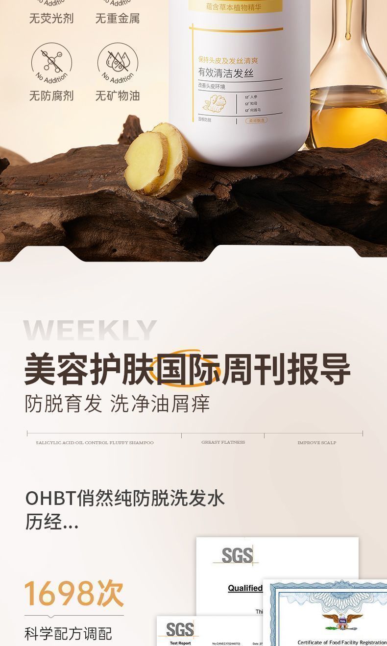 OHBT俏然纯防脱洗发水500g
