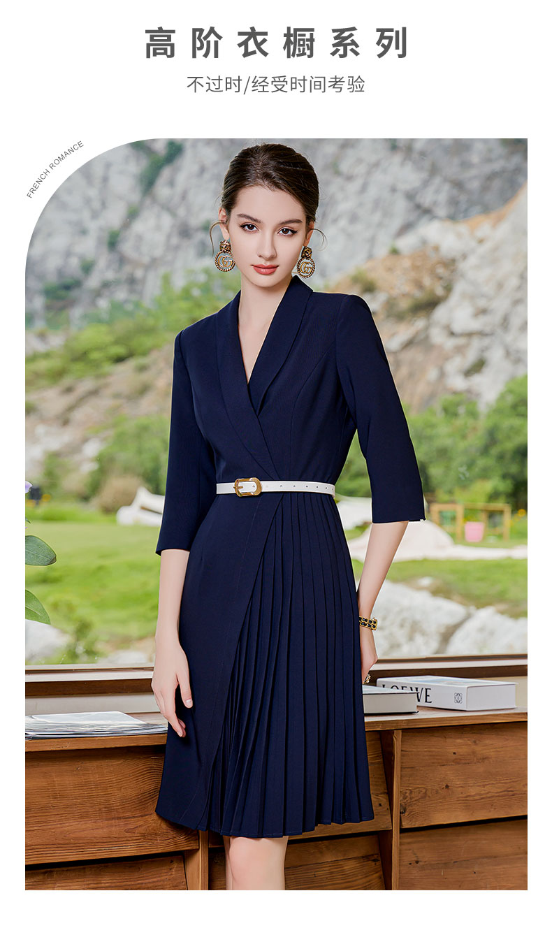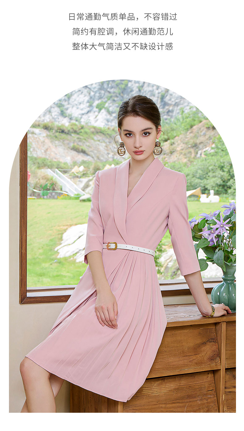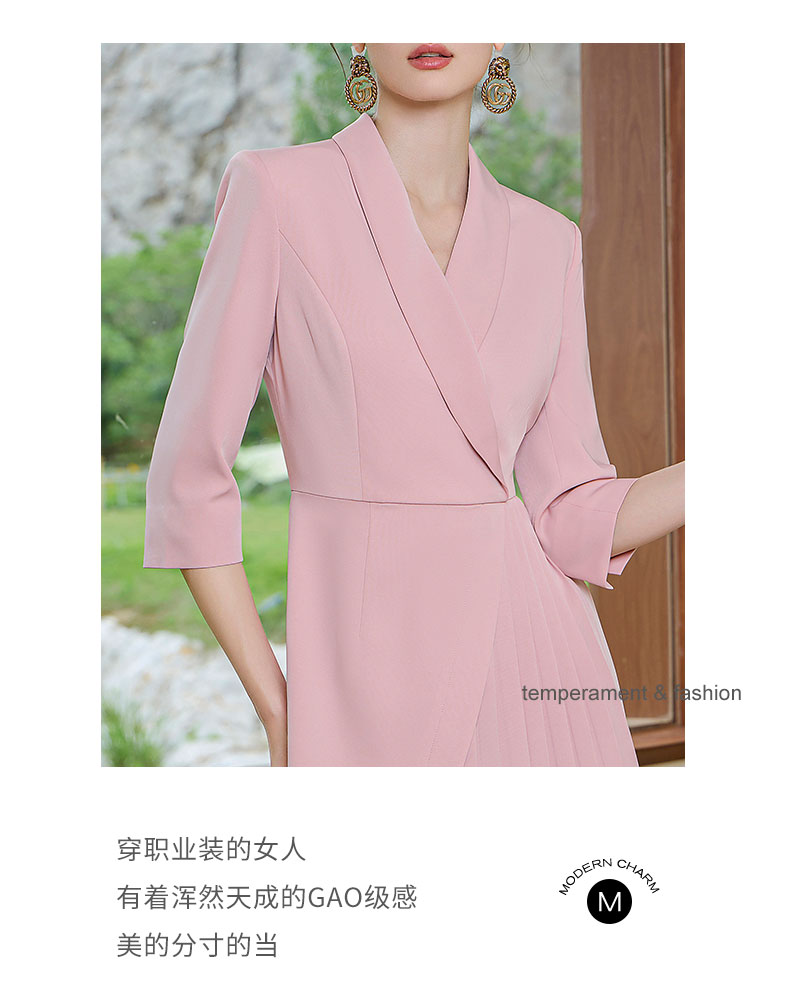 AD高端气质正装连衣裙OL通勤粉色西装裙百褶女夏季主持人演讲服装