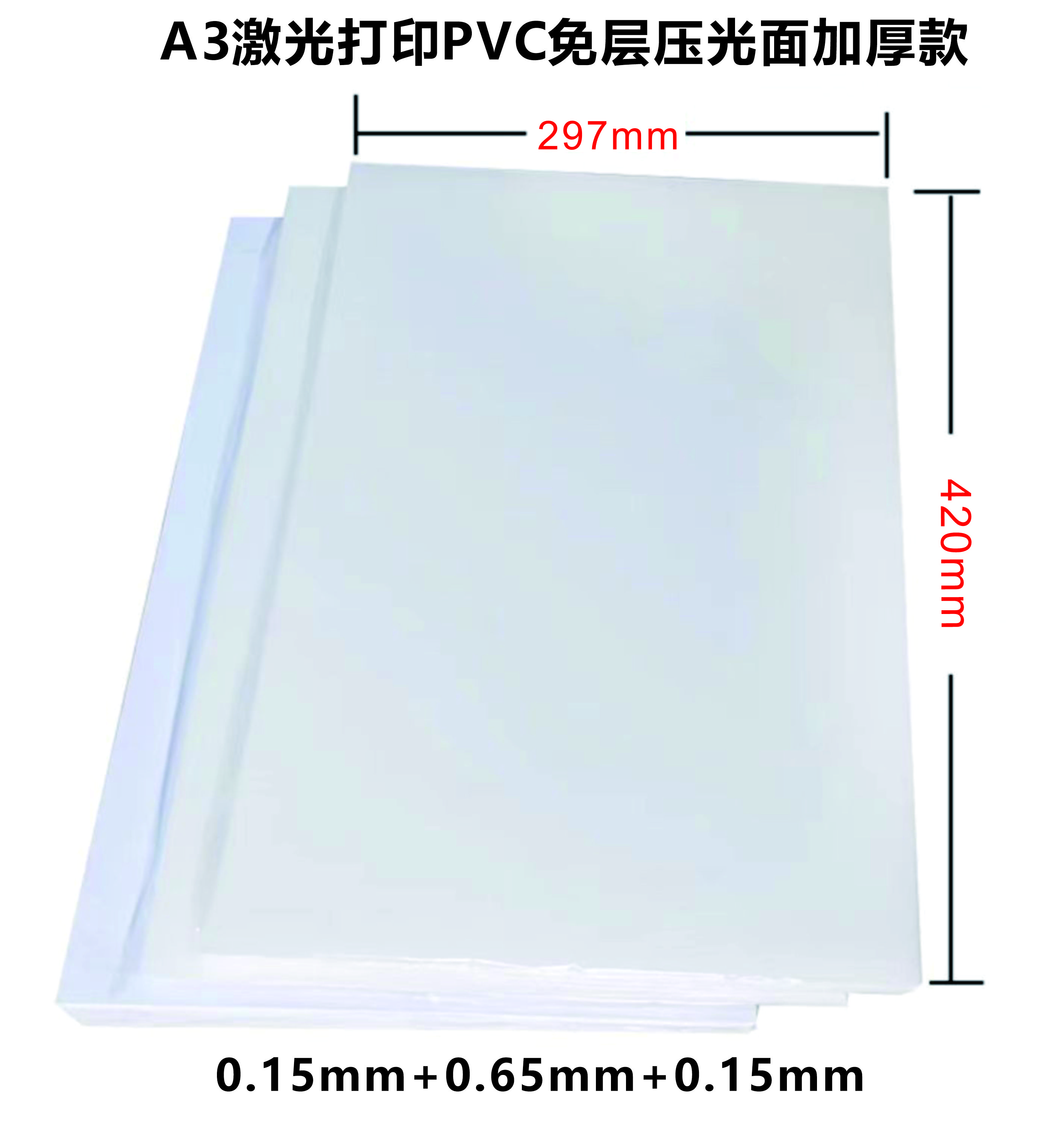 激光打印A3 (0.15+0.65+0.15) 加厚免层压双面PVC/会员证件卡片 300*420mm 散装