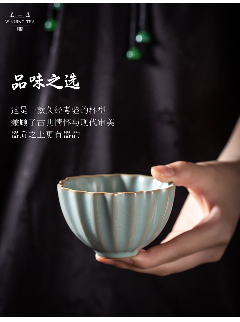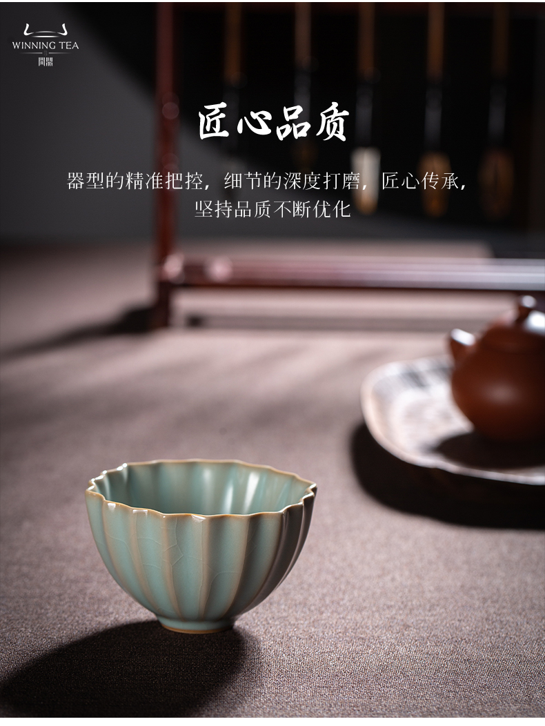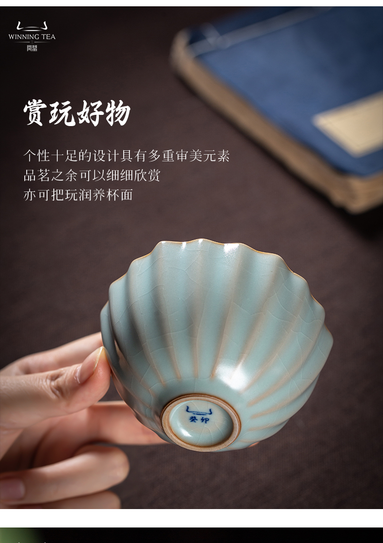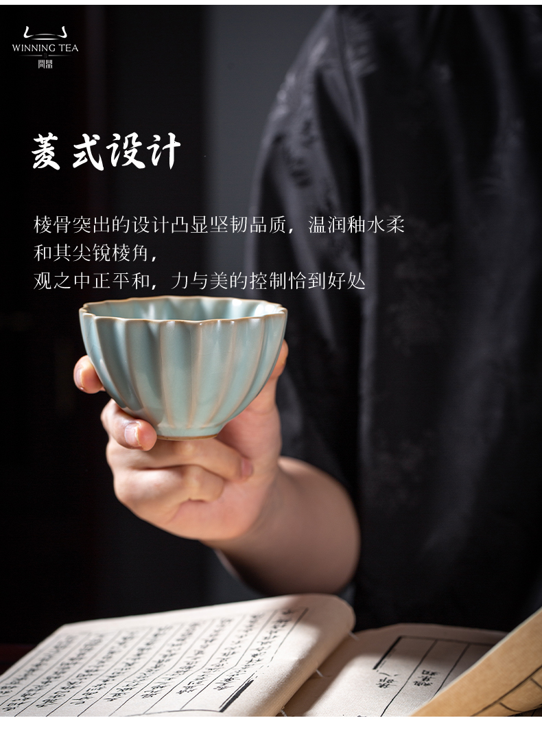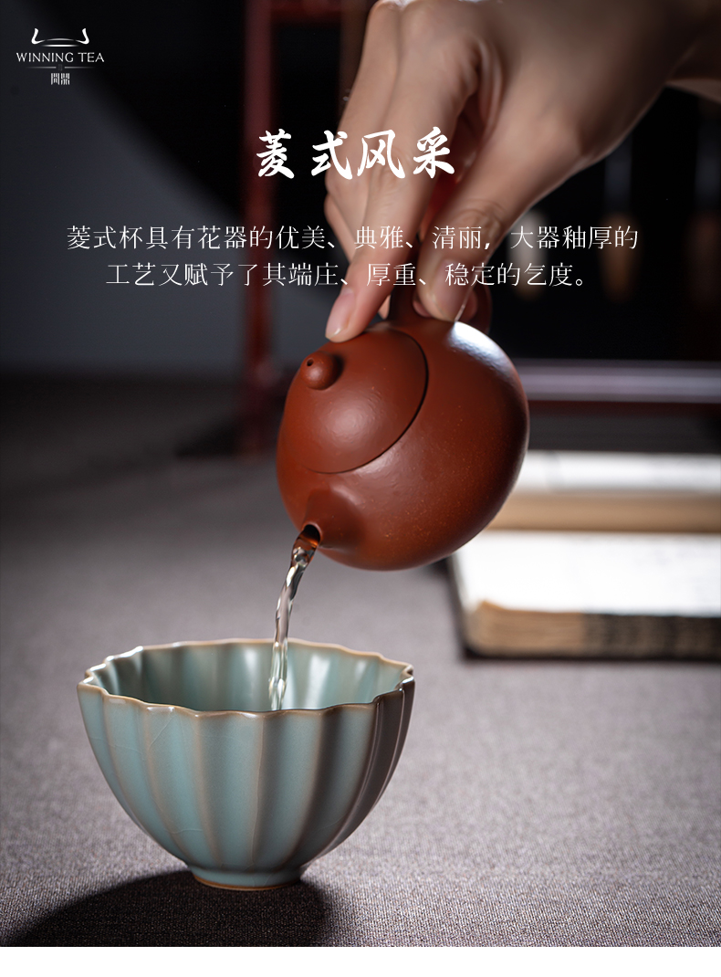 问鼎汝瓷鼎峰系列天青癸卯菱式盅